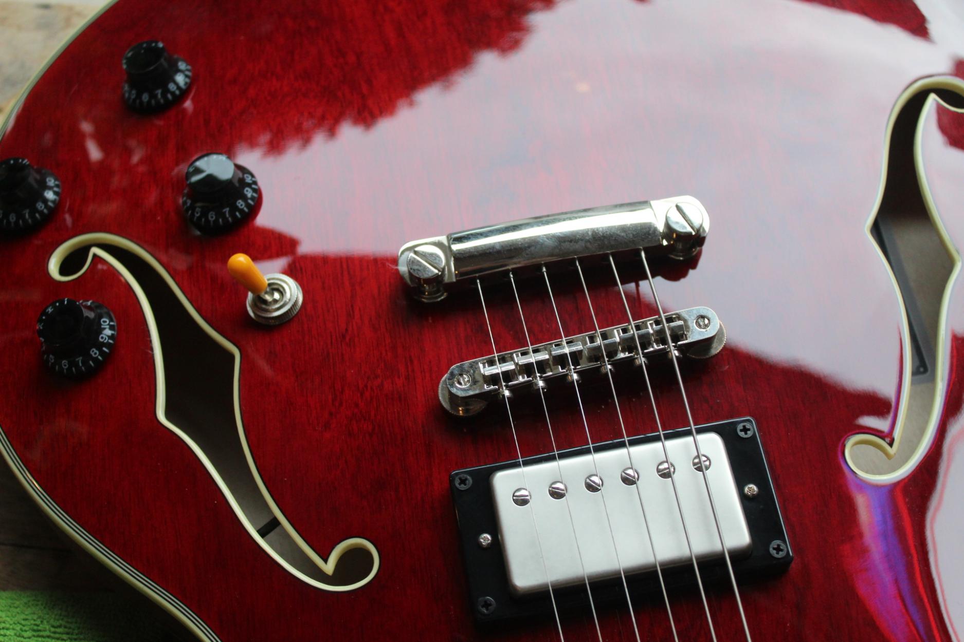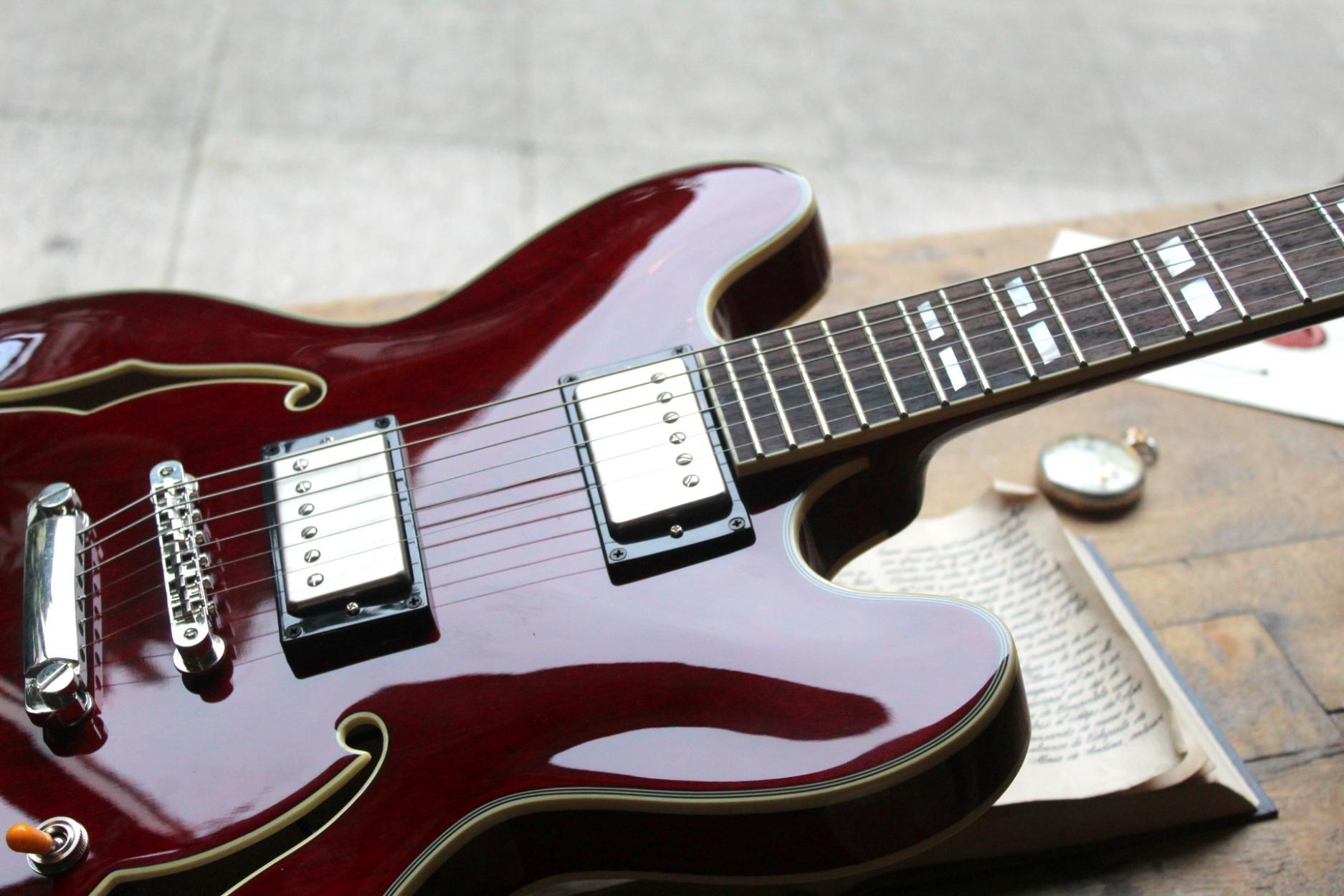 Stanford’s Thinline is a classic and a tribute to one of the most famous electric guitar models of all the time. The interior of this guitar model is defined by a sustain block, which provides the characteristic sound of the Crossroad Thinline 35. The combination of a Tune-o-matic Bridge, an Alu Stoptailpiece and two Stanford Classic 59 humbuckers with nickel-plated caps, delivers the full range of sounds expected from this Double Cutaway Thinline. A fine and wafer-thin applied nitrocellulose finish makes the guitar swing very well, ensures a fast response and perfect sound. Larry Carlton, B.B. King, Eric Clapton, Alvin Lee, to name just a few famous names, loved and play this icon even today in their concerts. The Stanford Crossroad Thinline 35 will be delivered with a case. SPECIFICATIONS Bodydouble cutaway thinline Topmaple Ribs/Bottommaple Neckmaple Fretboardebony FinishNC Antique Violin Scale Width43 mm CutawayCutaway Extrasincl. case