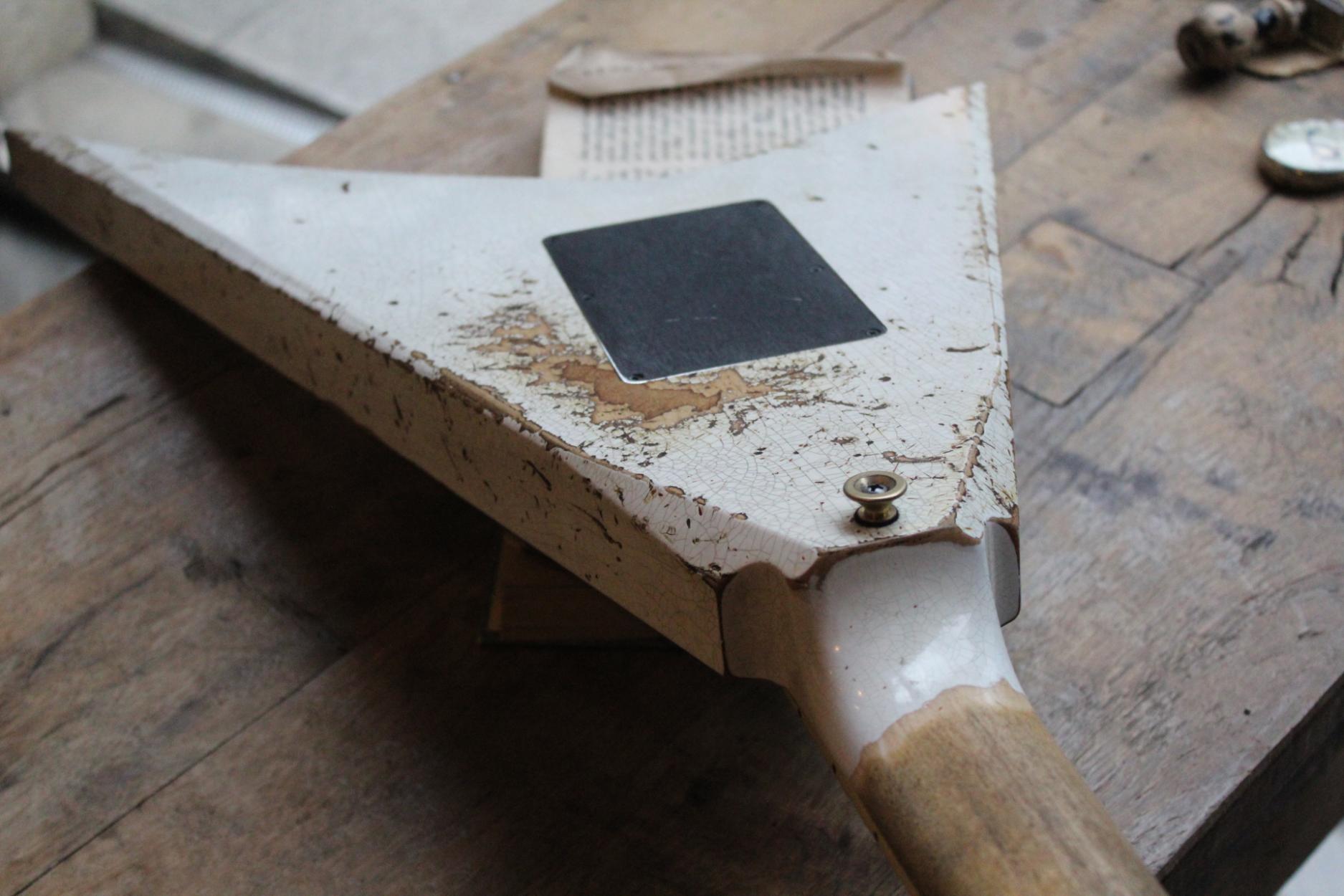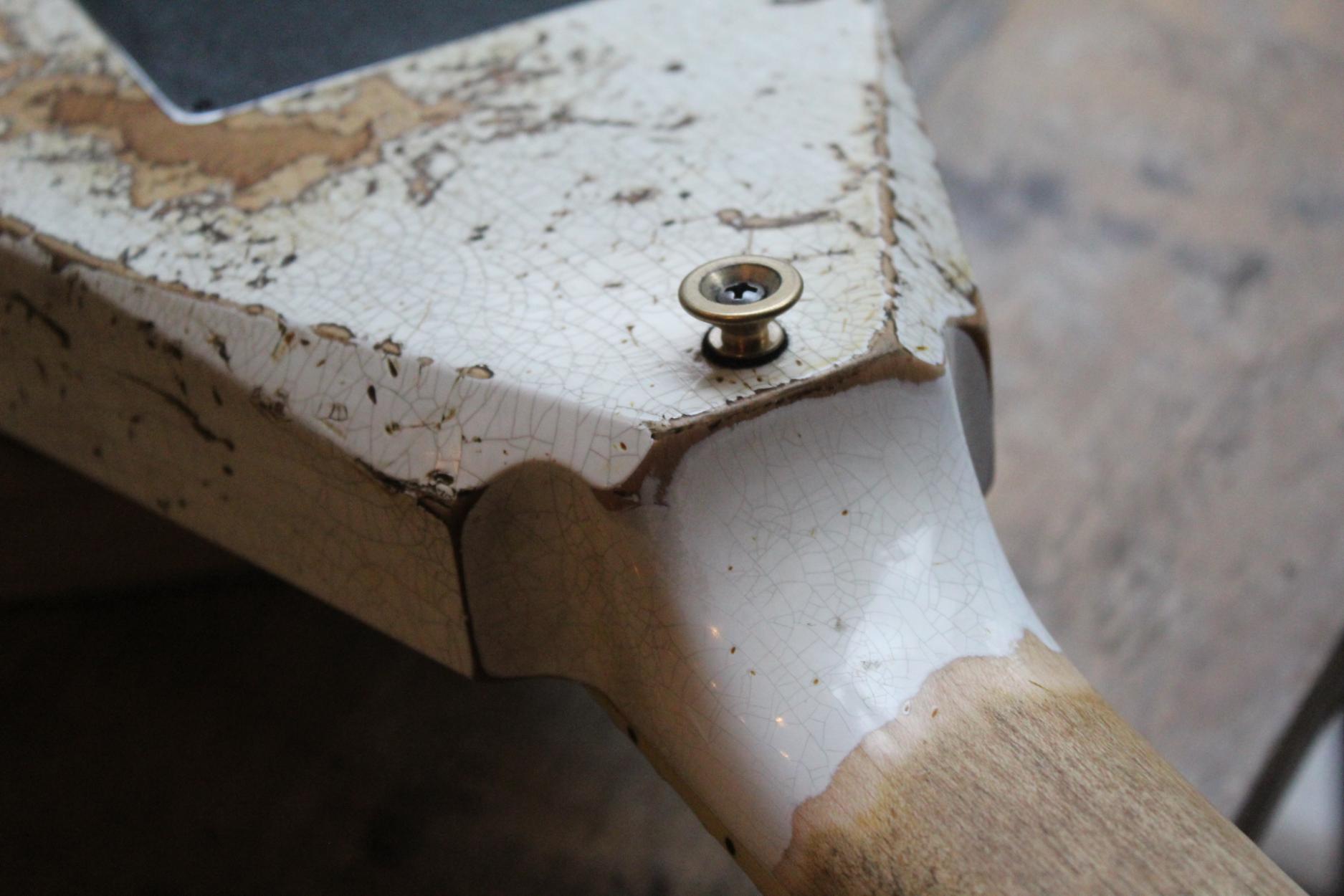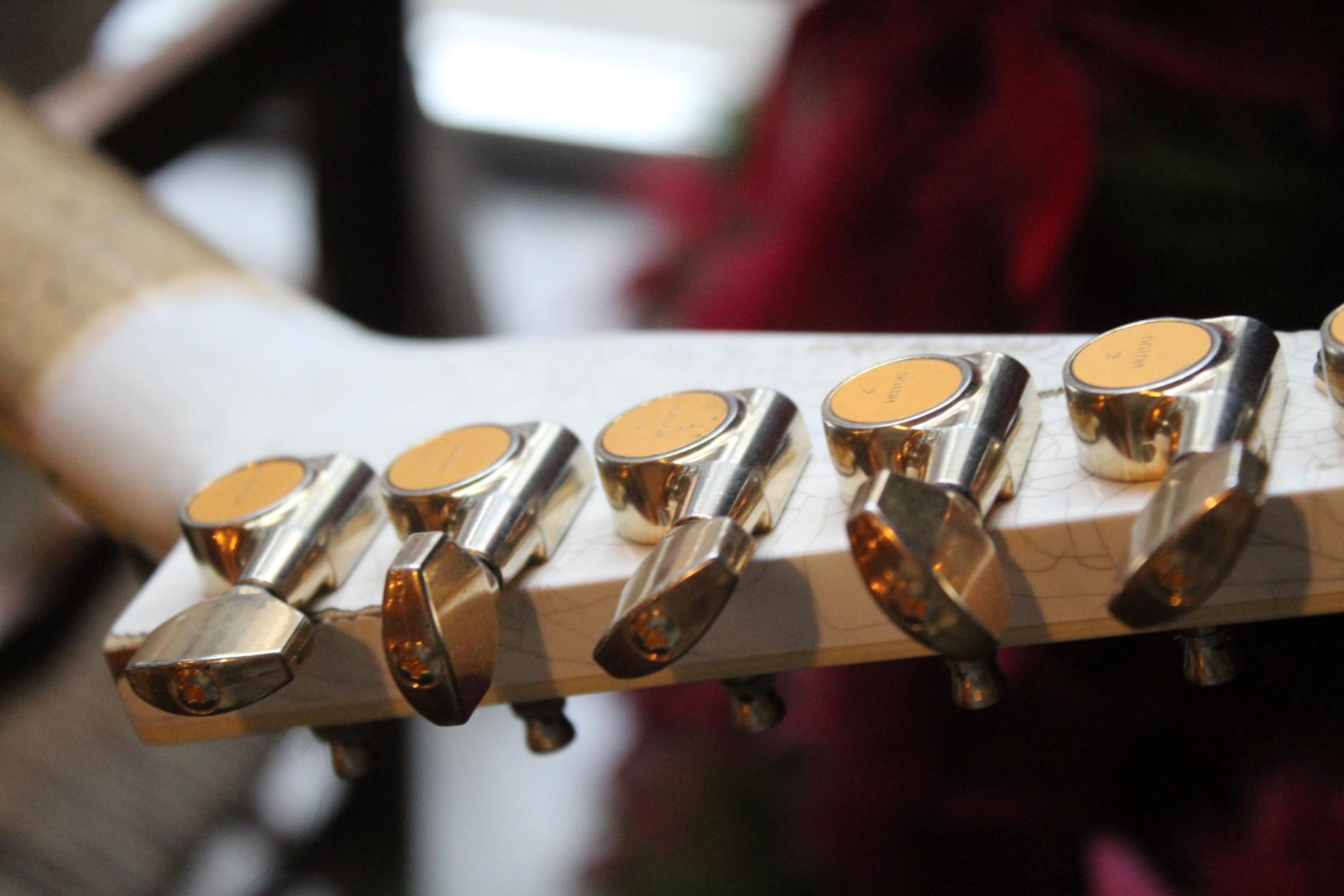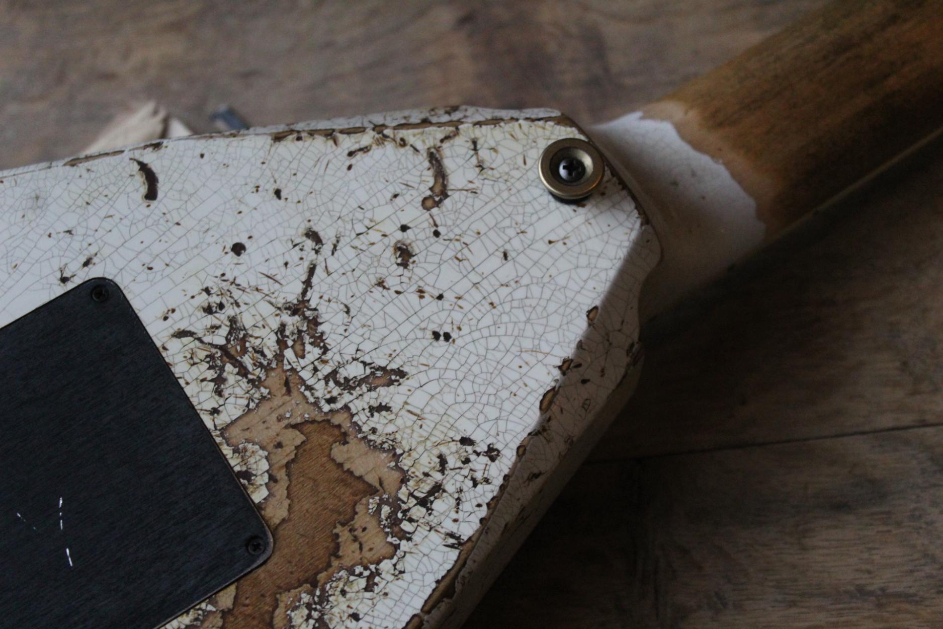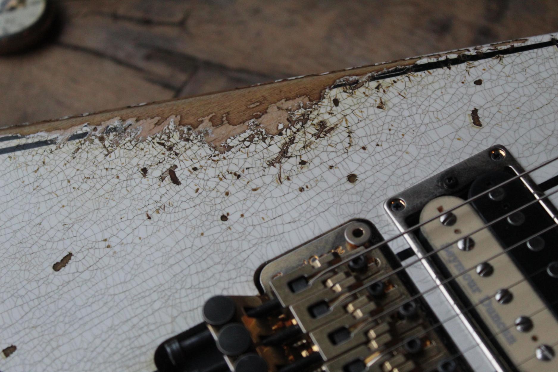 288-8000-037 Nitro-Relic® Tour Finish; Premium Alder Body Wood; Matching Painted Laminated 3-Piece Maple Neck-Thru Design; Ebony Fingerboard; 6-In-Line Jackson® Headstock; Ivoroid Binding on Neck and Headstock; Mother-Of-Pearl Sharkfin Fingerboard Inlays; Dual-Action Truss Rod; 22 - Jumbo Frets; Black Position Markers; .790" at 3rd Fret and .850" at 12th Fret Neck Carve; Floyd Rose® Locking Nut; Gold Floyd Rose® Recessed Double-Locking Tremolo System Bridge; Big Brass Tremolo Block; Double Humbucker Pickup Rout; Gold Pickup Ring(s); Seymour Duncan® JB Model™ Zebra Creme/Black Bobbins Bridge Pickup; Seymour Duncan® Jazz Zebra Creme/Black Bobbins Neck Pickup; Gold Gotoh Tuning Keys; DiMarzio® DP-1201 Master Volume Pot; DiMarzio® DP-1201 Tone Pot; Brass Knurled Metal Dome Knob(s); Switchcraft® 3-Way Toggle Switch; Brass 17mm Strap Buttons; .009" to .042" Strings; 80's Style Gold Logo; Molded Hardshell Case; Certificate of Authenticity.