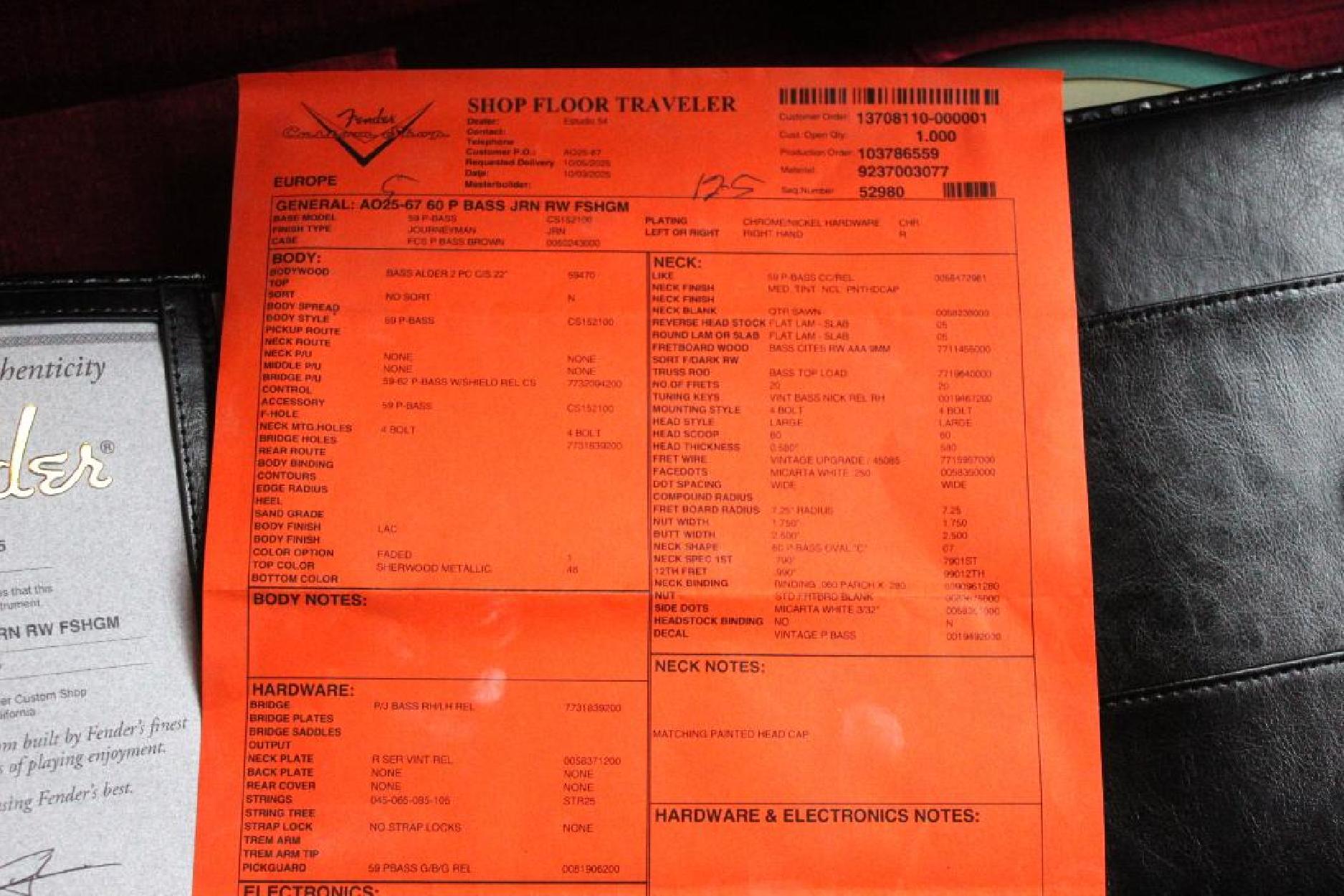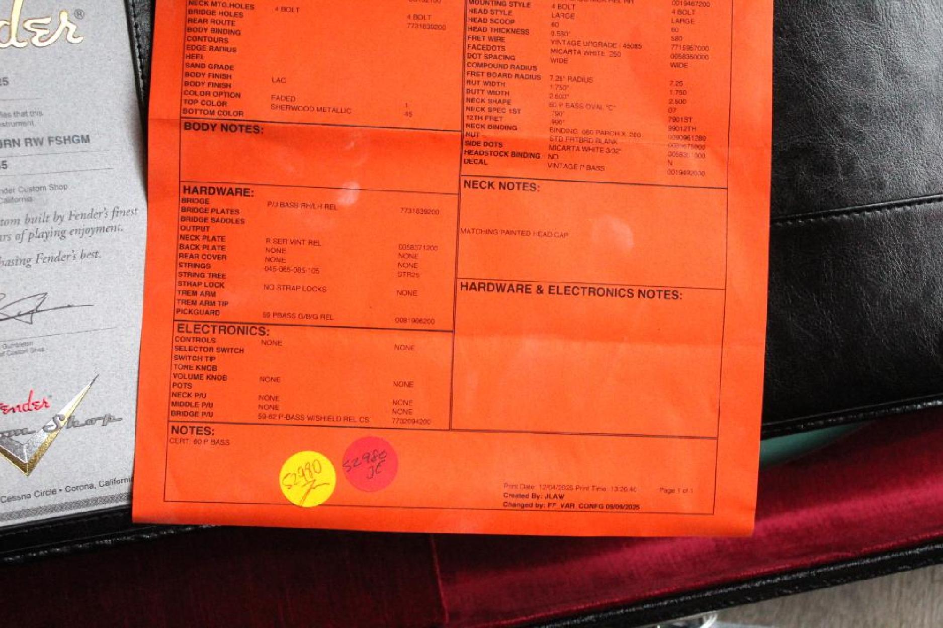 FENDER "Custom Shop Limited Precision Bass Special Journeyman Relic Faded Sherwood Green Metallic" HARDCASE, PAPERS, 4, 12 KG