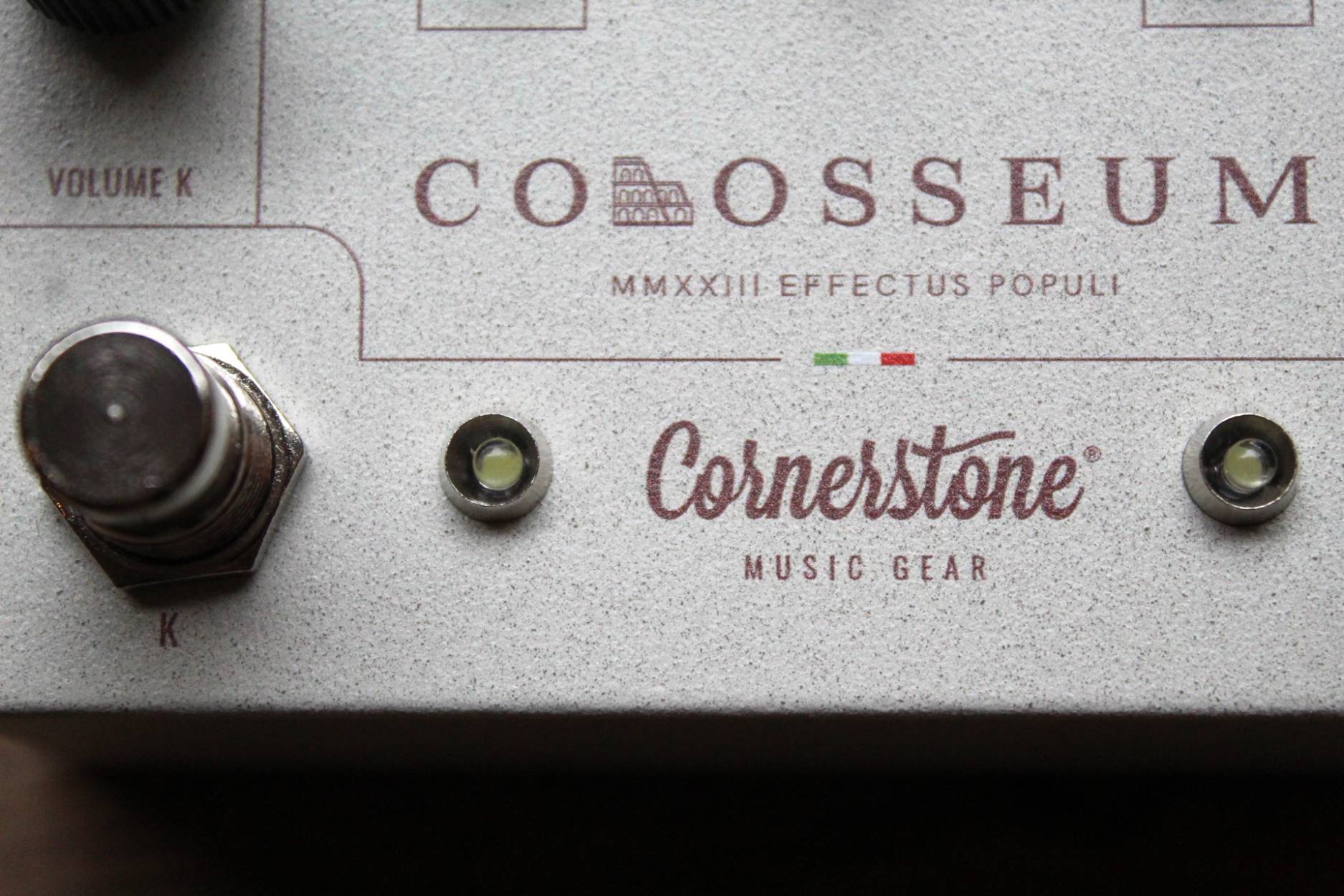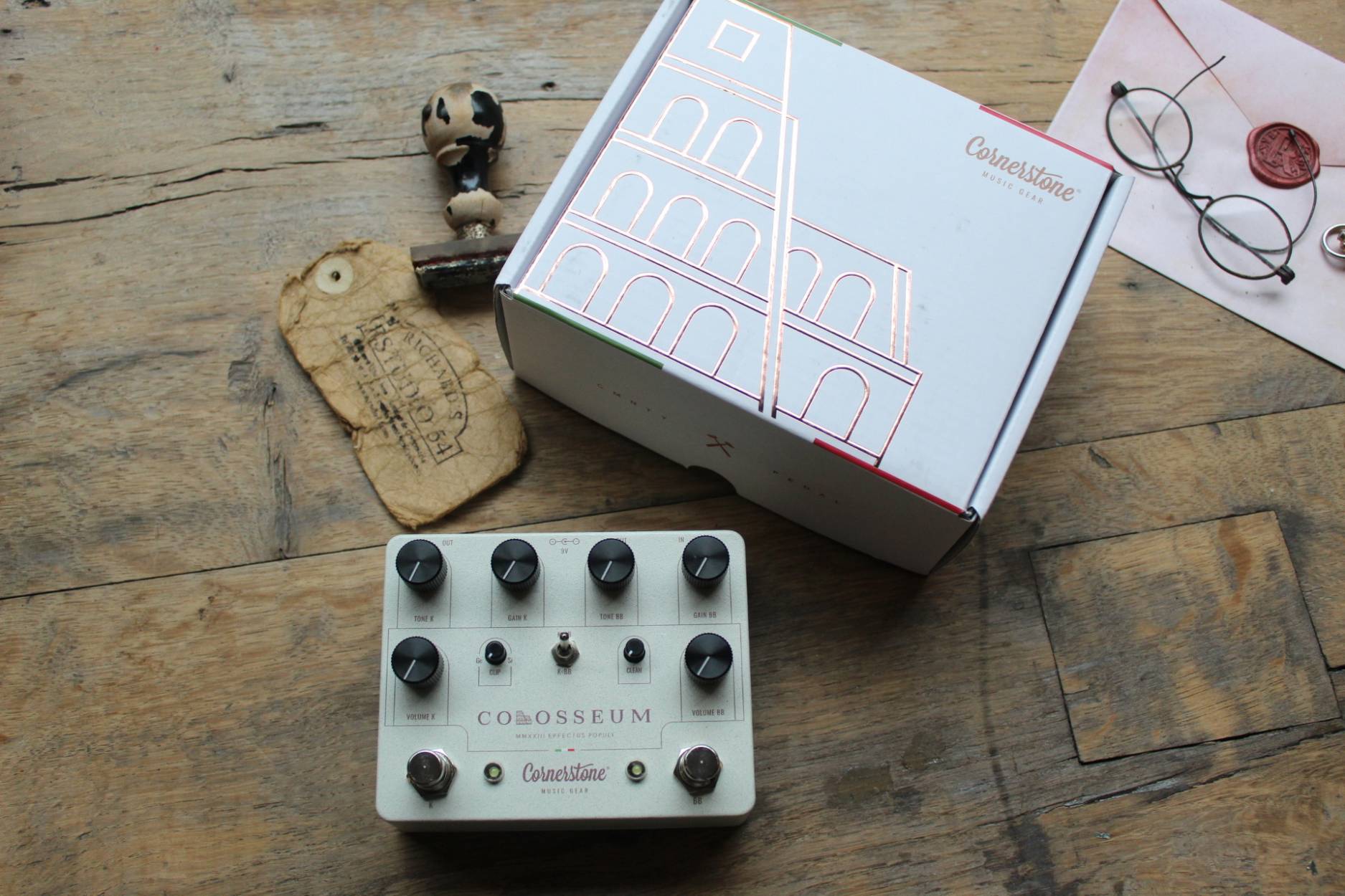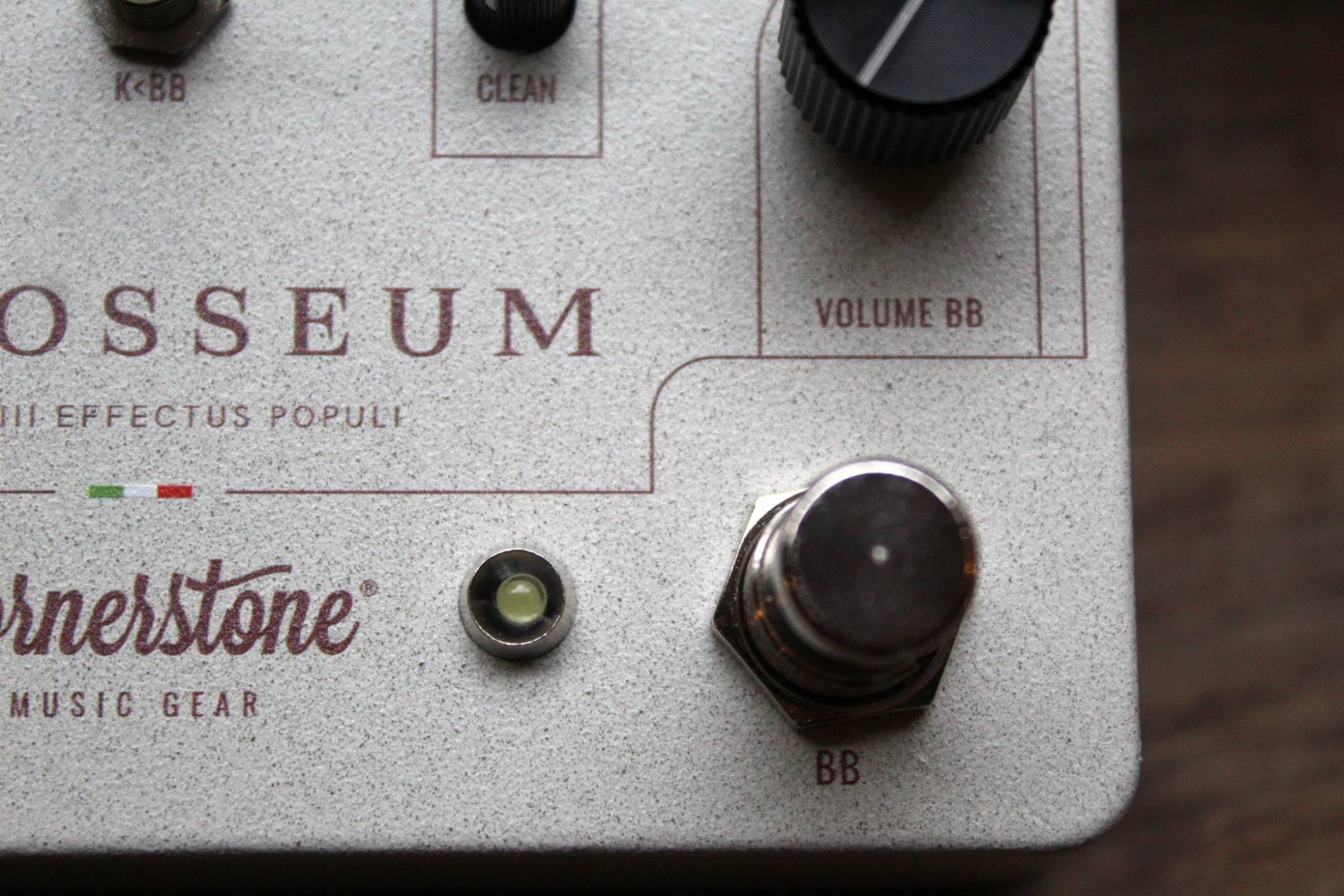 Please welcome the first Community Pedal. Cornerstone’s take on the Blues Breaker and Klon. So, What is it? It is a dual overdrive pedal based on my interpretation of the Blues Breaker and Klon circuits. While I used the original pedals to have an accurate sound reference (even an original Klon), the end result of Colosseum is a unique pedal. The Blues Breaker circuit on another level: On the BB side there is no clipping diodes: forget about the common “issues” that affect a classic BB, such as low volume and dark tone. Removing the clipping diodes will solve them. I also added our “signature” Clean control taken from the Gladio, to add the clean sound on top of the overdriven signal for more tonal versatility. The new Klon’s magic: The Klon side stayed pretty much the same, except for one important detail: the clip blender. We all know that the Klon has built quite a reputation around two “mythical” 1N34A Germanium diodes. We are still using them, measuring each one of them and picking the ones with the correct value of forward voltage, but… with the addition of a pair of hand selected silicon diodes. With this blend feature you have a wide range of tonal flexibility, an entirely new flavor of Klon at your feet, all while still being able to harness the sound of the original. Looper lovers unite! At the back you have 4 jacks to connect each side of the pedal with your favorite looper. You can use the sides independently or put any other pedal in between. Anything else? A little toggle switch will change the order of the two channels very easily for a lot of tone variations!