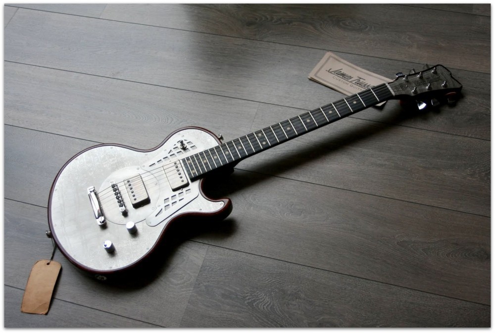 In addition to the recessed steel top plate, our exclusive chambered wood body and custom metal appointments are beautiful to look at as well as being functional. For instance, the recessed steel head cap adds mass to the headstock and increases sustain. The steel, while also being the perfect medium to display the beautiful Trussart custom finishes and engraving, also has tonal advantages. The SteelTop tone is a uniquely classic sound that, combined with the resonant qualities of the chambered body and steel top, can range from sweet thick classic tones to the heaviest lead tones.