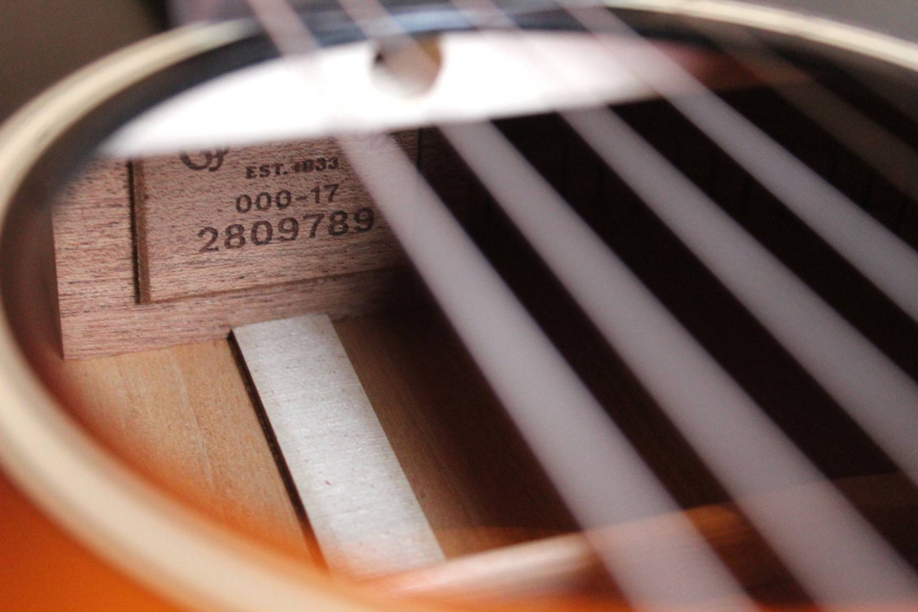 Skillfully crafted from a solid spruce top and mahogany back and sides with antique white binding, a modified low oval neck with a Performing Artist taper, and a rosewood fingerboard and bridge, this guitar produces beautiful dynamic tones that will please the most discerning musician. Due to material availability the 000-17 Whiskey Sunset is designed with either a tortoise pattern or black pickguard. Selection may vary.