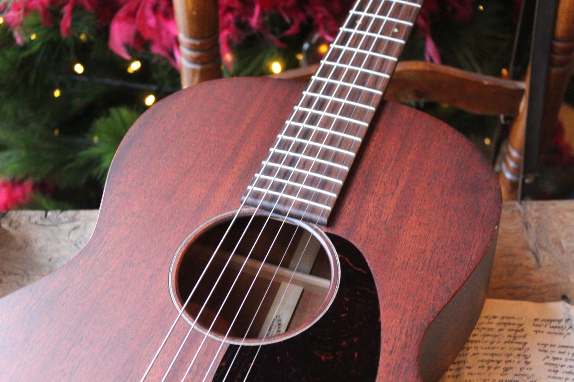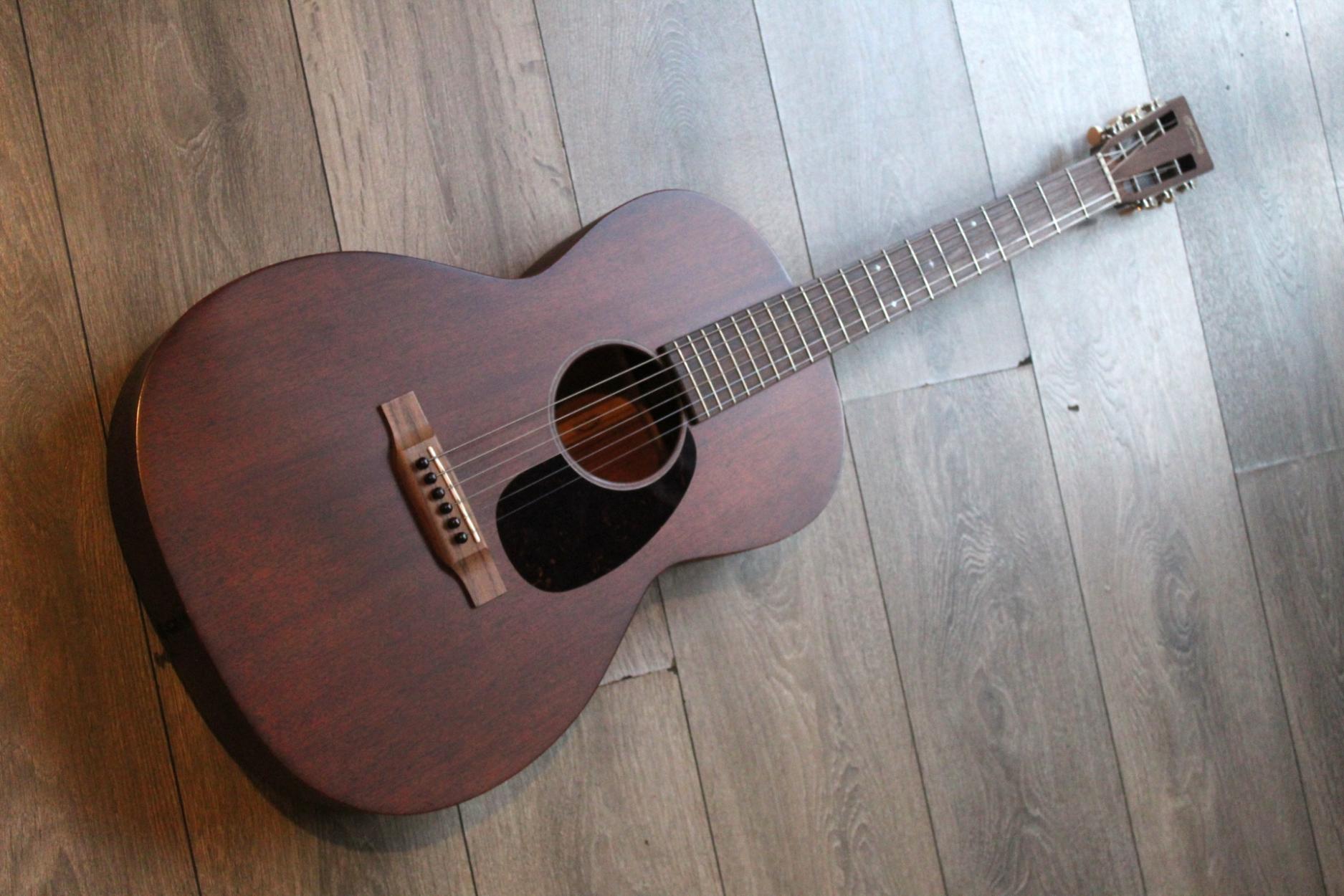 The 000-15SM model continues the Martin tradition with solid mahogany construction and a rich satin finish. The Martin 000-size 12-fret neck features a slotted headstock. Satisfy your desire with an affordable solid wood guitar that is visually distinctive and innovative. Due to material availability this guitar is designed with either a tortoise pattern or black pickguard. Selection may vary. OVERVIEW Recommended Strings: Authentic Acoustic Lifespan® 2.0 Guitar Strings Phosphor Bronze - Light Body Size: 000-12 Fret Finish Top: Satin Construction: Simple Dovetail Neck Joint Back and Side Finish: Satin Bracing Pattern: X-Brace Scale Length: 25.4" Brace Shape: Non-Scalloped Fingerboard Width at Nut: 1 3/4'' Top Material: Mahogany Neck Shape: Modified Low Oval Back Material: Mahogany Neck Taper: Standard Taper Side Material: Mahogany Electronics: Optional