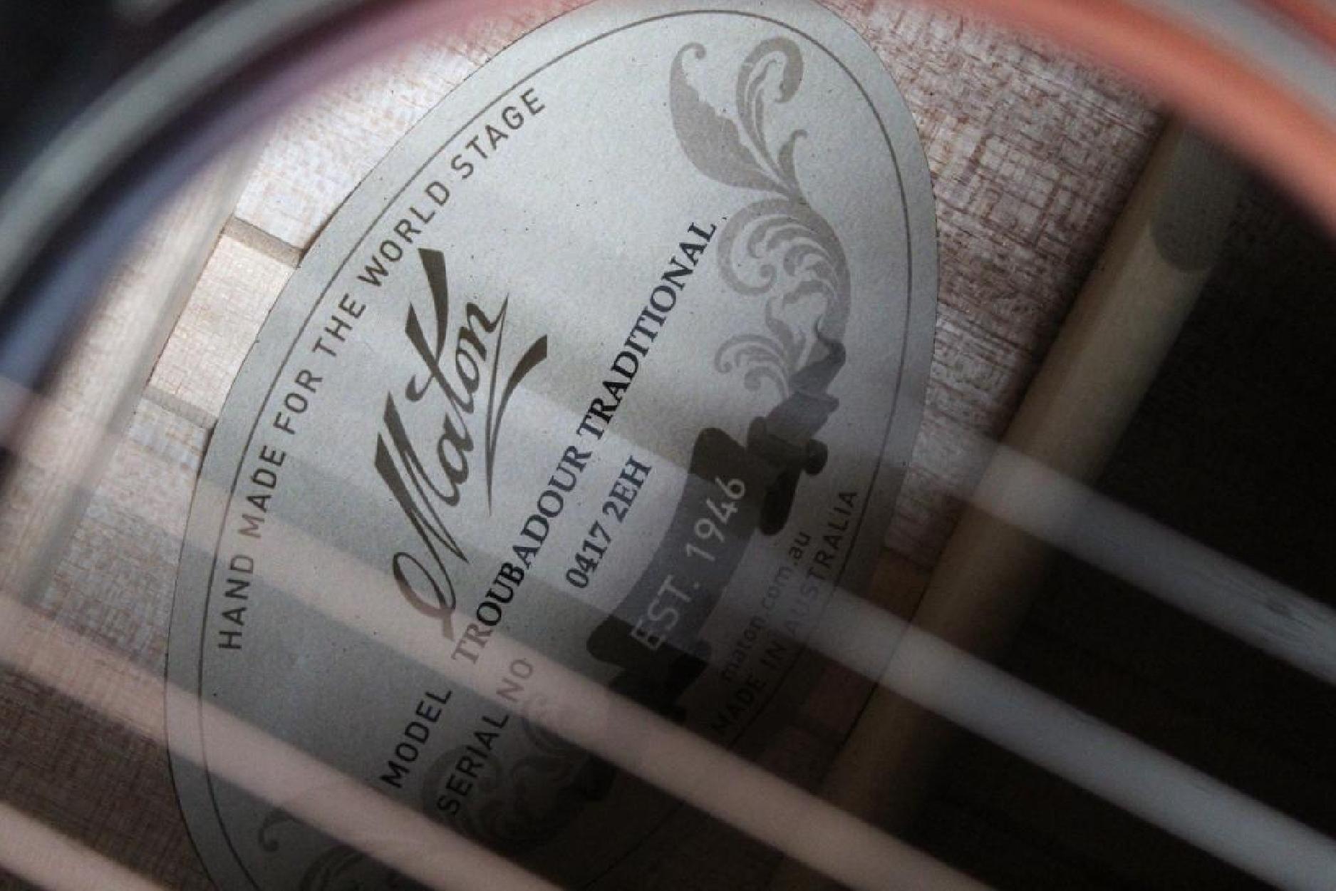 The Maton Troubadour is perfectly suited to those who pour their heart and soul into their music, whether you’re crafting intimate ballads, storytelling through song, or composing the next great anthem. The Maton Troubadour is your trusted partner. The mahogany neck ensures a smooth, effortless playing experience, allowing your creativity to flow freely. Available in both Dreadnought and Traditional body shapes, the Maton Troubadour adapts to your unique style, offering powerful projection or delicate balance, depending on your preference. Discover the Maton Troubadour — make your voice heard with the instrument that’s built to inspire. Guitar Name:Troubadour TraditionalSeries Name:TroubadourProduct Code:TROUBADOUR-TRADBody Shape:Traditional Deep BodyFace:A SpruceBack And Sides:Solid Queensland MapleSoundhole Diameter:95mmNeck:MahoganyFingerboard And Bridge:Streaky EbonyBracing:Scalloped Maton XFace Inlay Rosette:HerringboneBinding:Herringbone/White ABSScale Length:25.5Headstock Veneer:EbonyFretwire:Jescar FW43080Number Of Frets:21Fretboard Radius:12"Nut Width:1.736" - 1 47/64"14th Fret Width:2.165" - 2 11/64Fingerboard Inlays:6mm Pearl DotsBack And Sides Finish:Satin - Tobacco SunburstTop Finish:Satin - Tobacco SunburstBridge Pins:Ivory ABSMachine Heads:Gold Grover RotomaticPickguard:TortoiseshellEnd Pin Strap:GoldNut And Saddle:BoneGuitar Case:Standard Maton CasePickup:AP5 PROStrings:Elixir Nanoweb Phospher Bronze