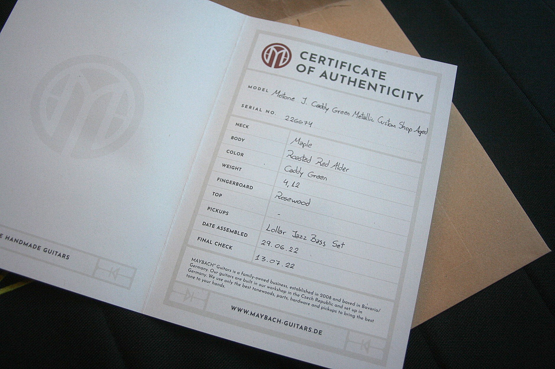 SPECIFICATIONS Die Tuner von GOTOH GB 640 4LN sind nicht nur ca. 40 Gramm leichter als vergleichbare Mechaniken, sie sind auch wesentlich wertiger gebaut und sorgen für präzises Stimmen deines Basses. Jason Lollars Pickups haben uns für die MAYBACH MOTONE Bässe am besten gefallen. Sie liefern die gesamte Bandbreite an Sounds in einer beeindruckenden Qualität, die dich begeistern wird. KORPUSJ-STYLE ROTERLE HALSAHORN GRIFFBRETTPALISANDER MECHANIKENGOTOH GB 640 4LN PICKUPSLOLLAR SINGLE COIL SET CONTROLS2X VOLUME, 1X TONE, 1X TOGGLE FINISHNC LACKIERUNG, SHERWOOD GREEN OTHERINKL. MAYBACH LUXUS-GIGBAG