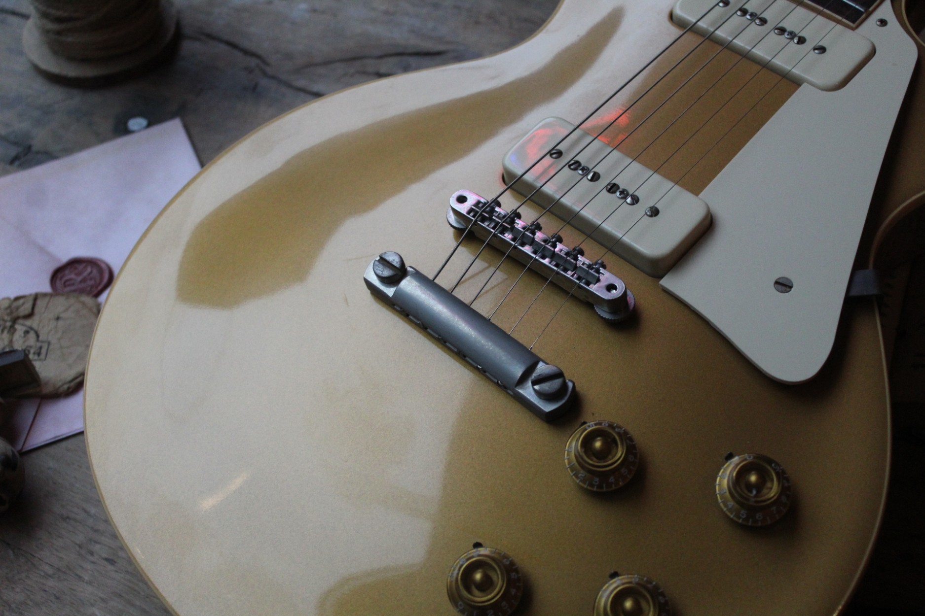 Glimmering Gold and Sparkling P-90 Pickups Gibson Custom Shop is the pinnacle of craftsmanship, quality, and sound excellence. Each instrument celebrates Gibson's legacy through accuracy, authenticity and attention to detail. 1956 was the only full year in which the Les Paul model featured the powerful P-90 pickups and the adjustable ABR-1 bridge setup, a combination that allowed the Les Paul model to intonate, sustain, and thrill like never before. This Gibson Custom Shop '56 Reissue captures the look, feel and searing sound of an original 1956 Les Paul Goldtop in exhaustive detail, featuring all solid woods, vintage-accurate gold paint, authentic replica parts, Historic narrow/tall frets, and hot hide glue construction.