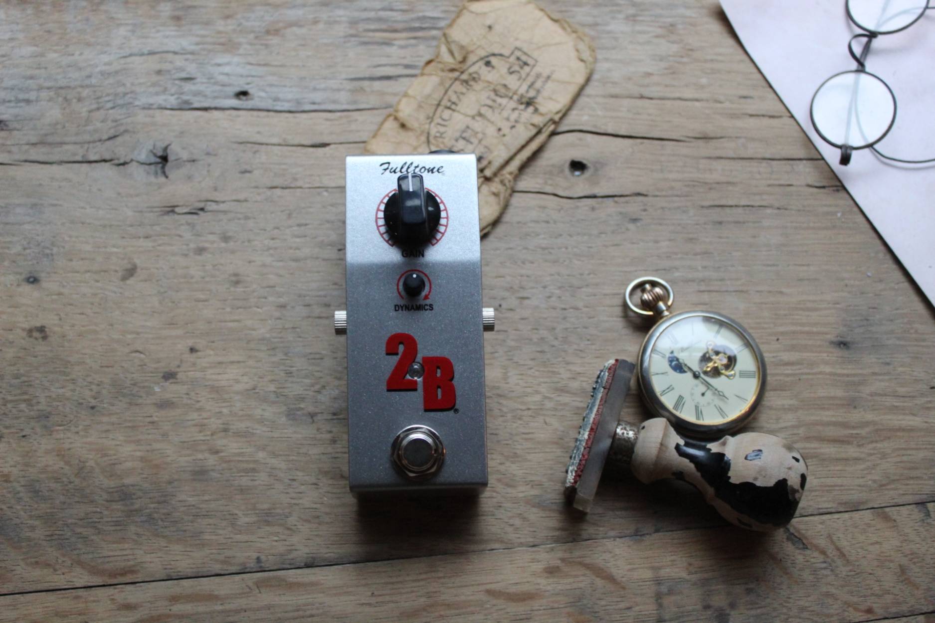 What is it? The Fulltone 2B is a tiny, transparent, and amazing boost pedal, born from the “Boost” channel in our FD3 pedal. Crammed the circuit into the smallest possible enclosure 4.5" x 2.1" x 2.3" with battery tucked tightly inside and even engineered space-saving rear-mounted IN, OUT, and DC power jacks. Why does a guitarist need a “Boost” pedal? A boost pedal is not only used to kick up your volume when it’s time for your solo! A good booster can also solve a lot of problems in the modern guitarist’s rig, because today’s pedalboards average 8 or more pedals, with each of those pedals requiring: a guitar cable--->jack--->more wire--->footswitch--->circuit--->footswitch again--->jack--->more wire--> and on to next pedal. It’s a wonder there’s any signal left after all the stuff we put our signal through. Ever played through a 10’ guitar cable straight into a great tube amplifier? The feel, the dynamics, the fat tone...makes you want to play! Then you connect to your overpopulated pedalboard and suddenly the sound is tiny, thin, with diminished lows, cardboard mids, and scratchy thin highs. This is where a good booster comes in handy, because all that wire and all those connections reduce your signal by a measurable amount with each passing effect in your signal chain. Add a good booster and you can recoup a lot of that lost gain, tone, and reactive interplay between you and your lovely tube amp. Suddenly the “touch” is back. What happens when the 2B is turned OFF? That’s the problem with other boosters…once they’re OFF, they cease to offer a high quality unity-gain buffer to drive the long cables, so you end up having to buy TWO boosters, one set to “unity gain” and the other set to do your Volume changes! A better solution is the 2B, its unity-gain JFET amp buffers your signal when the pedal is turned OFF…and when the 2B is turned ON; the only difference is now the GAIN knob comes into play allowing you to set the desired boost up to 20dB! Why is the 2B a great booster? Because I go the extra mile and buy the best JFET opamp, in my opinion….certainly the one that sounds the best to my ear. The problem with other boosters is that the more you turn them up, the more highs they add. Not the case with the 2B, there is a subtle roll-off of the harsh ultra-high frequencies as you roll the LEVEL knob clockwise past 12 o’clock. It’s subtle, you may not hear it, but you WON’T hear that shrill top end that other boosters can impart! What’s the DYNAMICS knob? The 2B offers something completely unique in the world of Boost pedals; a DYNAMICS knob. A subtle Germanium diode Limiter circuit that (as you turn the mini-knob clockwise) starts to slightly alter the feel of the notes being played as well as subdue the harsh transient spikes which can overload your amp’s input. Those spikes can be fatiguing to your ears, to the amp, and to its speakers! Similar to using a limiter on the mix down of a song in the studio, the 2B’s DYNAMICS feature helps you keep your place in the live mix.....like a very smart compressor. This feature can make even an “ok” amp feel responsive and juicy, and will keep you from distorting the amp’s input, a problem plaguing most booster pedals. Specs: Input Impedance: ultra-high 1.65mega ohms…Not a chance of any interaction issues with guitars or other effects Output Impedance: ultra-low 300ohms..no chance of loading or interaction issues. Max Gain: @ 20dB Size: 4.5" x 2.1" x 2.3" Weight= 12 ounces (with the included battery) Power requirements: anything from 5 to 18 volts DC, 9 or 18 VDC recommended.