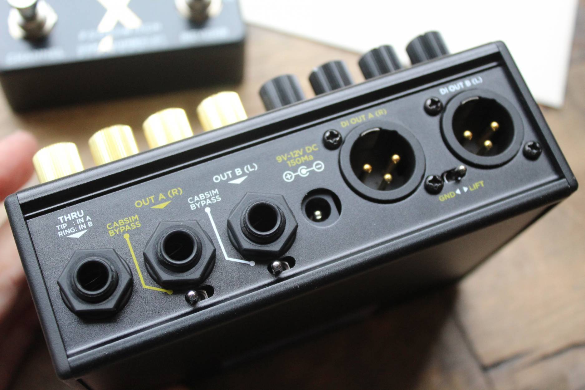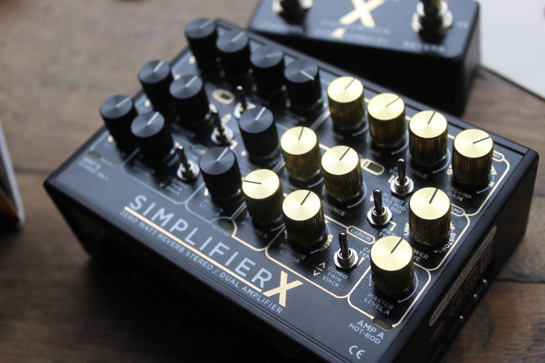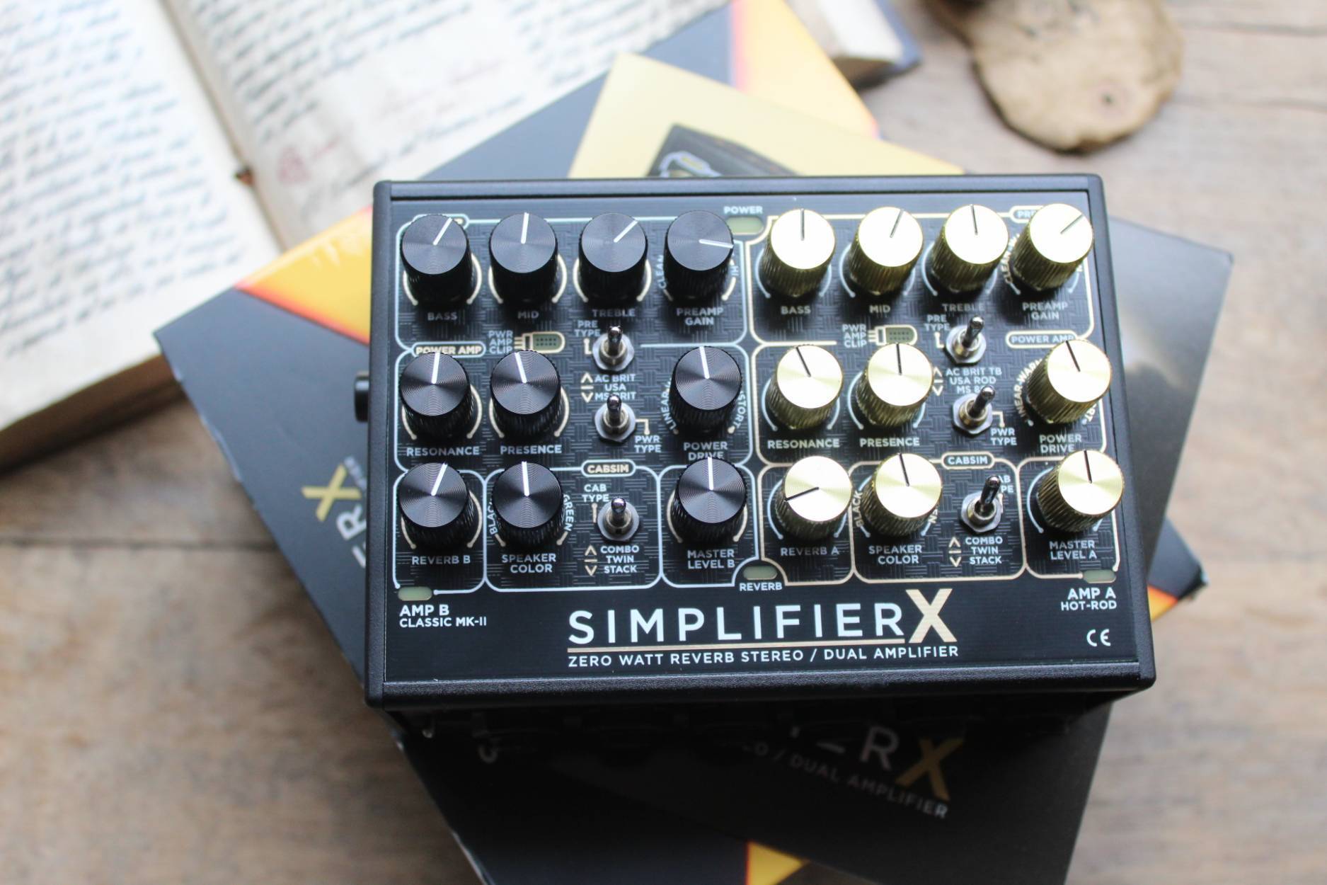 The SIMPLIFIER X was thoroughly designed and developed to fulfill the needs of guitarists seeking for versatility, flexibility, practicality and of course, the ability to get the best tones ever produced by analog gear. True stereo (Two independent inputs) 3 different useful modes - No extra Y cables needed - Dual FX Sends/Returns - THRU jack for dedicated DRY AMP signal path - 1/4 Outputs with Cabsim bypass -Two XLR DI outputs - Selectable AUX input for silent practice thru headphones only or send your auxiliary signal straight to PA using the XLR outputs. HEAVY DUTY custom made anodized aluminium case in sandblasting /frosted black finish. WEIGHT: 490 grs (1 lb) Dimensions: 125 x 105 x 65 mms - 5,2x 3,9x2.5 inches Power supply requirements: Voltage: 9 to 12V DC regulated Connector: 2.1mm DC jack, Center negative Current consumption: 200mA Recommended supply current: 250mA and up Input Impedance: Input: 1Meg Ohm L & R return: 1Meg Ohm Output impedance: Send: 1K Ohm Unbalanced Outputs: 4.7K Ohms Balanced Outputs: 100 Ohms Headphone amp specs: Power: 135mW into 32 Ohms. * Use with 16, 32, 64 and 96 Ohm Headphones. * Loss of power can occur with higher impedance headphones.