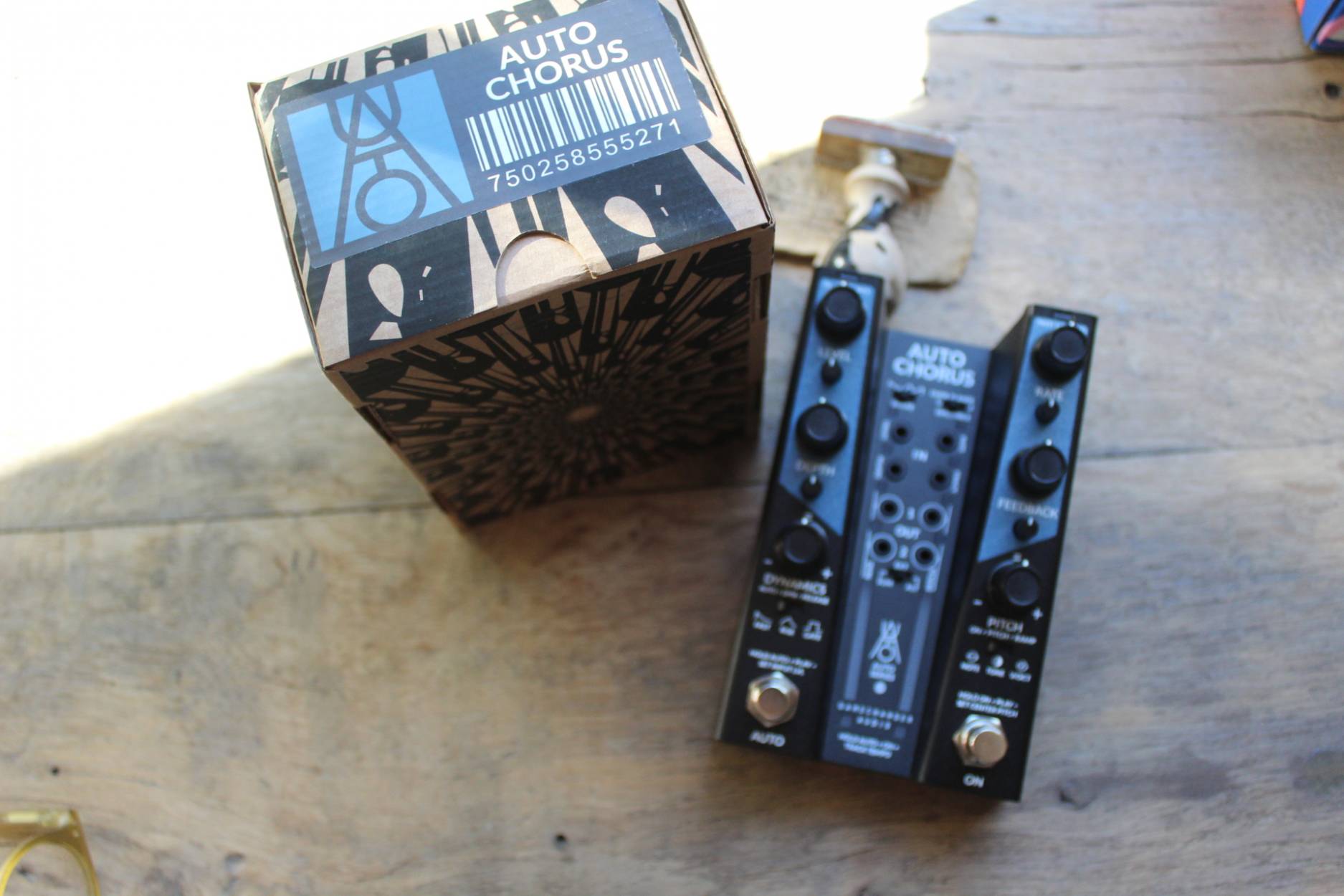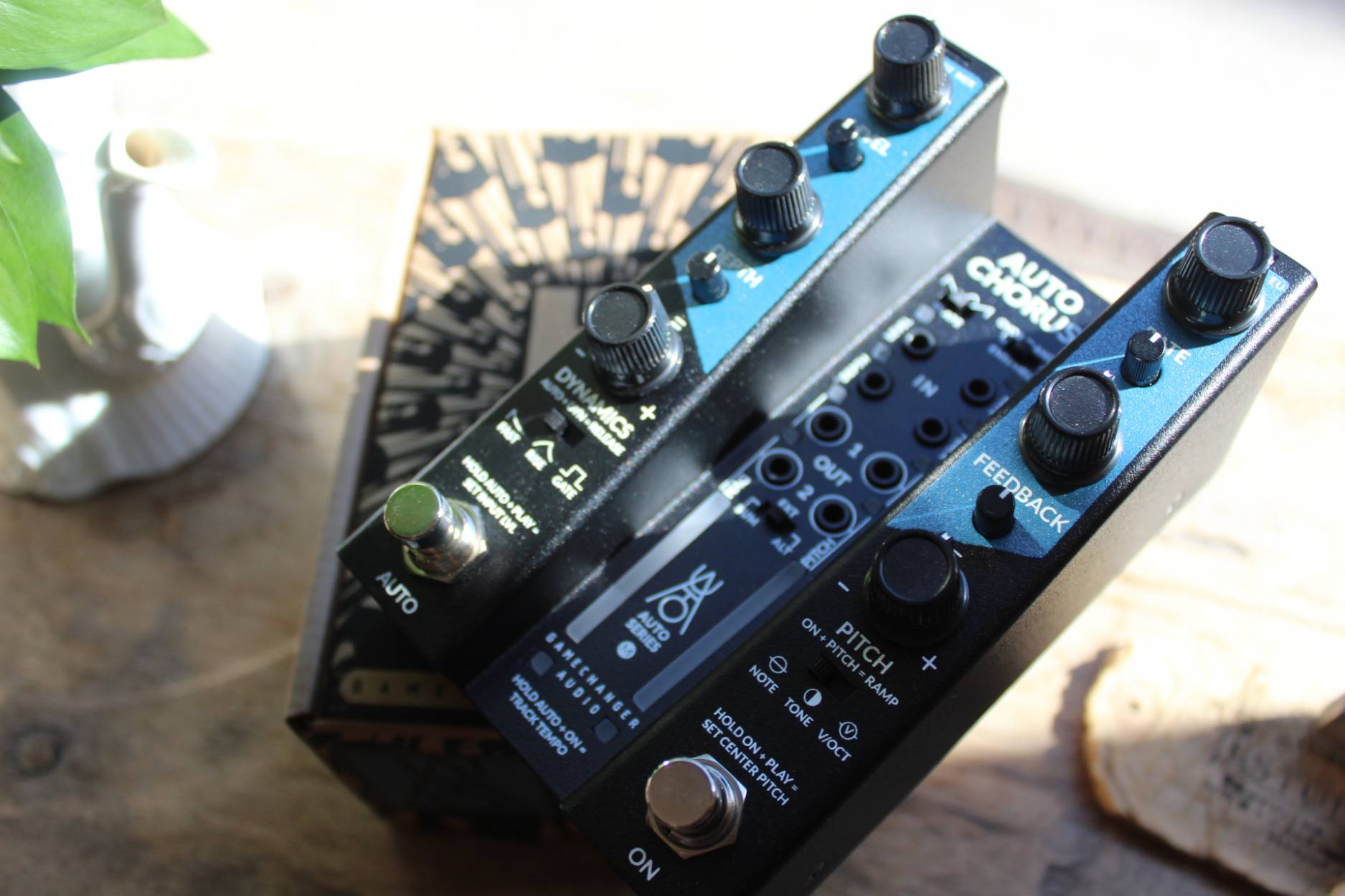 The AUTO CHORUS encapsulates three rich and warm-sounding types of modulation effects: chorus, ensemble and flanger. CHORUS algorithm is a classic simple chorus effect that mixes the dry sound with a delayed and pitch-shifted signal. For a pure vibrato effect, set the LEVEL KNOB MODE to MIX, set the LEVEL knob completely clockwise, and set the FEEDBACK knob completely counter-clockwise. ENSEMBLE algorithm is a more lush version of the chorus. This algorithm mixes the dry signal with three slightly offset and pitch-shifted signals. This ensures that in the higher DEPTH setting, the internal modulation rate remains less audible than in the CHORUS algorithm. FLANGE algorithm shortens the delay of the chorus effect to achieve the typical jet-engine-like effect. CONTROLS RATE adjusts the modulation range from 0 Hz to 819.16 Hz. When turned completely counter-clockwise, the pedal stops modulating the delay line and the effect is stuck on a static delay time controlled by the DEPTH knob. When the RATE is set to 0, the DEPTH knob allows you to dial in various comb-filtering sounds. DEPTH control. The minimum counterclockwise setting is no modulation depth, which means that the wet signal has a constant short delay (since CHORUS and FLANGER are delay-based effects). This means that even if the modulation depth is zero, you can still use the FEEDBACK control to shape the wet sound. FEEDBACK level adjustment. High settings introduce a metallic resonant character that is dependent on the selected algorithm. The maximum setting pushes the effect into an infinite feedback loop. TRACK TEMPO AND MODULATION SHAPE The AUTO CHORUS features an innovative approach to the tap tempo function: TRACK TEMPO. Push and hold both footswitches at the same time. The pedal uses its dynamic tracking capabilities to determine the tempo of strumming and sets the RATE parameter value accordingly. The MODULATION SHAPE switch offers three distinct modulation shapes: SAW, SINE, and RAMP.