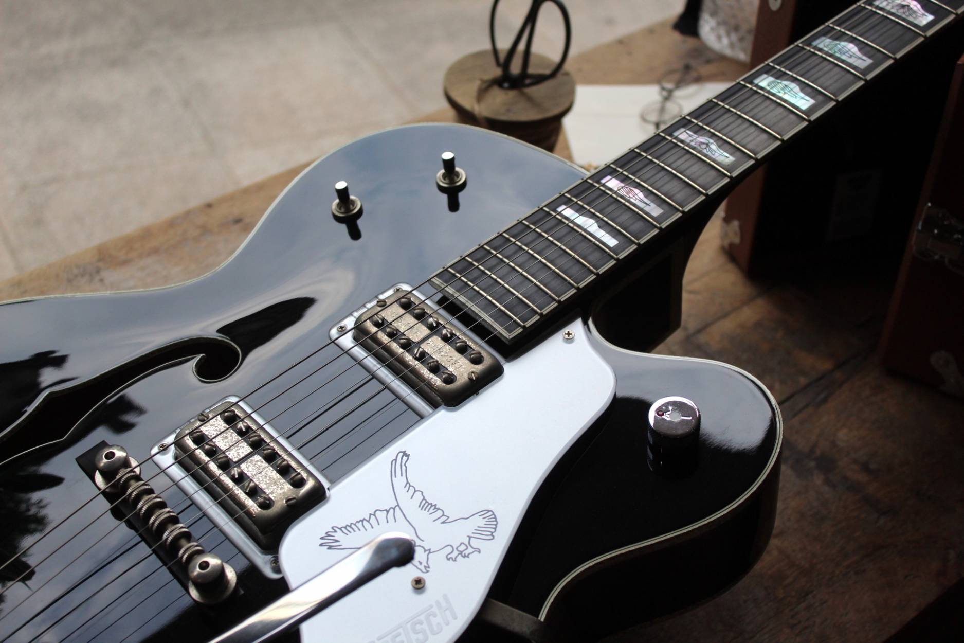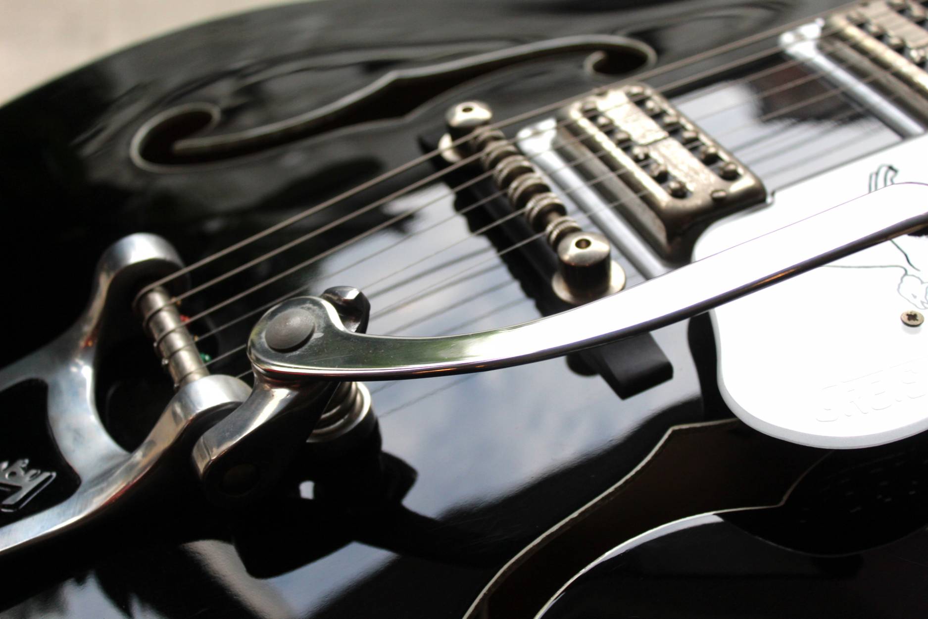 Brand Gretsch Model G6136TSL Silver Falcon with Bigsby Finish Black Year 2004 - 2016 Made In Japan Categories Hollow Body Guitars Body Material Maple Body Shape Single Cutaway Body Type Hollow Body Bridge/Tailpiece Type Tremolo Tailpiece Color Family Black Fretboard Material Ebony Model Family Gretsch Falcon Neck Construction Set-Neck Neck Material Maple Number of Frets 22 Number of Strings 6-String Pickup Configuration HH Right / Left Handed Right Handed Scale Length 25.5" Top Material Maple
