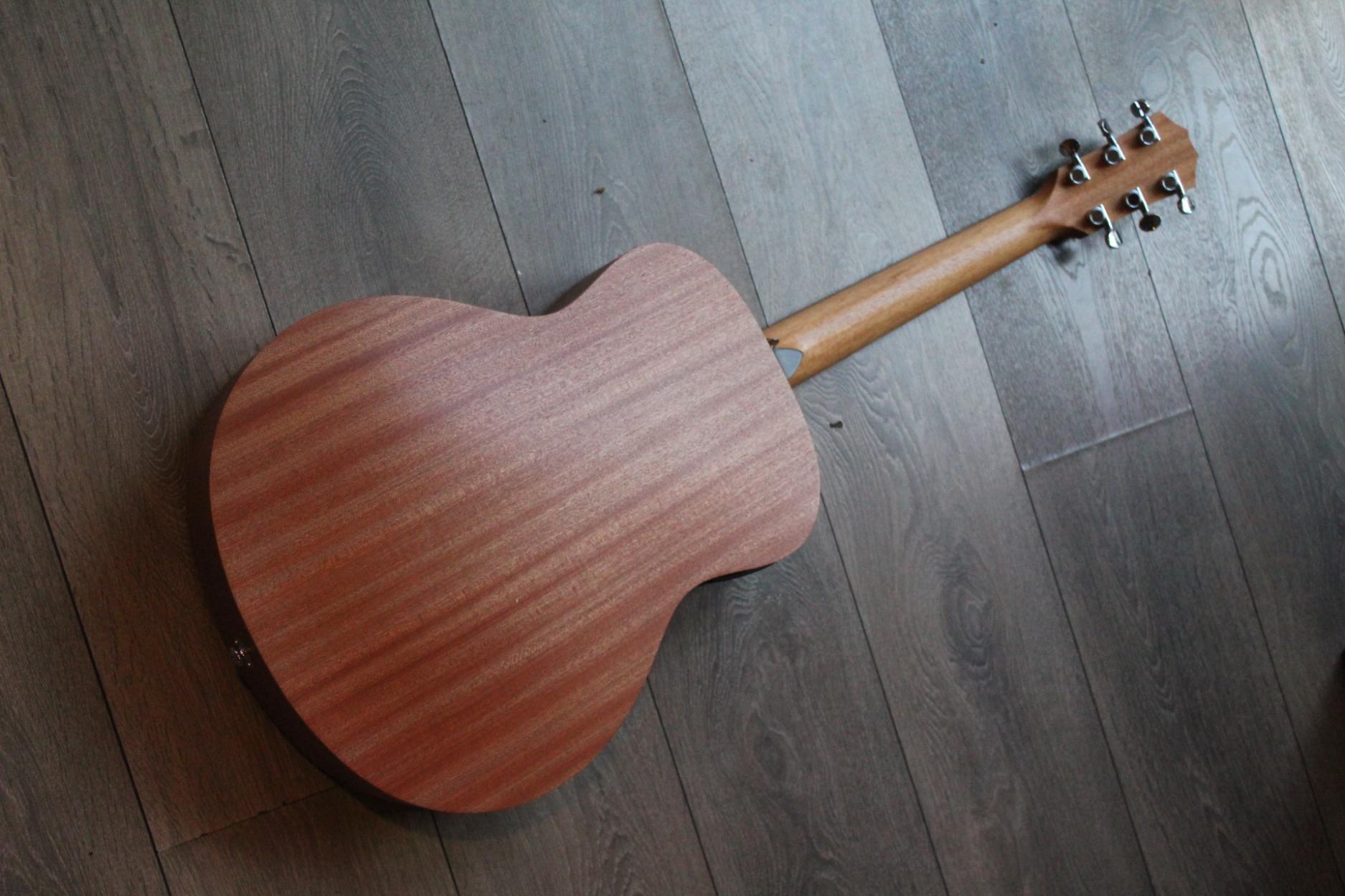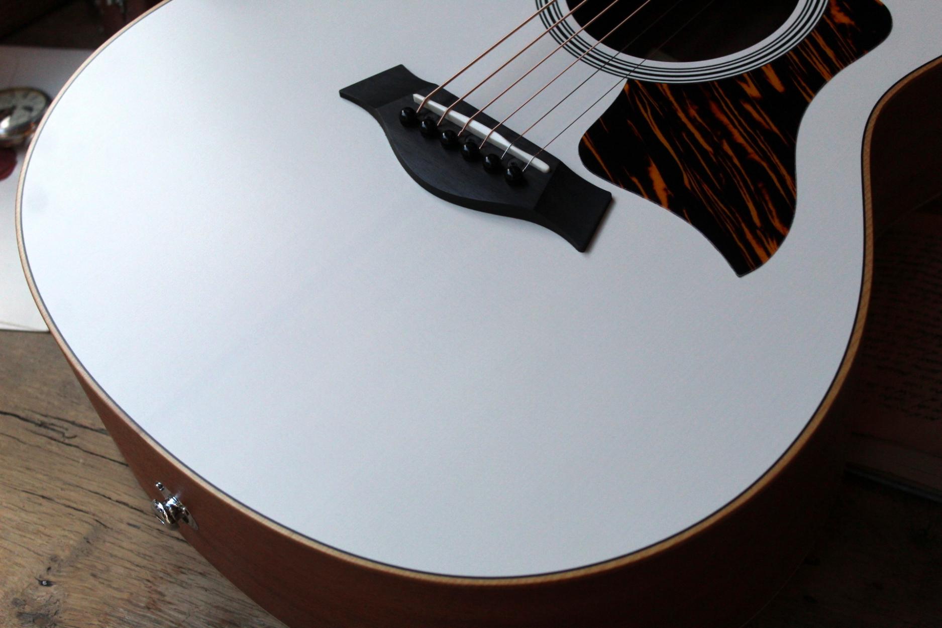Boasting a transparent white top color treatment that reveals grain lines of its spruce soundboard beneath, the GS Mini-e Special Edition, Trans White presents an attention-grabbing, head-turning visual aesthetic. A vivid focal point for its eye-catching design, a vibrant firestripe pickguard creates a striking contrast against the white soundboard. Layered sapele back and sides are paired with a solid torrefied Sitka spruce top in our scaled-down, matte-finished Grand Symphony body. The result is a travel-friendly guitar that offers bold projection and a rich, balanced tone profile with a sweet, played-in sound. Thanks to its slender Taylor neck, low action and compact 23-½-inch scale length, it's no wonder the award-winning GS Mini is so comfortable and fun to play. A built-in ES-B pickup, which includes a digital tuner, delivers clear, natural amplified tones for players who want to plug in. With the included gig bag, you and your GS Mini are set to hit the road for all your musical adventures.