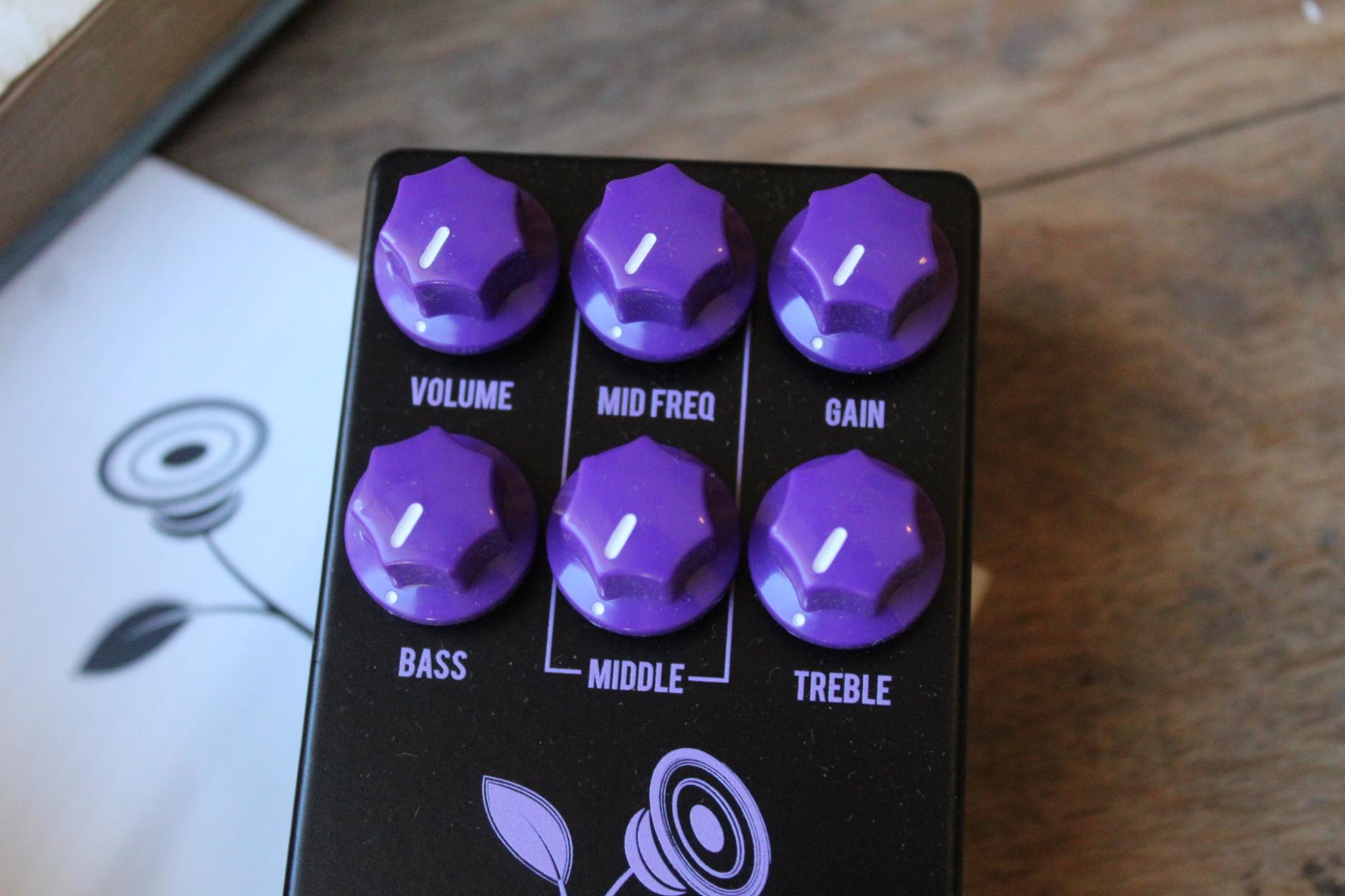 The Violet Distortion is a new take on distortion/overdrive brought to you from the collaborative minds of Josh Scott and highly influential Brazilian guitarist Lari Basilio! Using this pedal is like adding a new and ultra-flexible distortion channel to your favorite clean amplifier. The unique three-band EQ sets the Violet apart from our other popular distortion pedals. We placed the Midrange control before the distortion circuit as a powerful pre-amp distortion shaping tool. This single design choice allows the Violet to achieve hundreds of tones, from overdrive to full-on modern distortion. Treble and Bass controls are located in a more traditional position after the distortion circuit, offering familiar but extremely flexible post-distortion shaping you’re accustomed to. The Violet also excels at stacking with other overdrives, distortions, and fuzzes, allowing it to fit perfectly into any rig as a second or new primary dirt device. This pedal is for anyone looking to give their guitar a new voice. As Lari put it, “Why would I need words when my guitar can speak for me?”