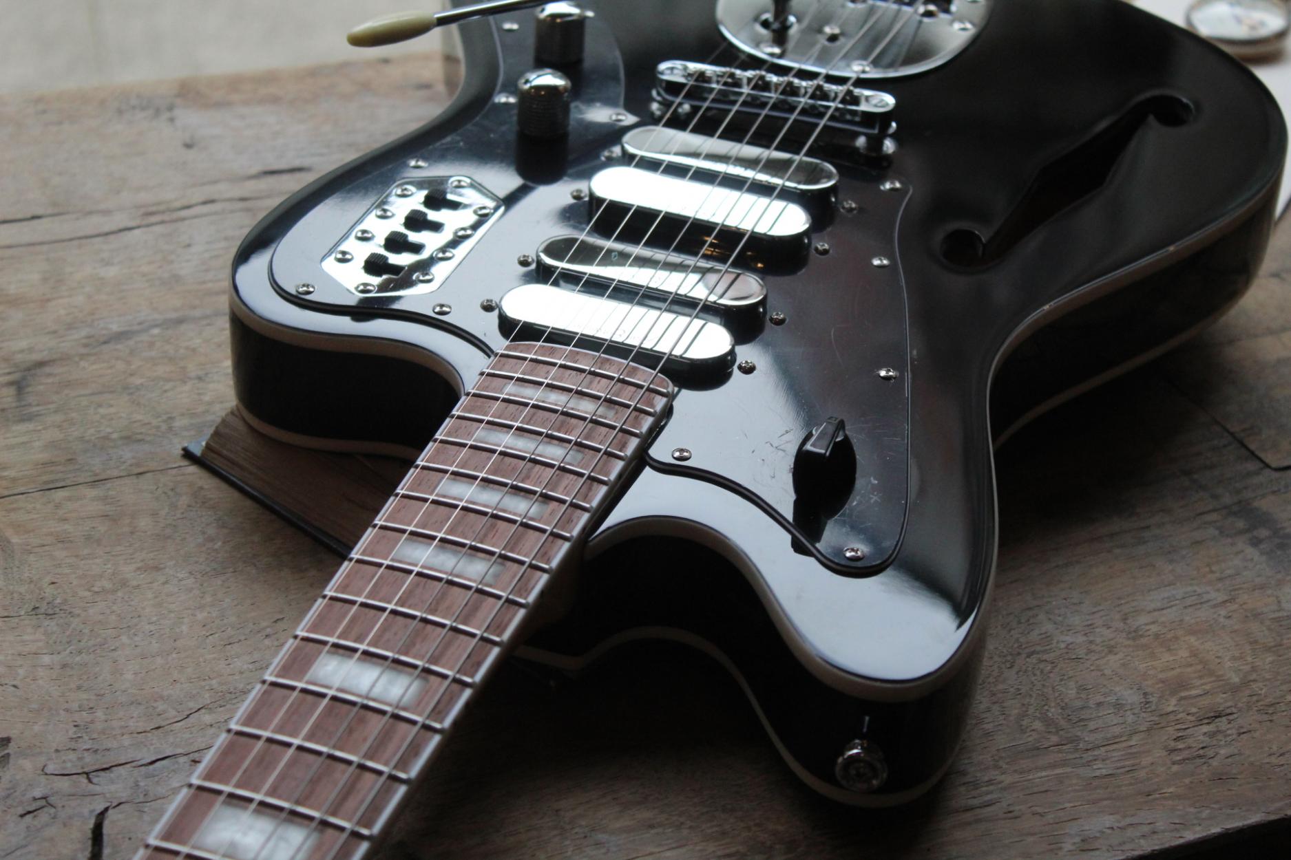 Body: Okoume – Thinline Offset Neck: Maple – Bolt On Fingerboard: Bound Jatoba, Block inlays Frets: 22 Medium Jumbo with Zero Fret Scale Length: 24.75" / 628mm Tuners: Wilkinson® E-Z-Lok™ Bridge: Roller Vibrato: Vintage Offset Pickups: 4 Alan Entwistle ETS3 Astrosonics Controls: Volume/Tone with 4 slide switches and ATN5 Variator Top Nut: GraphTech® The 'Surfmaster™' is an original Vintage® REVO Series™ guitar, designed and created by the UK Vintage design team and Alan Entwistle.