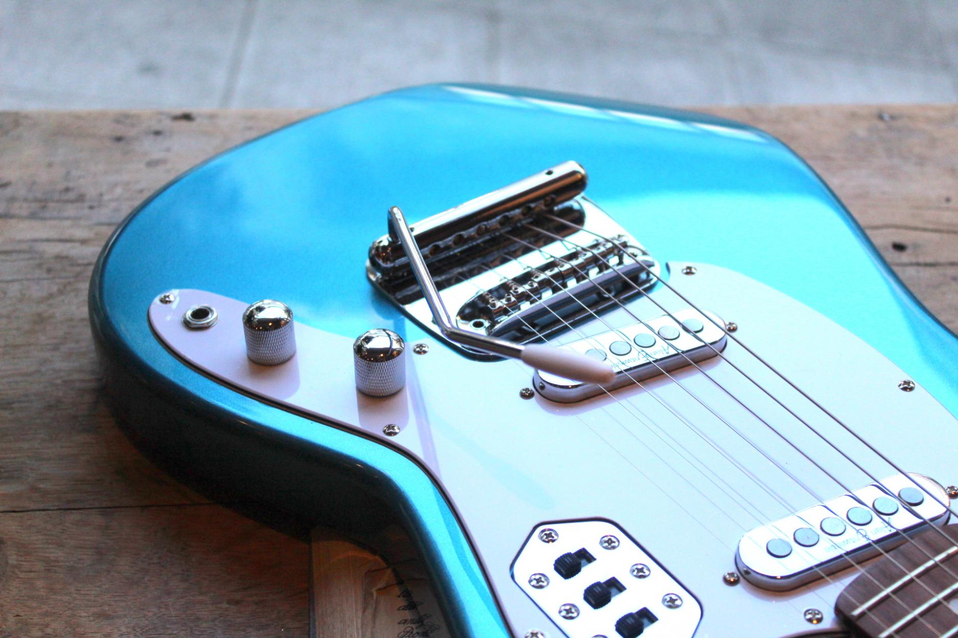 The Colt SS Twin with a retro style vibrato system features Alan Entwistle Astrosonic neck and bridge pickups, a maple neck, GraphTech precision-cut nuts Wilkinson E-Z Lok™ machine heads and 22 fret jatoba fingerboards and individual on/off pickup switches. The Astrosonic vintage-inspired pickups feature 7.5mm Alnico V rod magnets. With power, dynamics and versatility, these low-noise the Astrosonic pickups are renowned for their clarity and tone, with ample output to drive pedals whilst remaining clear and articulate.