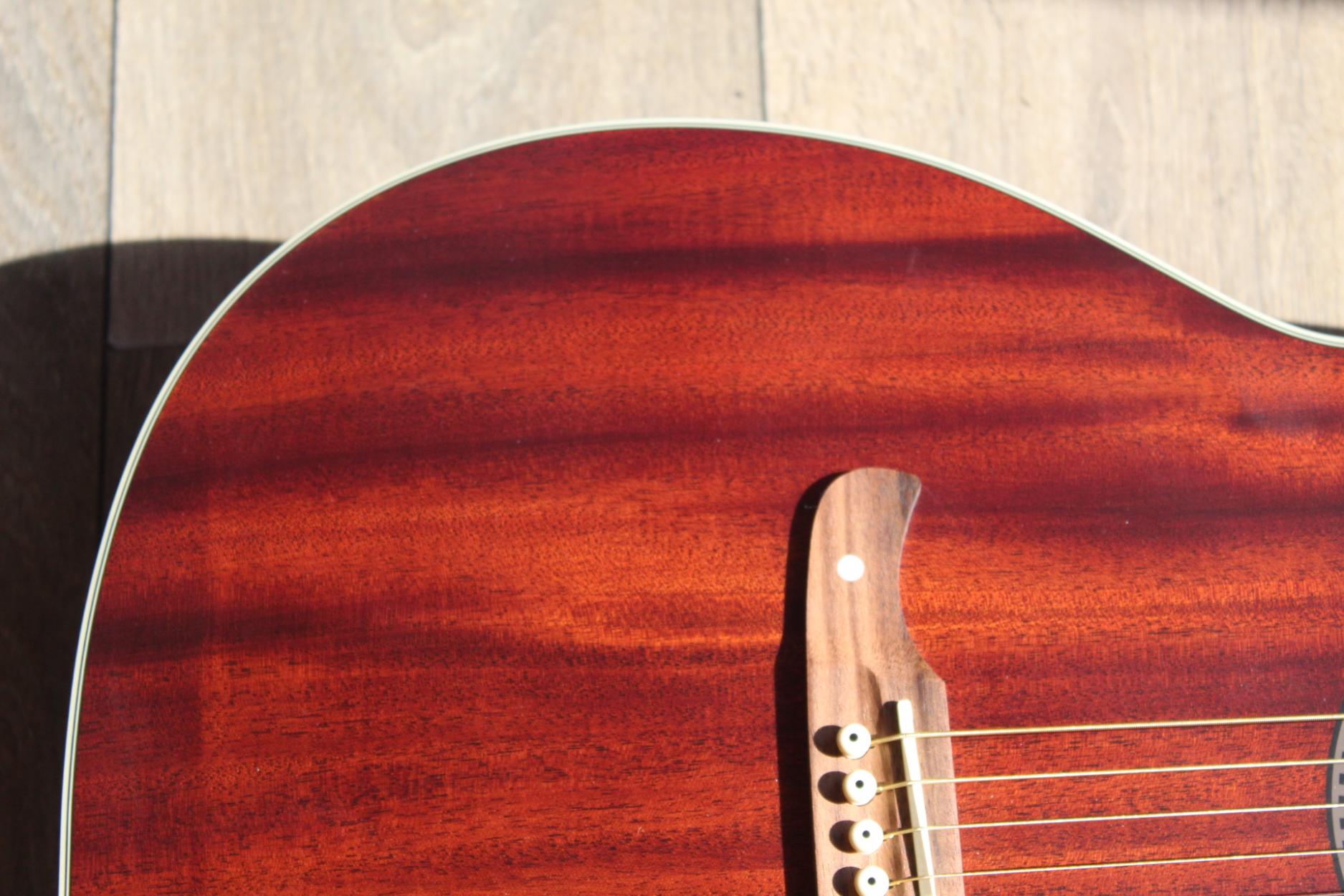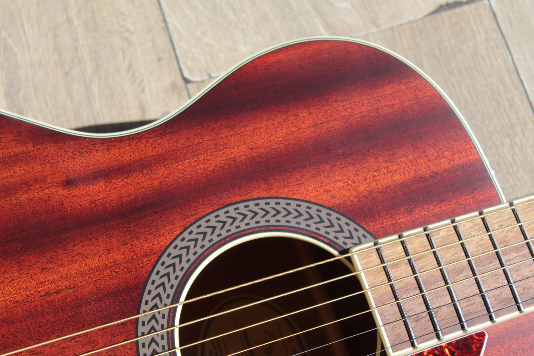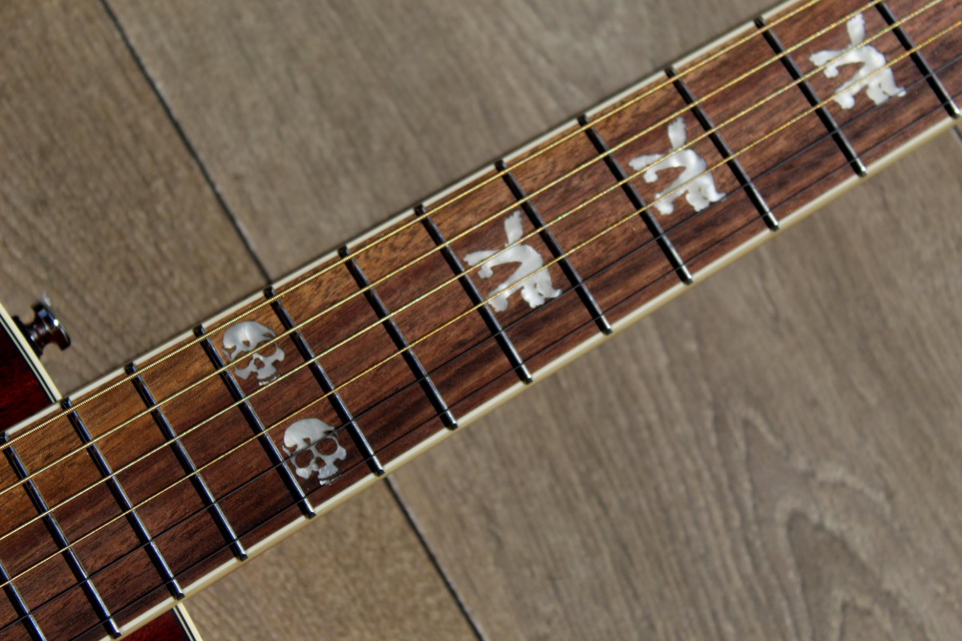 Summary Well known as the Grammy-winning founder of influential U.S. punk band Rancid, Tim Armstrong is also well respected as a producer and indie label owner. But as a songwriter, he has always turned to his old Fender concert-style acoustic for inspiration. The Tim Armstrong Hellcat is based on Armstrong's own classic instrument, with modern appointments including high-quality onboard electronics. A great guitar for pop, rock, folk and more, it has a solid mahogany top for especially sweet sound and a satin-finish maple neck for smooth playability. Features Tim Armstrong signature model, concert body style acoustic-electric Fishman® CD pickup system with active preamp, tuner, volume and tone controls Natural-finish solid mahogany top with scalloped "X" bracing, mahogany back and sides Maple neck with satin finish 20-fret walnut fingerboard with "Hellcat" and double-skull inlays Walnut bridge with compensated Graph Tech® Nubone™ saddle