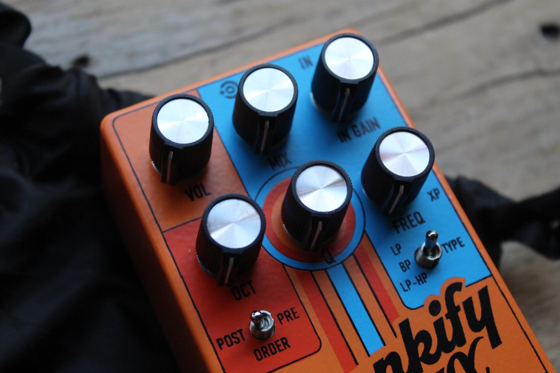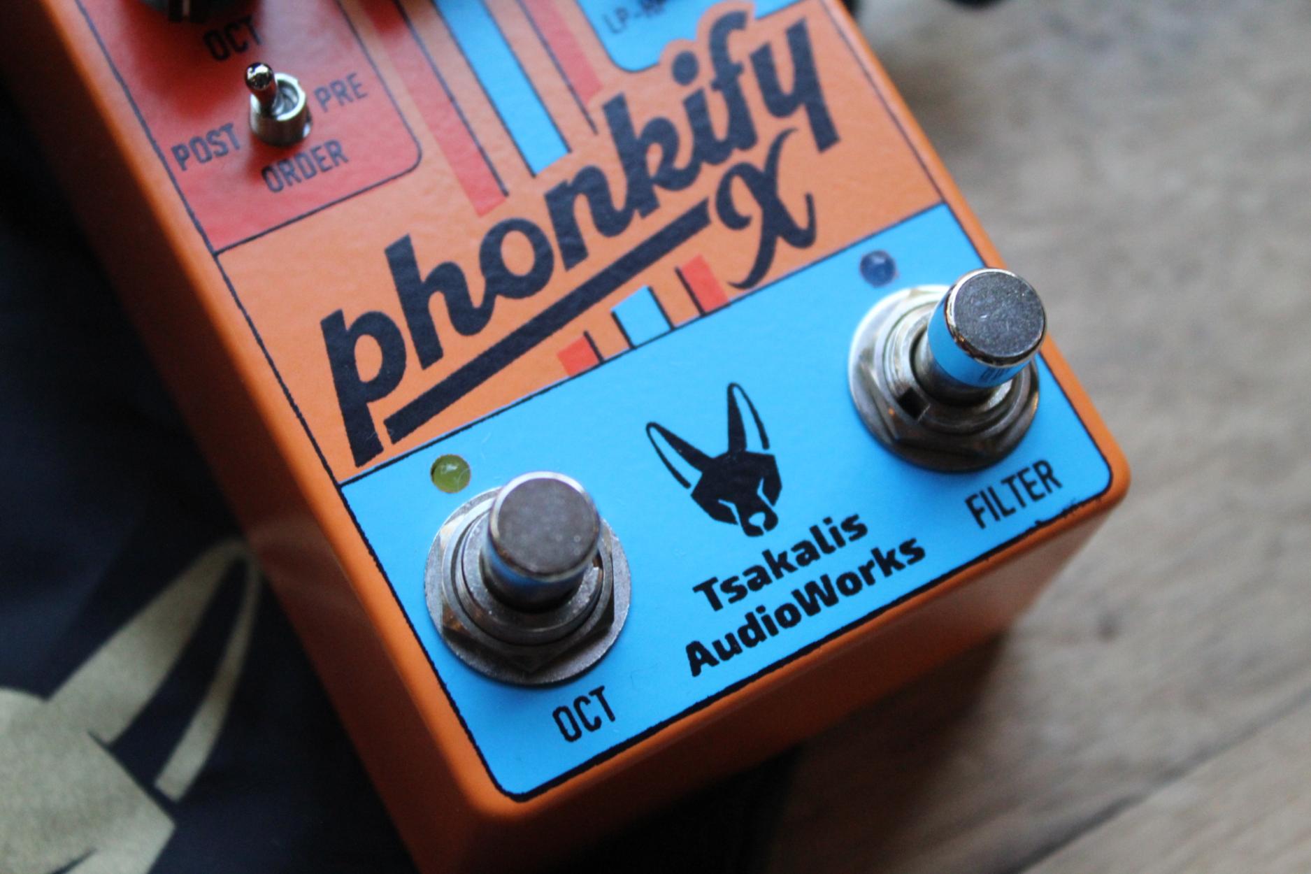 PHONKIFY X ENVELOPE FILTER – WAH – OCTAVES Expanding on the esteemed original Phonkify, the Phonkify X turns up the funk-o-meter with three selectable flavours of envelope filter and three types of octave voicings. This makes the pedal not only perfect for juicing up your jams and dripping your tone in cosmic gravy, but also delivers filters and octave tones that go way beyond and into the spaces between. Featuring flexible momentary or latching operation for each effect, plus a dedicated toggle switch for selecting the order of the filter and octave, the Phonkify X is ready to pour on the funk gravy and turn up the stank factor!Phonkify X’s Filter section warps and wiggles your tone into a kaleidoscope of grooves. Flip the dedicated toggle switch to find your filter flavour: Low Pass for warm, buttery tones, Band Pass for that snappy, in-your-face attitude or a cosmic combo of Low Pass-to-High Pass for sweeping, interstellar effects. Turn the Q control all the way off and get instantly three different types of wah wah effect, depending the position of the TYPE toggle switch. Got an expression pedal? Slide it in and ride the funk wave with hands-free control over your freaky frequencies.