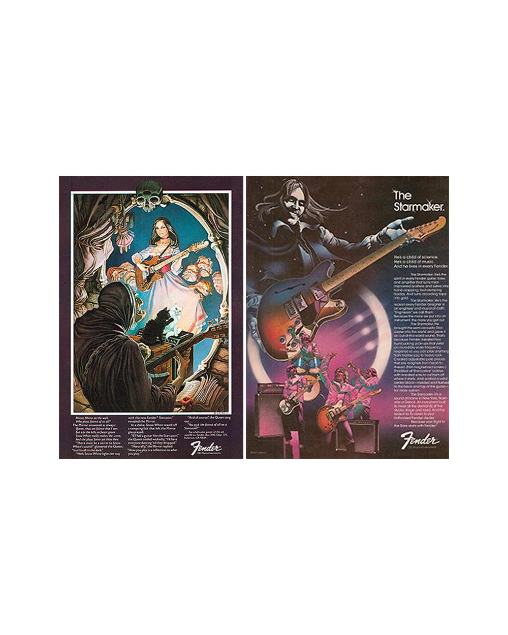 THE RUNDOWN Often considered one of the more esoteric novelties in the history of Fender guitars, the Starcaster—with its uniquely offset semi-hollow body and curvaceous, divisive headstock—arrived in 1976 as the company’s first new electric model in three years. It proved unpopular at the time and was discontinued by the fall of 1980, but over the years its unique shape, full-throated tone and rarity in the vintage market helped boost its popularity. In 2013, due to rising demand, Fender reintroduced the Starcaster and put into production the Starcaster bass—the only offset semi-hollow bass guitar in Fender history. Looking for a beginner guitar? Our interactive gear guide, FindYour.Fender.com, matches you with the perfect model by learning about your sound & style. You’ll be well on your way to finding the right guitar for you. THE GUITAR The original Starcaster models featured an arched, laminated maple top with dual f holes and a maple back and sides. It housed two Fender Wide Range humbucker pickups with chrome covers with a three-way toggle switch and five silver-skirted black control knobs: neck pickup volume, neck pickup tone, bridge pickup volume, bridge pickup tone, and master volume. The 2013 Special Edition release, pictured above, maintains many of the features of the original including maple construction, dual f holes and two Fender Wide Range humbucker pickups with chrome covers. The neck radius is slightly more compact at 9.5-inches rather than 10, but features the same 22 medium jumbo frets. Other changes include the removal of the master volume control and the addition of an Adjusto-Matic bridge with anchored tailpiece. Don’t miss out! Be the first to know about new products, featured content, exclusive offers and giveaways. Sign UpTHE PLAYERS Whereas you’d have been hard pressed to find Starcasters in many high-profile hands during its original 1970s era—Leo Nocentelli of the Meters is a notable exception—you needn’t look very hard today to see them put to prominent use by several noted guitarists both on stage and in the studio. Radiohead's Jonny Greenwood played his Starcaster on acclaimed albums OK Computer (1997), Kid A (2000) and Amnesiac (2001) and has used it extensively onstage for songs including “The Tourist,” “Street Spirit (Fade Out)", "Optimistic" and “Pyramid Song” (played using a cello bow). Other notable Starcaster fans include Killers guitarist Dave Keuning, Depeche Mode's Martin Gore, Morrissey guitarist Jesse Tobias, Jamie Cook of the Arctic Monkeys, Death Cab For Cutie’s Chris Walla, Mooney Suzuki guitarist/vocalist Sammy James Jr., and Our Lady Peace guitarist Steve Mazur. Learn How to Play Guitar Online Play in minutes with step-by-step online lessons. Sign UpTHE FULL STORY Introduced in 1976, the Starcaster—a rare, semi-hollow addition to the Fender line—failed to excite players at the time and was cut from the price list by the fall of 1980. And that’s too bad because by most accounts the problem wasn’t that the Starcaster wasn’t a good guitar. On the contrary, those who know the Starcaster generally regard it these days as an instrument that offered solid build, tone and feel. With hindsight, most seem to agree that the Starcaster never caught on for two reasons: unfortunate timing and misguided intent. The timing was unfortunate in the sense that the mid-to-late 1970s was a troubled period in Fender history. As the decade wore on the company found itself selling more instruments and amps than ever, but quality control problems under the cost-cutting rule of CBS, who purchased the company in 1965, were well evident by this time, and murmurings were beginning to circulate that if you wanted a good Fender guitar or amp, you needed an older one that pre-dated their purchase of the company. As for intent, there’s no doubt that the Starcaster was Fender’s best effort yet at going after a piece of the humbucking-equipped semi-hollow-body market long dominated by Gibson and its ES series. (Fender had tried “thinline” hollow-body guitars and basses before with its Coronado line during the 1960s, but these achieved little success and were discontinued by 1972.) Which brings us to the Starcaster. In the early 1970s, CBS wanted to use up old Coronado stock and enlisted Fender designer Gene Fields to do so. Fields joined Fender R&D in 1961 and had worked on instruments including the PS-210 keyless pedal steel, Mustang Bass, Musicmaster Bass, Bronco guitar and the aborted '60s version of the Marauder guitar. Fields got to work, but as noted in author Tony Bacon’s 50 Years of Fender, “early prototypes were too obviously outings for scrap components.” Noting this, CBS had Fields design an entirely new instrument, and what he came up with was a hollow-body electric that fit somehow also fit Fender's historic aesthetic. Unusual for a semi-hollow guitar, the Starcaster had an offset waist — a classic Fender design element made famous by earlier solid-body models, most notably the Jazzmaster guitar (1958) and Jazz Bass (1960). This offset double-cutaway body featured front and back binding and a solid maple center block that provided sturdiness and sustain not found in the Coronado models a generation earlier. The Starcaster had an arched laminated maple top with dual f holes and a maple back and sides. It came in several “thick-skin” high-gloss finishes including Blonde, White, Black, Natural, Walnut, Antigua, Wine, and Tobacco Sunburst. The Starcaster’s bolt-on neck was another Fender hallmark. It was made of hard-rock maple with a "bullet" truss rod adjustment and Micro-Tilt neck adjustment. It also featured an unusual six-on-a-side headstock design with a dark-painted fin-like curve opposite the tuners and below the logo—Fields originally came up with this headstock design for the ill-fated 1966 Marauder. Its 10-inch radius maple fingerboard had 22 nickel-silver medium jumbo frets and black-dot