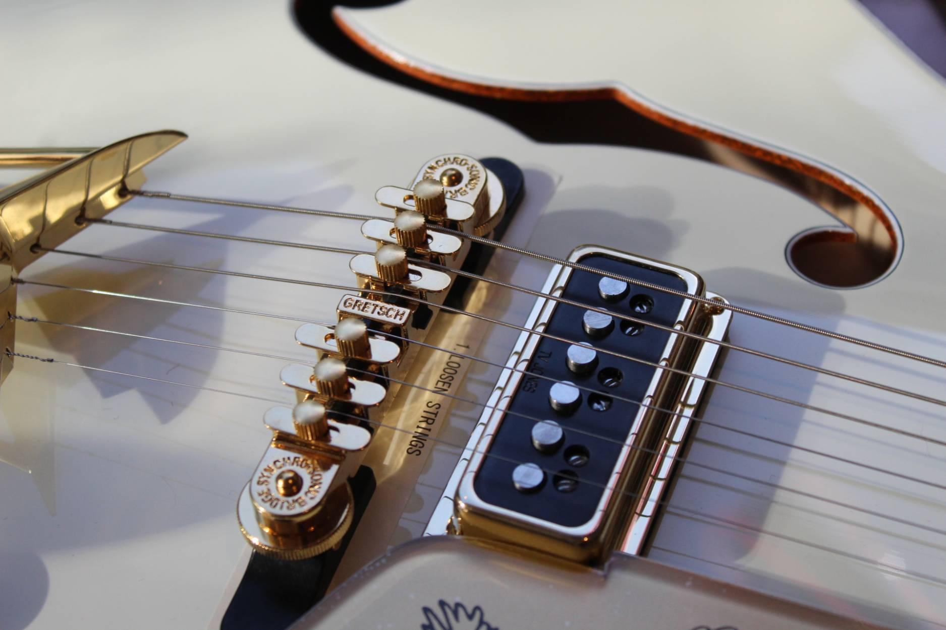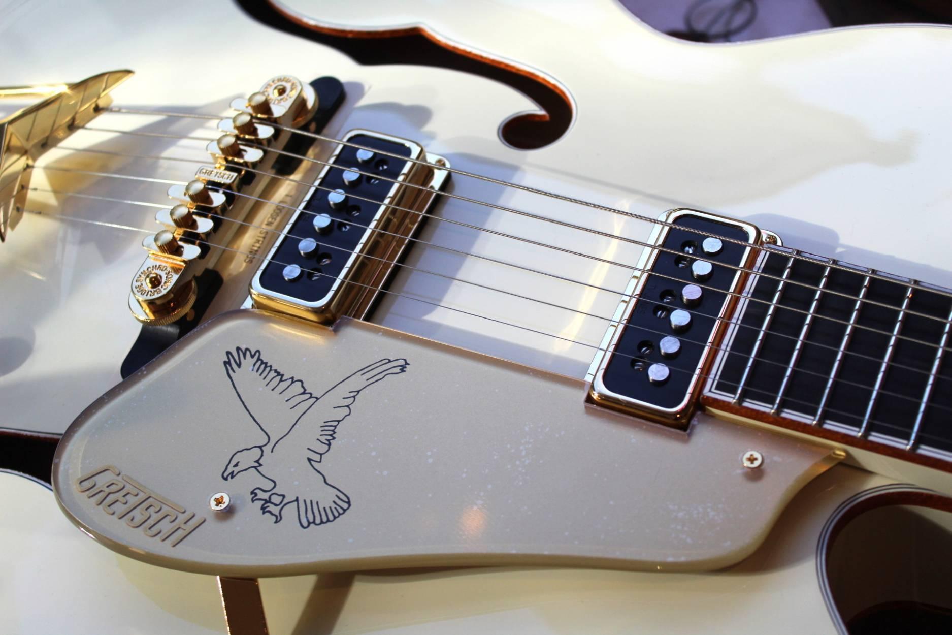 3, 30 KIlograms Experience the Falcon as it was envisioned by the great Jimmie Webster in 1955. The G6136-55 Vintage Select Edition '55 Falcon™ Hollow Body with Cadillac Tailpiece is a true “Dream Guitar” that will be the hallmark of any guitar collection. Fluid playability, robustly flexible tone and, of course, stunning Falcon style combine for a big, bold instrument that pops in the spotlight. A pair of TV Jones® T-Armond single-coil pickups and the new Gretsch “Squeezebox” paper-in-oil capacitors power this sonic raptor for crystal-clear transparent tone that lets the soul of the guitar’s definitive hollowbody tone shine through. The Synchro-Sonic™ bridge not only lends original-era authenticity, it offers pinpoint intonation accuracy, locking into place with a thumbscrew for tool-free adjustment. Parallel tone bars reinforce the solid spruce top mated to laminated maple back and sides for powerful, balanced sound and increased projection from the 2.75”-deep body. The 12”-radius ebony fingerboard with 22 medium jumbo frets and elegant mother-of-pearl Hump Block and feather inlays tops a maple neck with a comfortably familiar standard “U”-shaped profile for supple playability, making complex chords and intricate single-note playing effortless. The White Falcon drips with sophisticated class, sporting shining gold hardware—including the iconic Cadillac “G” tailpiece and gold jeweled arrow knobs—gold sparkle bound neck, body and F-holes, gleaming vintage white gloss nitrocellulose lacquer finish and gold, vintage thick plexi pickguard with Gretsch logo. The iconic G6136-55 Vintage Select Edition '55 Falcon™ Hollow Body with Cadillac Tailpiece is the quintessential “Holy Grail” guitar. Includes a deluxe hardshell case.