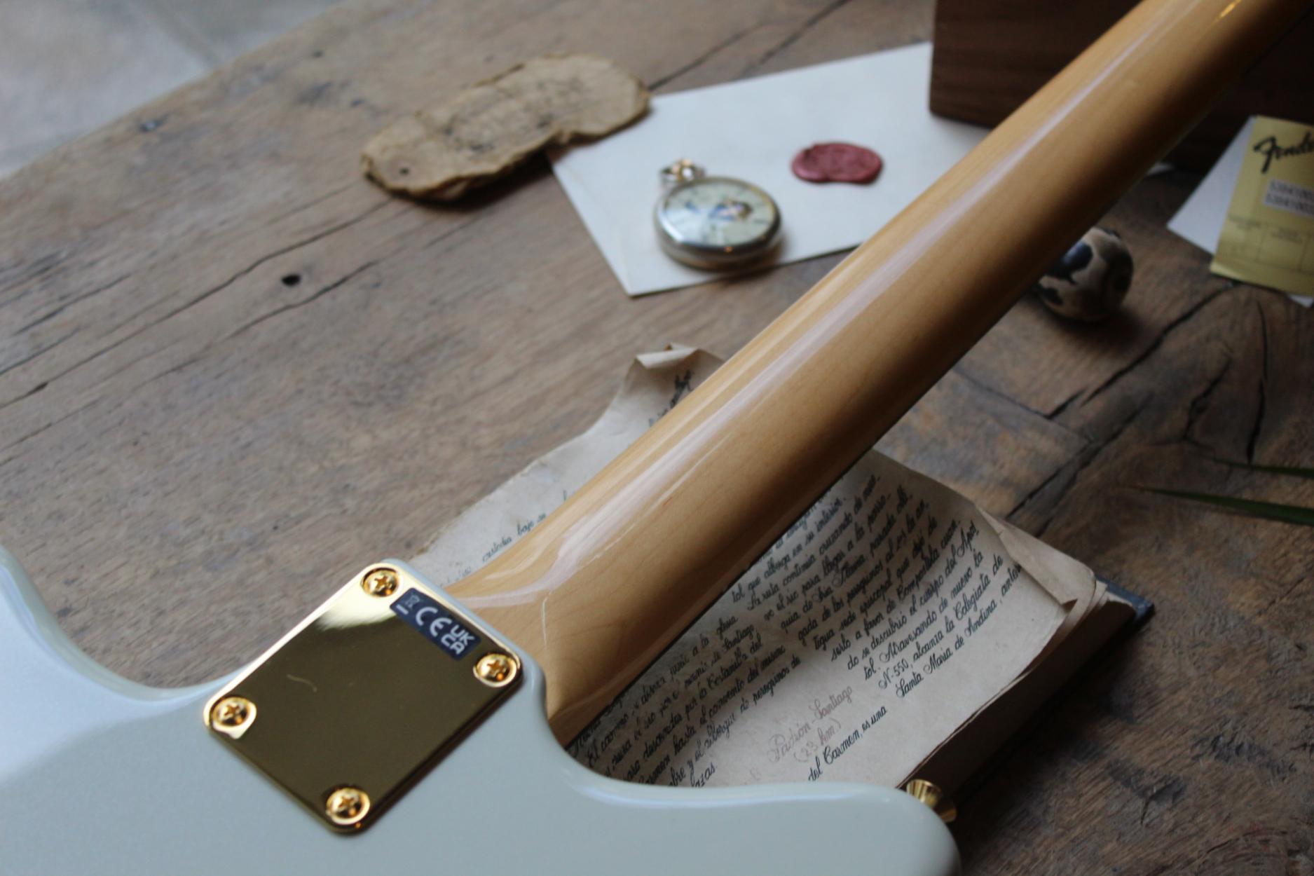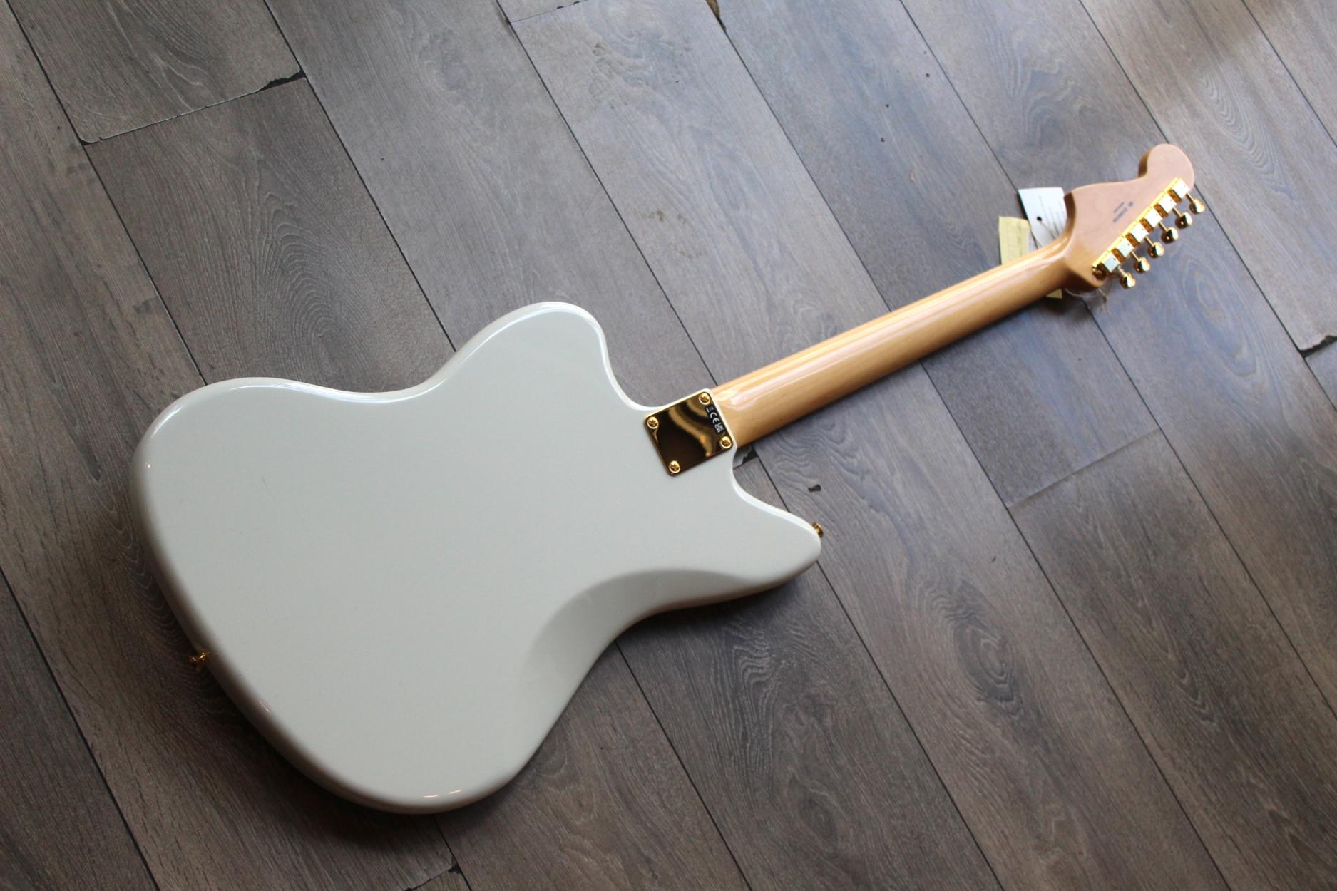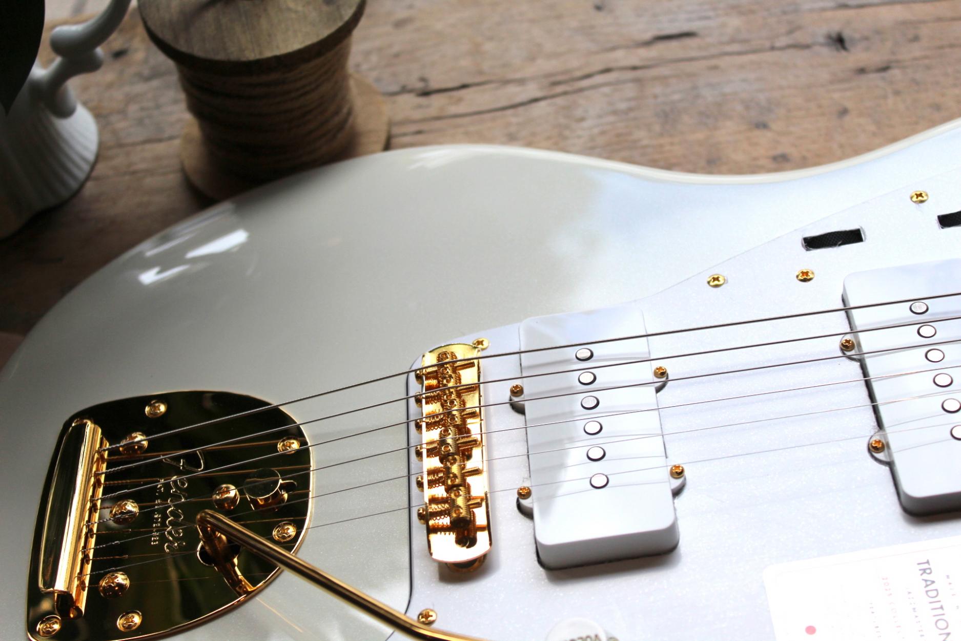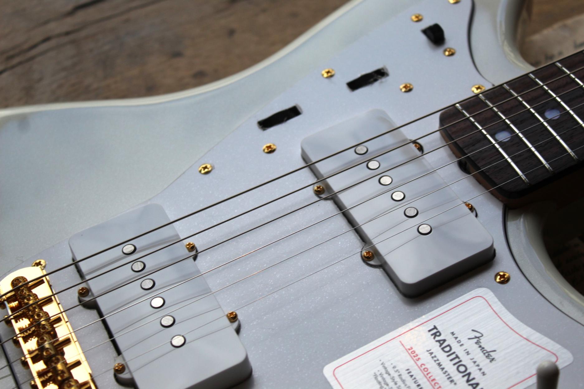 Made in Japan Traditional 2025 Collection, 60s Jazzmaster®, Rosewood Fingerboard, White PearlModel #:5384100323 3, 41 KG GeneralSeriesMade in Japan Traditional 2025 CollectionOrientationRight-HandColorWhite PearlCountry Of OriginJPNeckNeck MaterialMapleNeck FinishGloss UrethaneNeck Shape"U" ShapeFingerboard Radius9.5" (241 mm)Fingerboard MaterialRosewoodPosition InlaysPearl DotNumber of Frets21String NutBoneNut Width1.615" (41.02 mm)Nut MaterialBoneBodyBodyBasswoodBody FinishGloss PolyesterBody ShapeJazzmaster®Body MaterialBasswoodHardwareBridge6-Saddle Vintage-Style Adjustable with “Floating” Tremolo TailpiecePickguard3-Ply WhiteControl KnobsWhiteSwitch TipAged WhiteHardware FinishGoldTuning MachinesVintage-StyleStringsNickel Plated Steel (.009-.042 Gauges)Neck Plate4-BoltElectronicsNeck PickupVintage-Style Single-Coil Jazzmaster®Pickup ConfigurationSSControlsLead Circuit Controls (Slide Switch Down): Volume (Neck), Volume (Bridge), Master Tone; Rhythm Circuit Controls (Slide Switch Up): Two Thumbwheel Controls for Neck Pickup Volume and ToneSwitching3-Position Toggle: Position 1. Bridge Pickup, Position 2. Bridge and Neck Pickups, Position 3. Neck Pickup