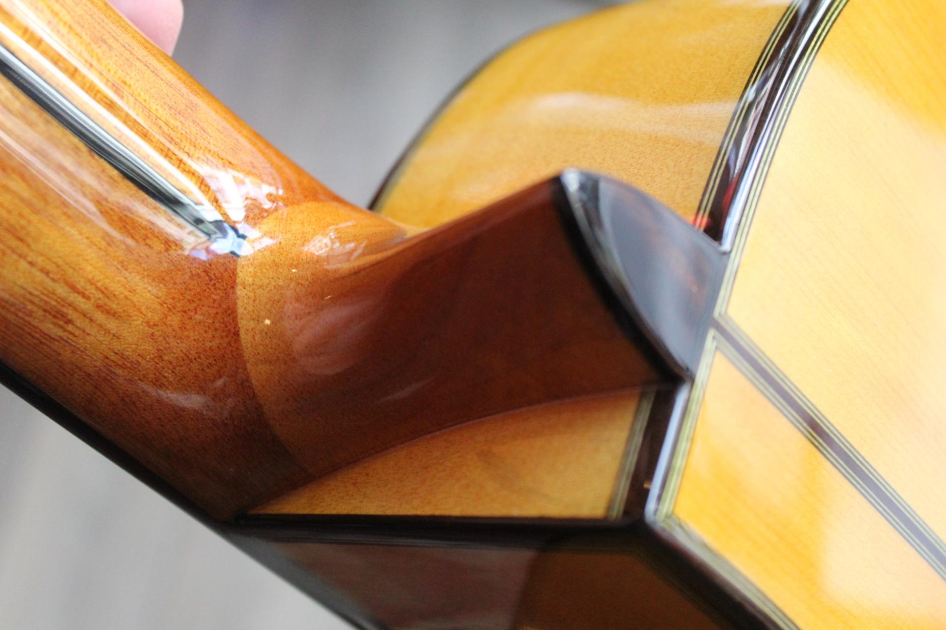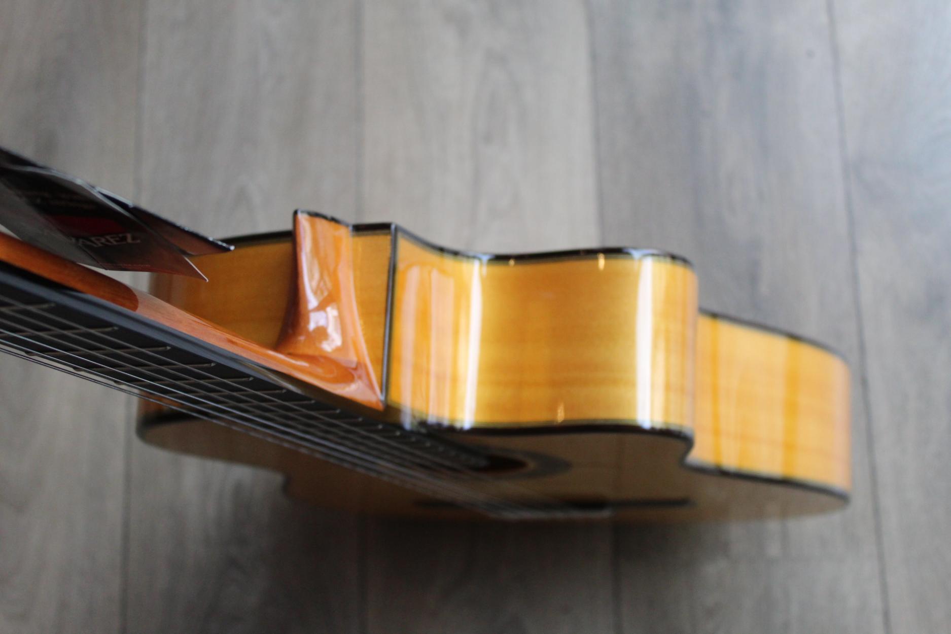 Admira Bulería ECF The Admira Bulería ECF is an electrified flamenco guitar with a cutaway. It stands out for its sound, finish, and playability, making it recommended for both advanced students and professional guitarists looking for a reliable and versatile live instrument. Features: Solid spruce top Cypress back and sides Cedar neck with ebony reinforcement and adjustable truss rod Ebony fingerboard with 20 frets Bone nut Rosewood bridge Der-Jung tuners Pickguard Fishman preamp