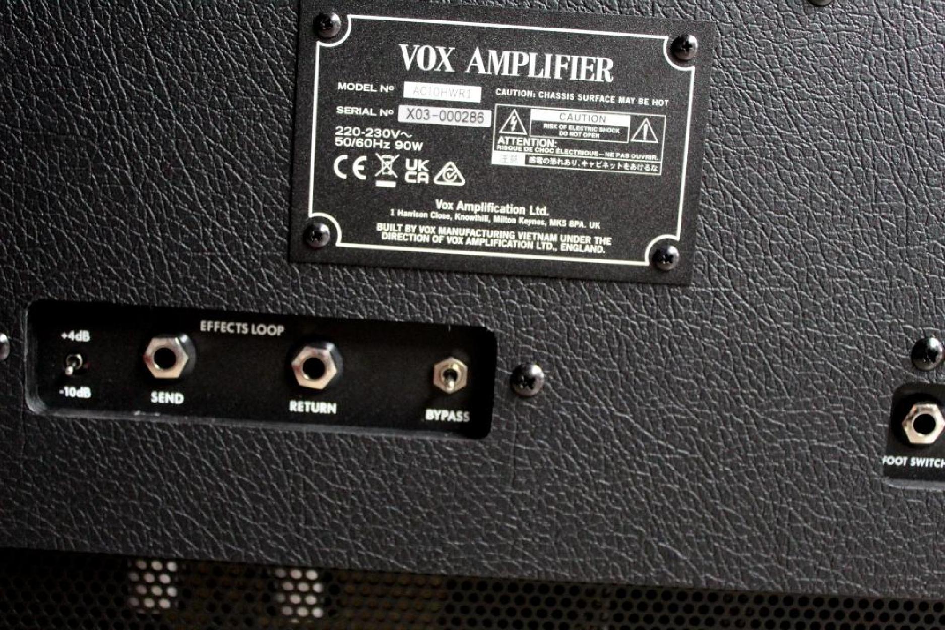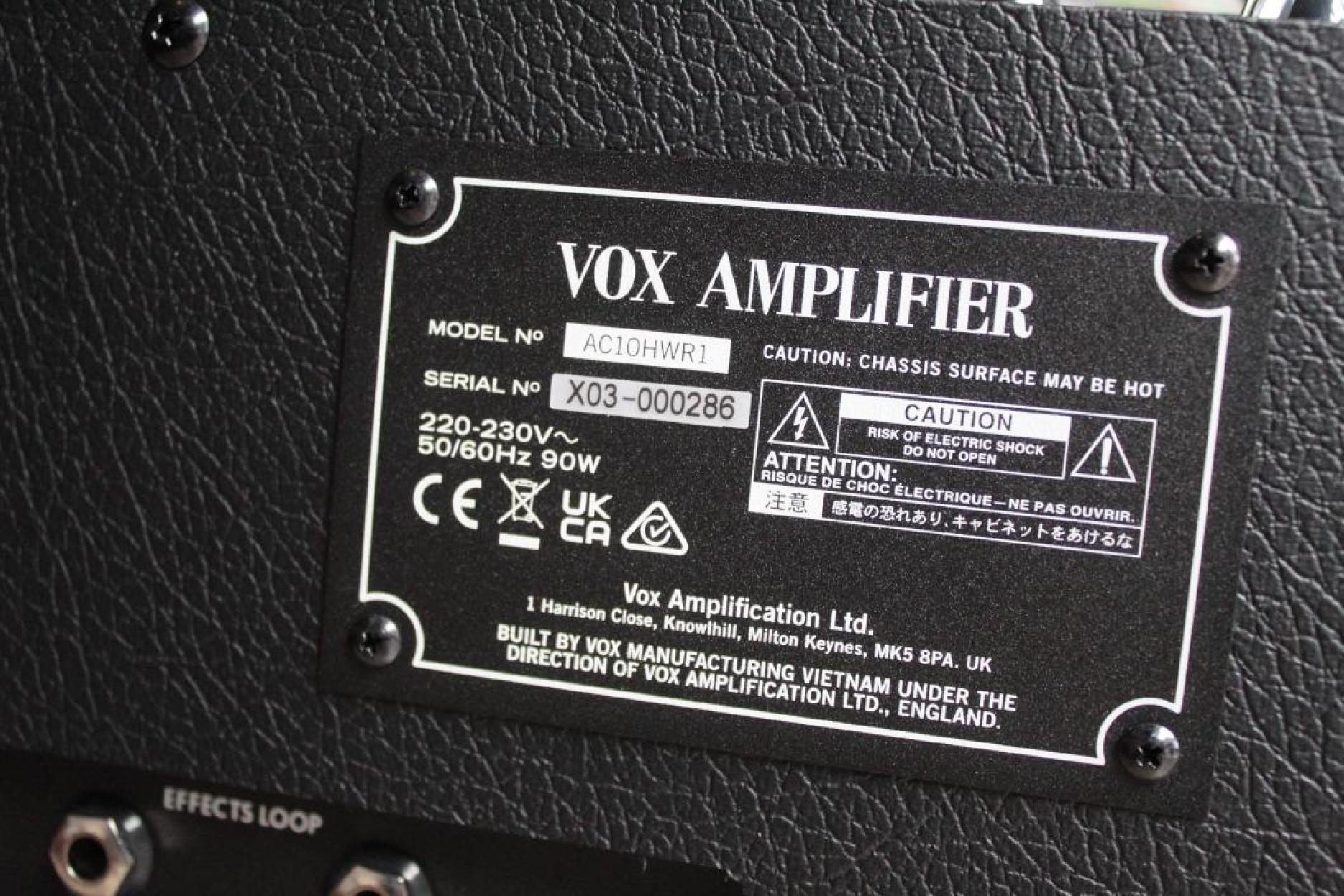AC-10 HAND-WIRED GUITAR AMPLIFIER In the search for the essence of the classic vintage AC30 amp sound, we conducted a detailed analysis and study on mint condition AC15 and AC30s from the 1960s to truly uncover and understand the inner workings of these legendary amplifiers. The culmination of these efforts has resulted in the emergence of the new VOX AC Hand-Wired Range of amplifiers: the greatest VOX amps we have ever produced. The rarity of vintage amplifiers contributes significantly to their high value, but equally impactful is the distinctive sound inherent in vintage amps. Despite the AC30 being manufactured with nearly identical circuitry since the 1960s, the character of vintage units is often described as being almost beyond description, possessing a rich and musical quality that i s equally unmistakable and mysterious. We aimed to unravel the secrets of this sound, bringing the vintage magic to the musicians of today. The AC-HWR series reproduces the vintage VOX tone through meticulous research. A diverse lineup caters to the individual preferences and needs of discerning guitarists. The series includes the AC10HWR1 compact combo amp, designed for lower output use. 1. Searching for the classic VOX Vintage Sound 1.1 Revision of the Power Supply Circuit Contemporary power supplies aim for stability by minimizing voltage fluctuations, resulting in a reliable power source. In contrast, vintage amplifier power supplies exhibit fluctuations that respond to the large movement of speakers, giving the distinctive “compression” and “sag” sensations associated with vintage amps. In our research, we measured the power supply circuit of many vintage AC30s and used these to help design an entirely new power supply to replicate these vintage tone and performance characteristics. However, merely mimicking the vintage characteristics can lead to the generation of undesirable tones, particularly”ghost notes”–extraneous pitches unrelated to the actual played notes especially at high volumes. Faced with the dilemma of prioritizing sound quality or addressing ghost notes, the previous AC30CC2 model incorporated a switch to toggle the power supply’s smoothing circuit. With the newly designed power supply circuit, the new VOX Hand-wired amplifiers address ghost notes without compromising sound quality and responsiveness, navigating the delicate balance between the two considerations in a truly musical way. 1.2 Output Transformer The output transformer contributes significantly to the classic vintage VOX sound. Even if the specifications are the same, saturation distortion in the transformer section can add to the pleasant harmonic components of vintage amplifiers. However, as this distortion cannot be precisely measured by the specifications of the transformer, we embarked on a program of extensive prototyping to develop custom transformers with the essential vintage sound characteristics required 1.3 Cabinet We carefully examined the thickness of the materials used, as the vintage AC30 employed slightly thinner cabinet materials, contributing to a rich and expansive midrange. Our new cabinet design employs the same thickness of material as the vintage amp, helping to deliver a faithful sound reproduction. 2.Practical Features While it was important to get as close as possible to the specifications and sound of the 1960s models, our approach was to maintain simplicity while incorporating practical features for contemporary guitarists. 2.1 Spring Reverb In contemplating what could enhance the immersive quality of a guitar amp, a very high-quality spring reverb unit was considered a “must-have” to achieve that magic vintage sound. 2.2 FX Loop Modern guitarists love to combine various effects to create their individual sound. However, issues can arise when combining distorted amps with spatial, modulation, and pitch-shift effects. Distorting these effects can muddy the sound. To address this, an FX loop was integrated, allowing for a clean output of effects. SpecificationsProduct DownloadsClick hereVacuum Tube Configuration ECC83/12AX7 x 2、EL84 x 2 Speaker Configuration 12” 116Ω Celestion G12M Greenback x 1 Dimensions (W x D x H) 20.87 x 9.57 x 18.66 in Weight 33.16 lbs