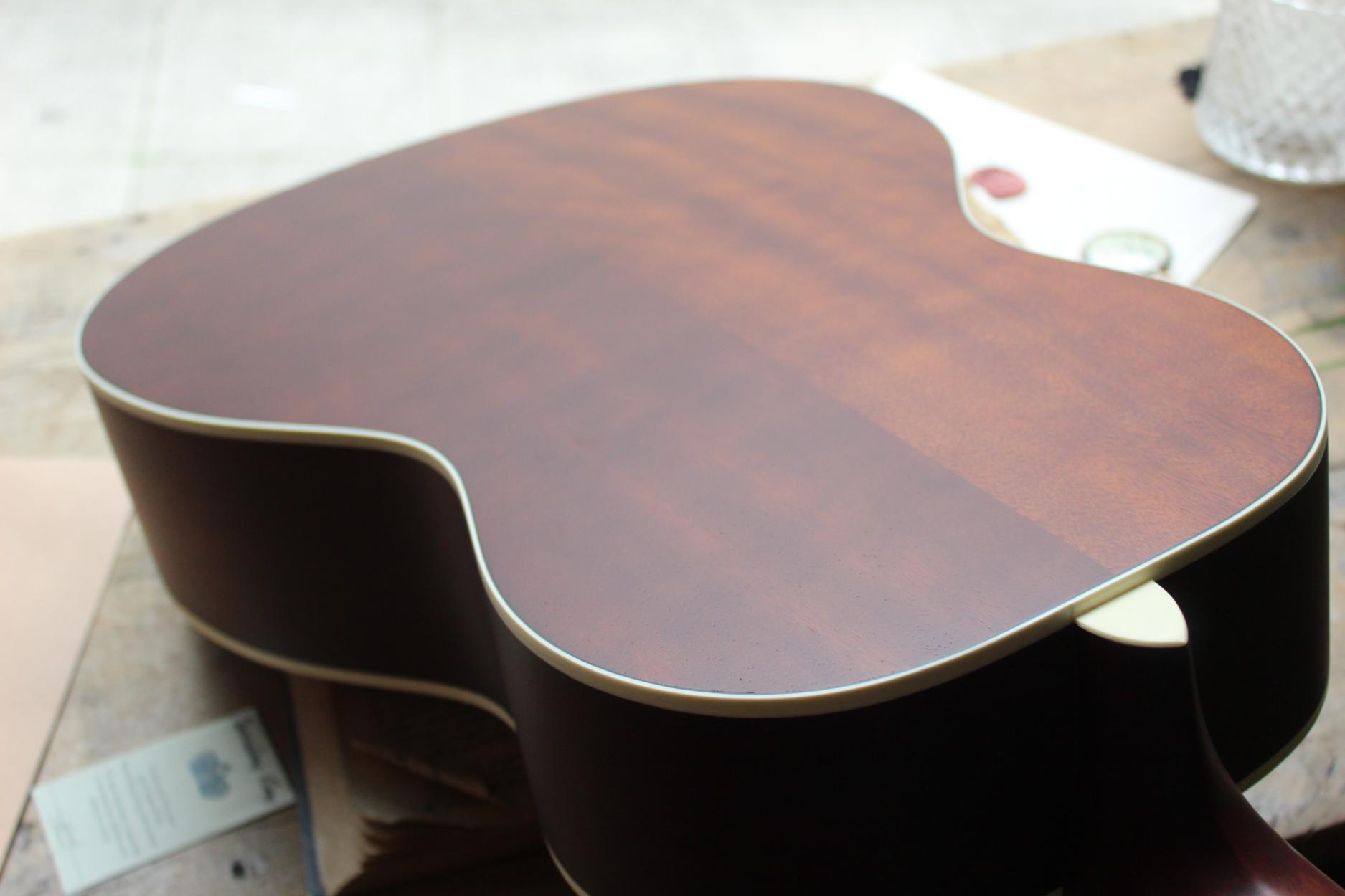 Body Shape:Single OTop Material:Solid Sitka SpruceBack Material:Solid African MahoganySide Material:Solid African MahoganyTop Bracing Pattern:Scalloped XTop Braces:Sitka SpruceNeck Material:MahoganyNeck Profile:C ShapeNeck Joint:DovetailFretboard Material:PadaukScale Length:25.4"# Of Frets Clear:12# Of Frets Total:20Nut Material:BoneNut Width:1-11/16"Headstock Overlay:BlackHeadstock Inlay:NoneTuning Machines:Open Gear, Ivoroid ButtonBody Binding:IvoroidRosette:Small RingTop Purfling:NoneFretboard Inlays:Ivoroid DotsFretboard Binding:NoneBridge Material:PadaukBridge Shape:Belly BridgeSaddle:BoneBridge Pins & Endpin:Ivoroid PlasticPickguard:NoneFinish:Ultra Thin Zero-VOC Satin FinishElectronics:Fishman Presys VTColor Options:Transparent Brownburst