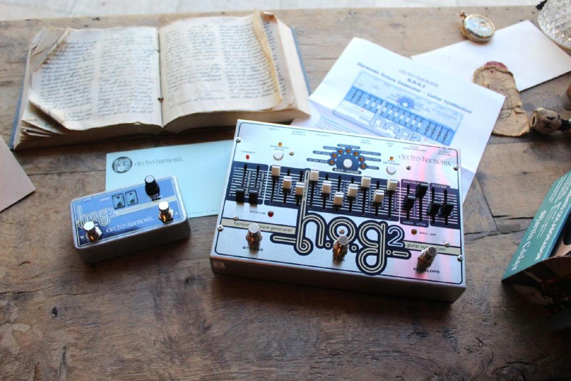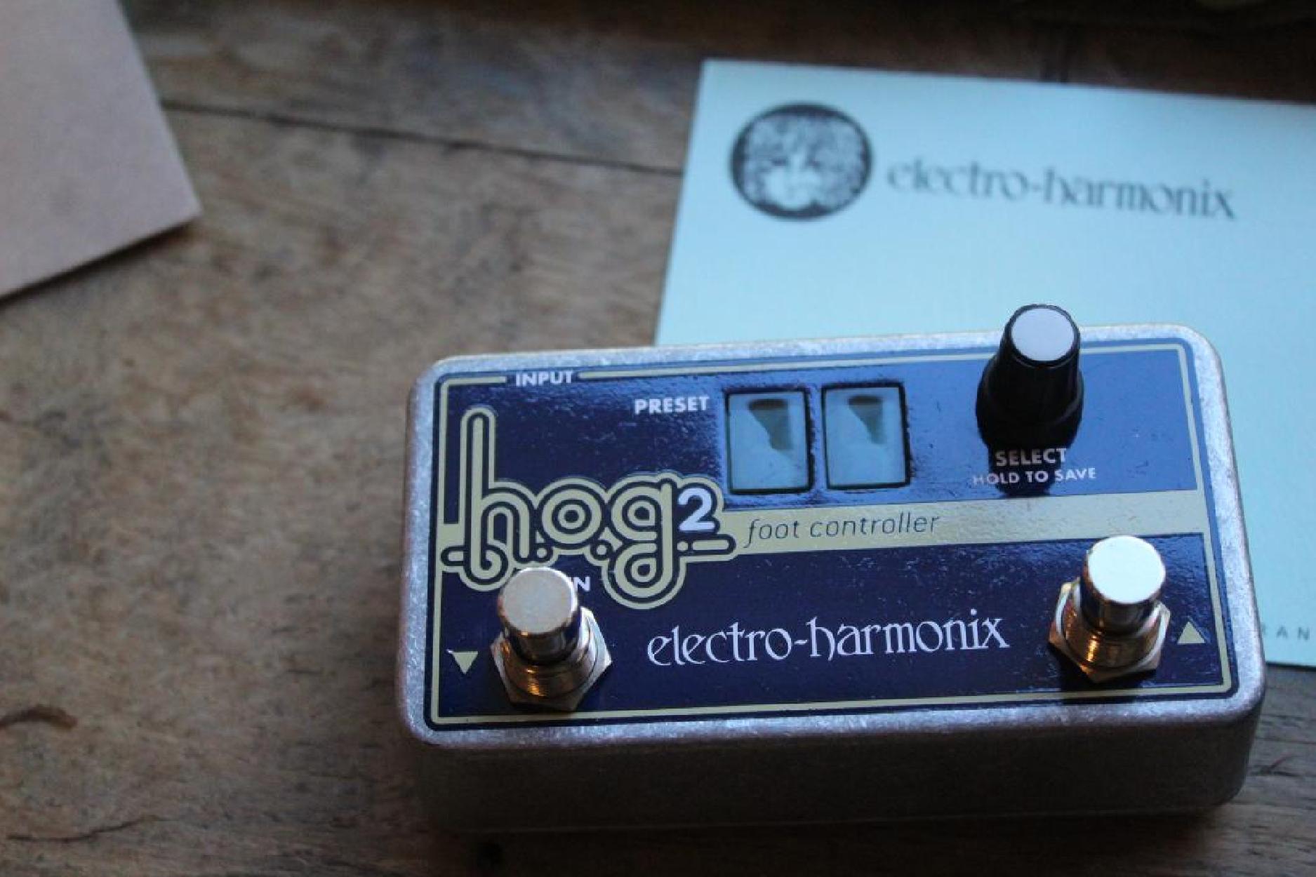 DISCONTINUED 2024 The EHX HOG2 is an Octave and Harmonic Generator/Guitar Synthesizer that can simultaneously generate multiple octaves and harmonics from your input signal. Whether you play single notes, arpeggios or full chords, the HOG2 will track every note you play. Built-in to the HOG2 are 7 Expression Modes that enable you to modify your sounds using a standard Expression Pedal, a MIDI Controller, or the Expression Button on the HOG2 itself. Further sound sculpting is achieved through an Amplitude Envelope Generator and a 2nd-Order Low Pass Resonant Filter. Sophisticated new algorithms improve the quality of the ten generated octaves and harmonics as well as the Freeze function Full MIDI control over all parameters and presets A Master Volume for added control and convenience. Volume levels are saved as part of a preset 10 Controllable harmonic intervals and 7 Expression modes Freeze modes holds a note or chord so you can play over it or slide to new notes like a keyboardist playing portamento Amplitude envelope controls your attack or decay speeds Dedicated resonant filtering with sweepable frequency control Separate lower and upper harmonic amplitude envelopes Save and recall up to 100 preset programs with the optional Foot Controller (sold separately) External expression pedal included Power adapter included