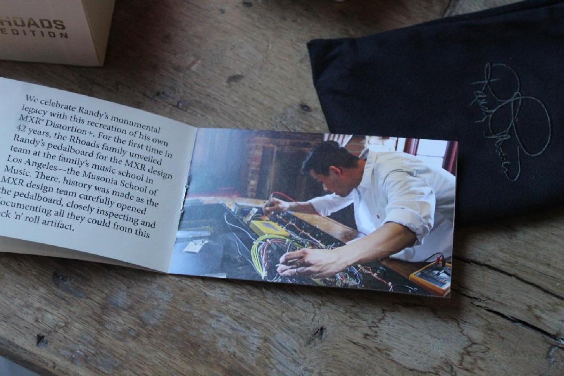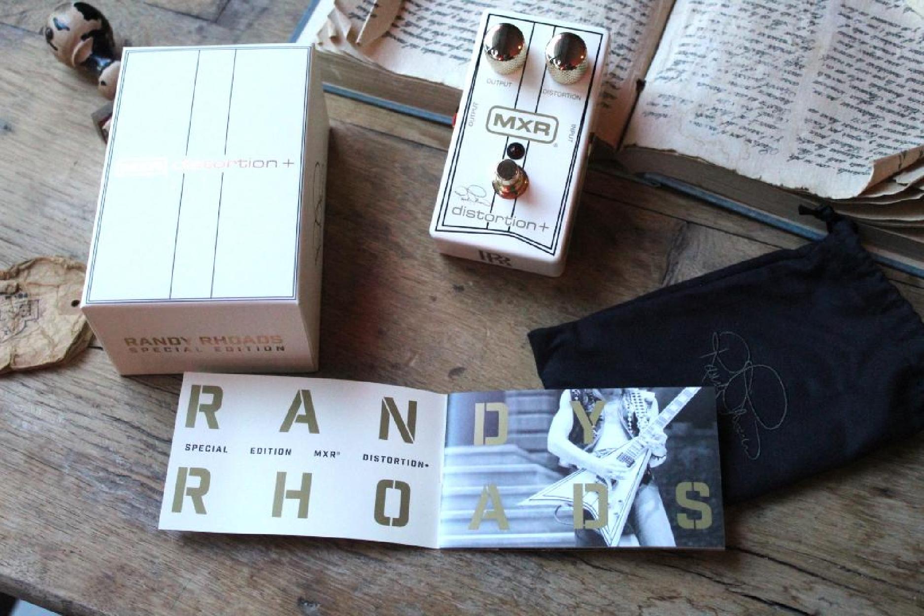 The Long Story In just a few short years, Randy Rhoads revolutionized the art of the rock 'n' roll guitar player, merging fluid, classically inspired legato passages and melodies with searing, violin-like leads and super-saturated riffs. One of the most crucial components of this riveting sound was the MXR Distortion+—Randy harnessed its raw energy to slam his high-gain amplifier with a torrent of harmonics to create the sonic signature that would etch an indelible mark on music history. We celebrate his monumental legacy with this recreation of his own MXR Distortion+. For the first time in 42 years, the Rhoads family unveiled Randy’s pedalboard for the MXR design team at the family’s music school in Los Angeles—the Musonia School of Music. There, history was made as the MXR design team carefully opened the pedalboard, closely inspecting and documenting all they could from this rock ’n’ roll artifact. The engineers painstakingly spec'd Randy’s vintage Distortion+, with the direct involvement of sister Kathy Rhoads, and created this signature model to produce the same overdriven tones heard on Randy’s most beloved hits. Inspired by a supersonic airliner he flew on while on tour with Ozzy Osbourne, Randy designed a Flying V-style guitar with a white finish and a pinstripe accent. That iconic instrument is the inspiration for this special edition of the MXR Randy Rhoads Distortion+. Includes an exclusive collector's booklet. “We are very proud of and honored by this special signature pedal. It is a true tribute to Randy’s musical legacy.” —The Rhoads Family
