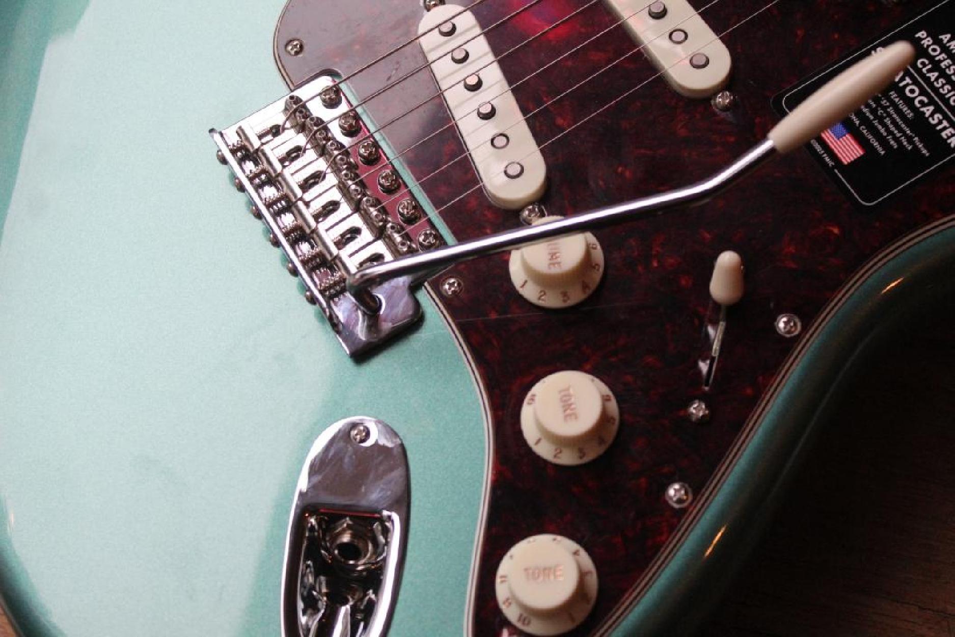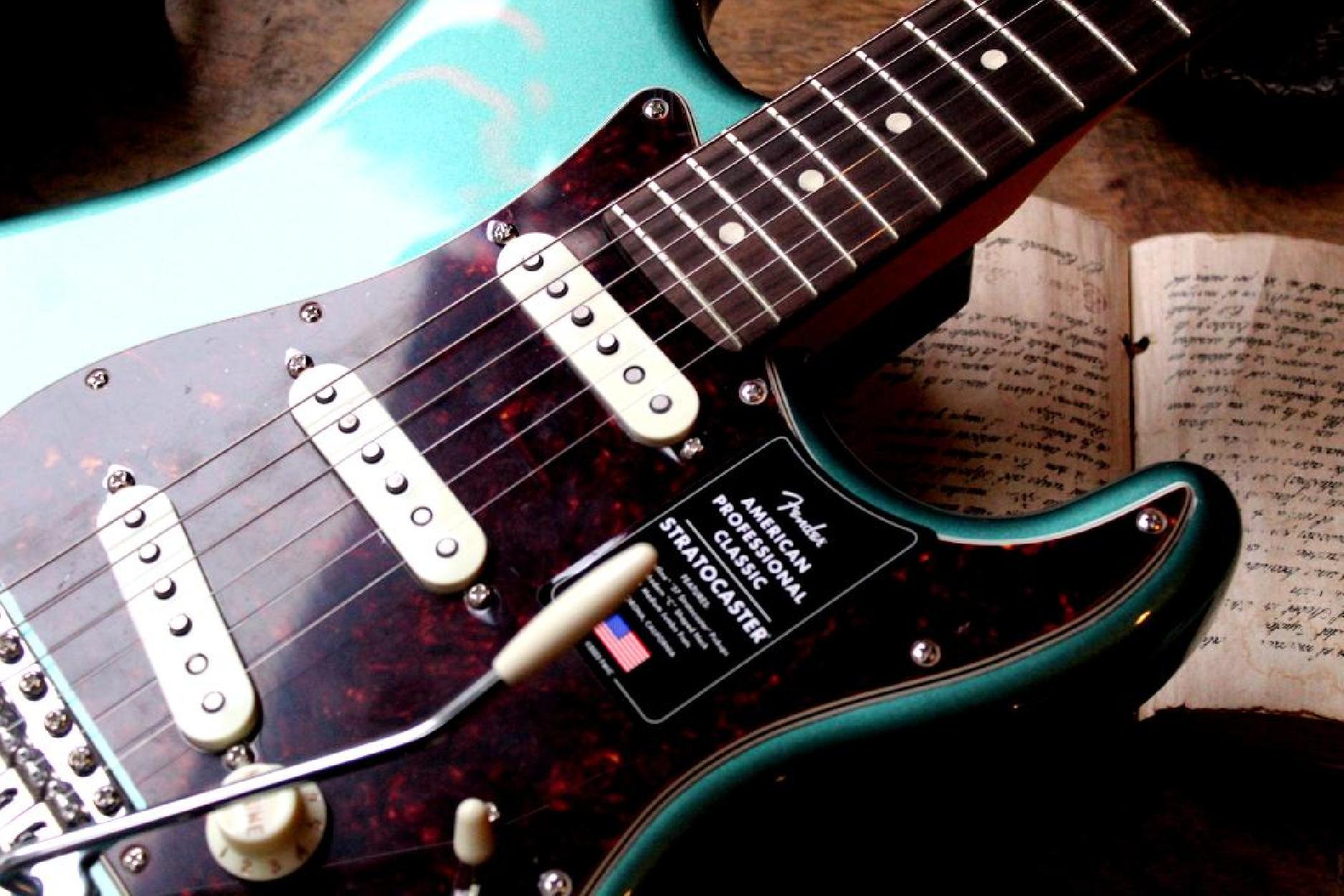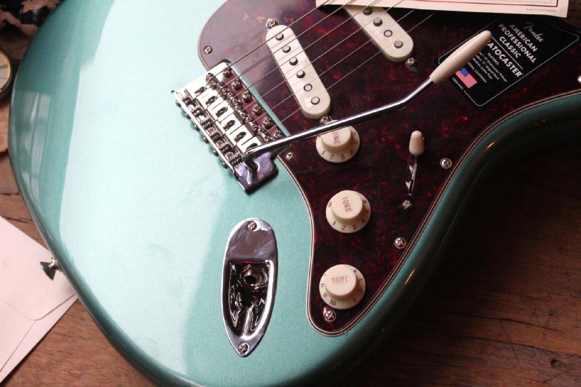 3, 50 KG The perfect blend of vintage charm and modern performance – the American Professional Classic Stratocaster®. Under the hood, vintage-inspired Coastline™ '57 Stratocaster® pickups deliver depth, punch and sparkle while the sleek Modern "C" neck provides exceptional comfort and playability. Fender Staggered ClassicGear™ tuners provide classic looks and precise tuning stability. Boasting custom-faded vintage and signature Fender® finishes, this professional-grade instrument looks as good as it sounds. From studio to stage, The American Professional Classic Stratocaster® – All the soul of a golden-era Fender®, evolved for today's player. Features Alder Body Coastline™ '57 Stratocaster® pickups Modern "C"-shaped neck with 9.5"-radius fingerboard and Medium Jumbo frets Vintage-style hardware and Staggered ClassicGear™ Tuners Greasebucket™ Tone System Included gigbag