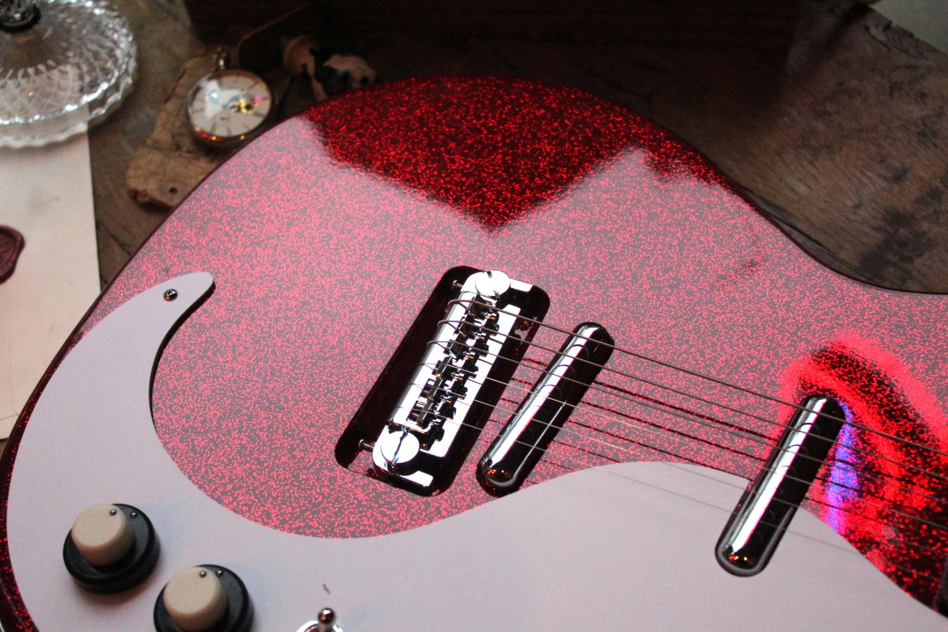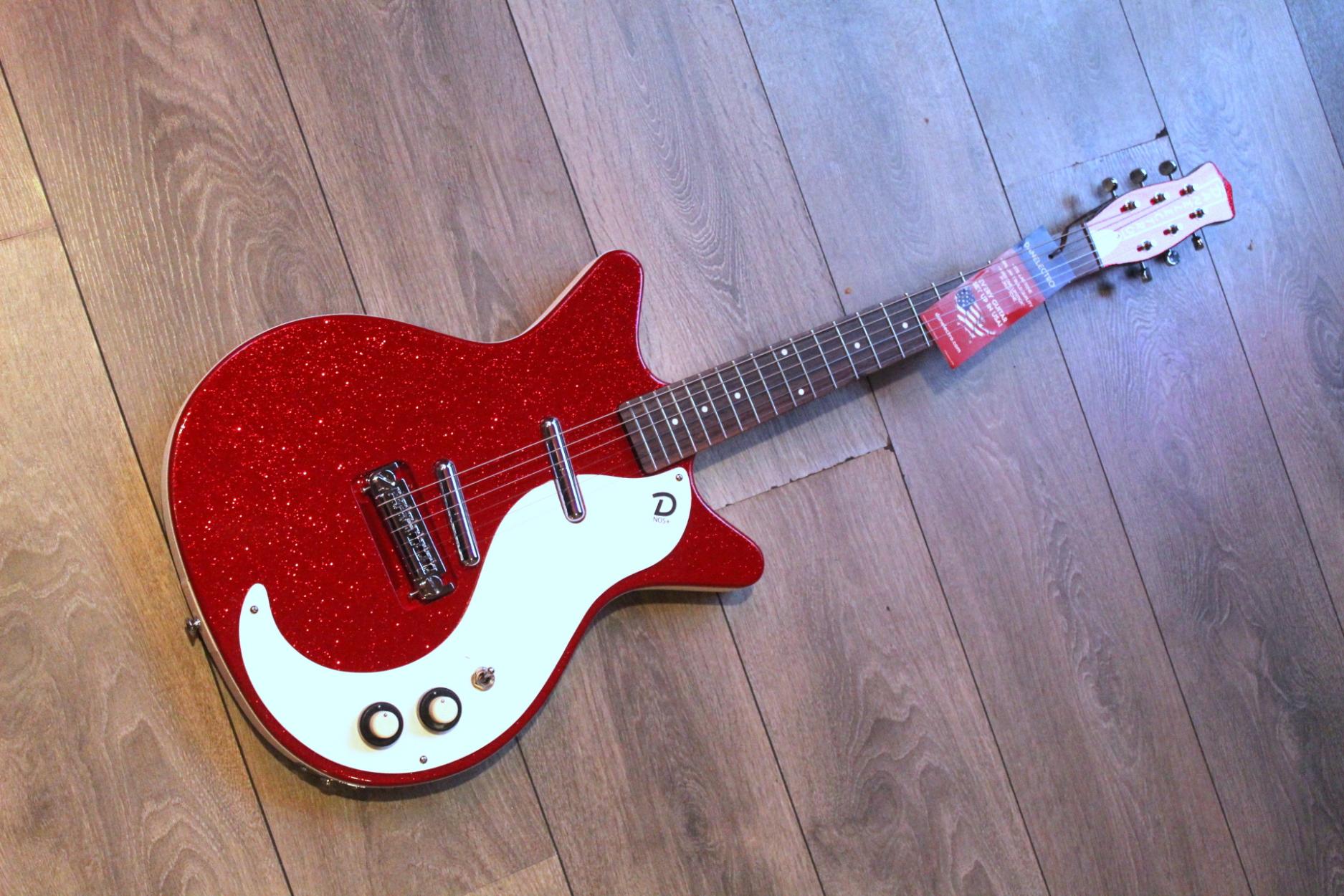 ’59M™ NOS+ Metalflake™ Danelectro®’s classic flagship model, spiffed up for its 60th anniversary. NOS+ pickups, adjustable die cast bridge, stacked tone and volume controls. ’59M™ NOS+ Metalflake™ Shorthorn shape Scale length: 25″ Number of frets: 21 Fully adjustable wraparound bridge 2 NOS+ lipstick® pickups 2 stacked tone & volume controls 3 way pickup selector