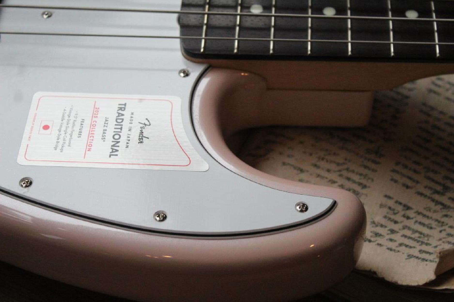 The Made in Japan Traditional 2025 Collection '60s Jazz Bass® is a special model based on the Made in Japan Traditional Jazz Bass® with a look exclusive to 2025. The "Black Pearl" and "White Pearl" models have a special pearl coating on the body and headstock that is exclusive to these products, and combined with the gold-colored hardware, you can get an even more elegant and refined sense of luxury. The "Competition Black / 3-Color Sunburst" and "Competition 3-Color Sunburst / Aged Natural" are not products with the traditional chromatic competition line, but rather products that allow you to feel a different angle of Fender-ness from the three lines by blending Fender's representative color, 3-Color Sunburst, into the body design. "Stardust Pink" and "Stardust Blue" are characterized by a color that blends "glitter" into the pastel colors that are popular these days, and are finished with Fender's unique burst. This is a new proposal that can only be made by Fender, which has a wide range of colors. Product specifications include a gloss-finished basswood body. The 9.5-inch radius "U"-shaped maple neck equipped with 20 vintage-style frets provides the classical playability unique to the Traditional series. The 4-saddle vintage-style bridge and original pickups selected for the Traditional series play a realistic and musical vintage tone. This series reflects solid guitar craftsmanship and a flexible response to the needs of players.
