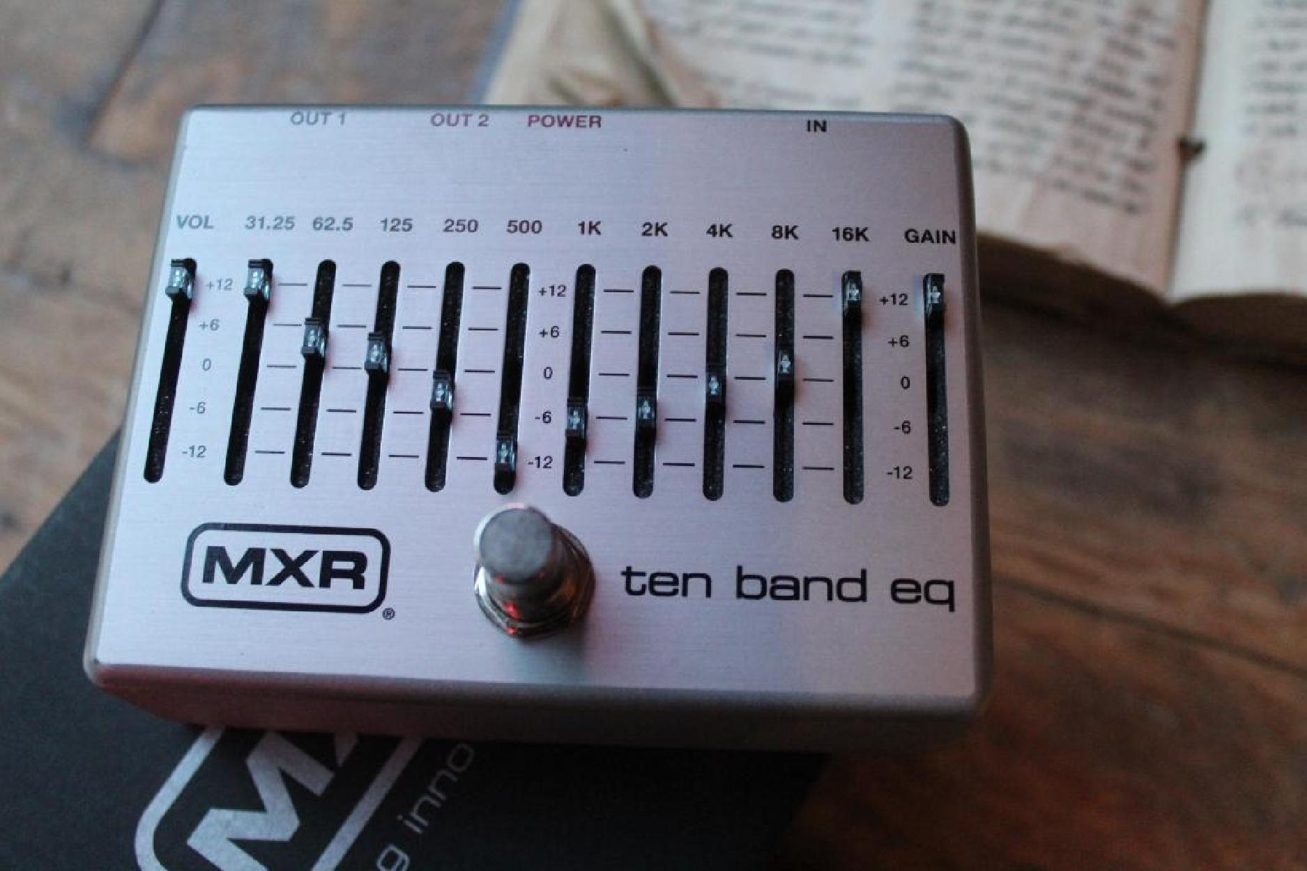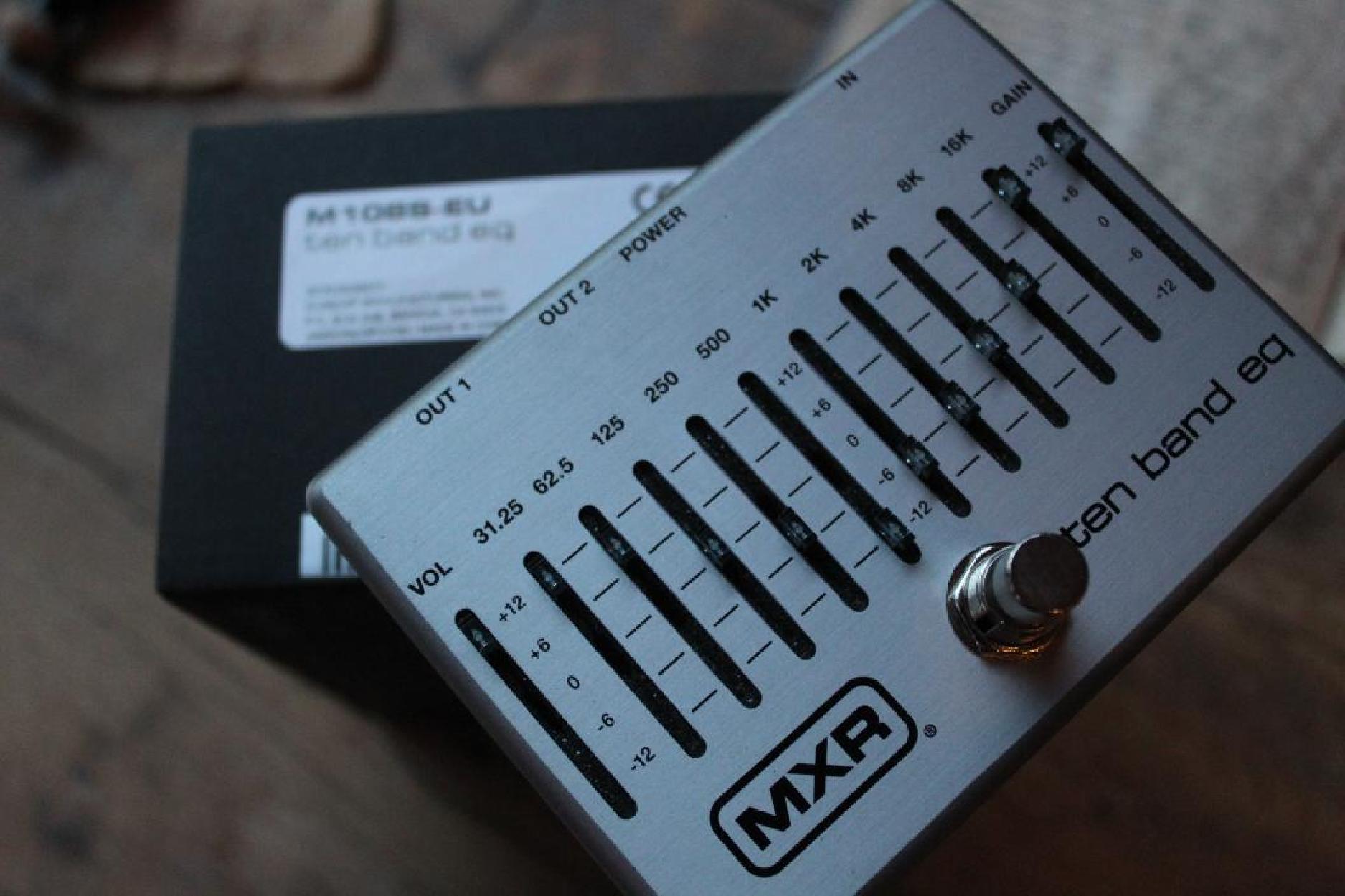 MXR® TEN BAND EQM108S The MXR Ten Band EQ lets you tune your bass or guitar rig in seconds, and it's been upgraded with noise-reduction circuitry, true bypass switching, a lightweight aluminum housing, brighter LEDs, and a second output. This pedal can be powered by the included ECB004 18-volt adapter or the DC Brick™, Iso-Brick™ and Mini Iso-Brick™ power supplies.