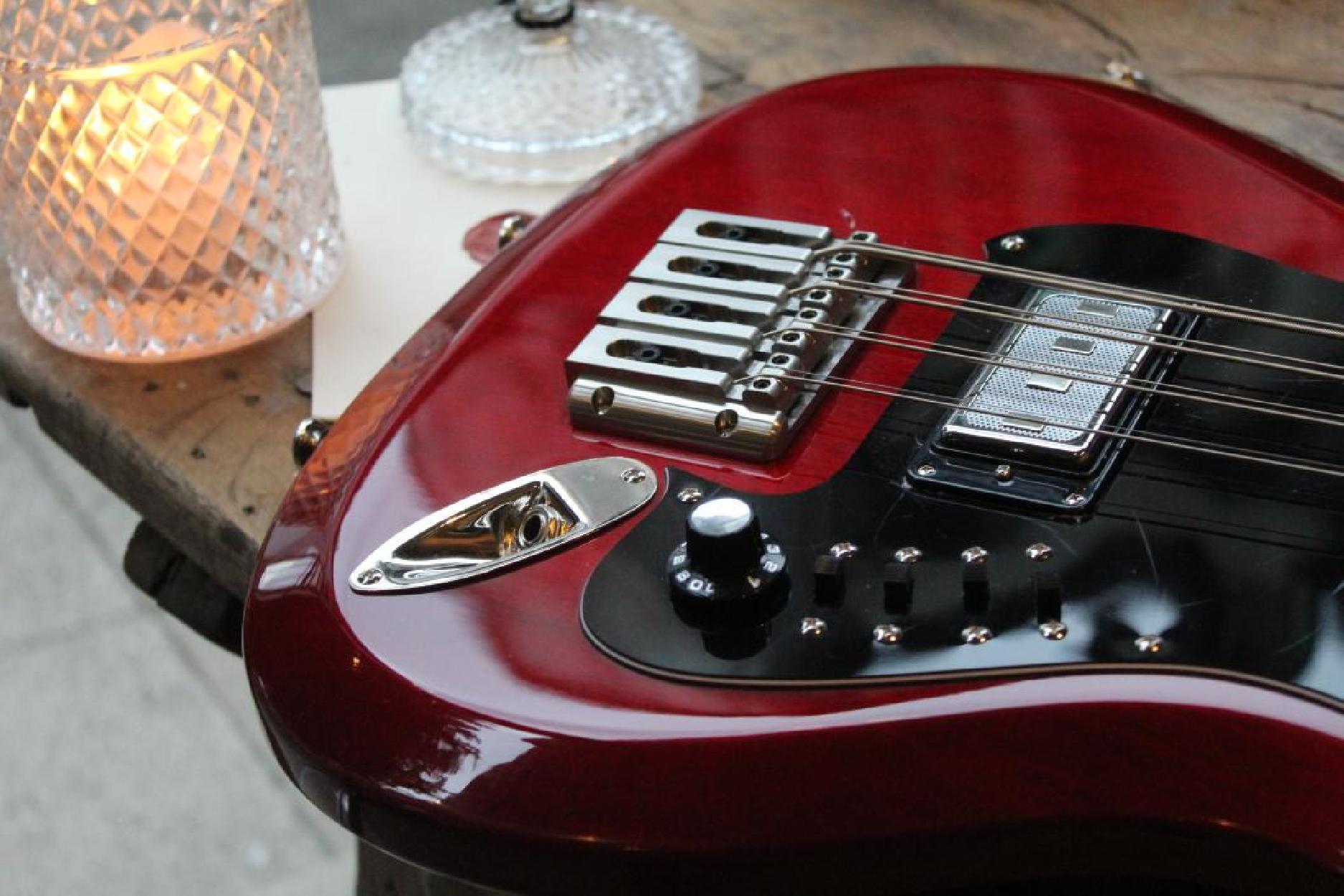 4, 82 KG Hagstrom H8-II Bass Most people invariably think of Hagstrom when talking about an 8-string bass. That’s because Hagstrom was the first brand to mass-produce an 8-string version: the H8. In the late 1960s, countless beat and hard rock icons experimented extensively and used its unique sound as the backbone for psychedelic and classic songs. The H8 not only survived this experimental era of the 1960s but quickly became a timeless instrument. With the H8-II of its RetroScape series, Hagstrom introduces an authentic re-issue of this legendary 8-string bass originally released in 1967. In other words, its tremendously powerful and sparkling sound is back! What makes the H8-II so special? The octave sound of the high strings is just perfect. Unlike electronic devices, this approach is not subject to tracking problems. The narrow neck, the congenial 8-string bridge (string-through-body) and its short scale greatly contribute to the perfect playability of the string pairs. Hagstrom’s proprietary “Dyna-Rail” humbuckers produce a phat sound and can be split to single-coil mode using the volume control. The famous “H-Expander” trussrod ensures perfect neck relief despite the considerably higher tension of the eight strings. It also contributes to the bass’s fabulous sustain. The on-board sliders allow players to activate and deactivate the pickups individually. The global “Tone” and “Mute” sliders provide a host of additional sonic options. This attractive package is rounded out by the authentic double-cutaway body shape, which fits snugly in the RetroScape series’ design philosophy and will even win over die-hard vintage freaks.