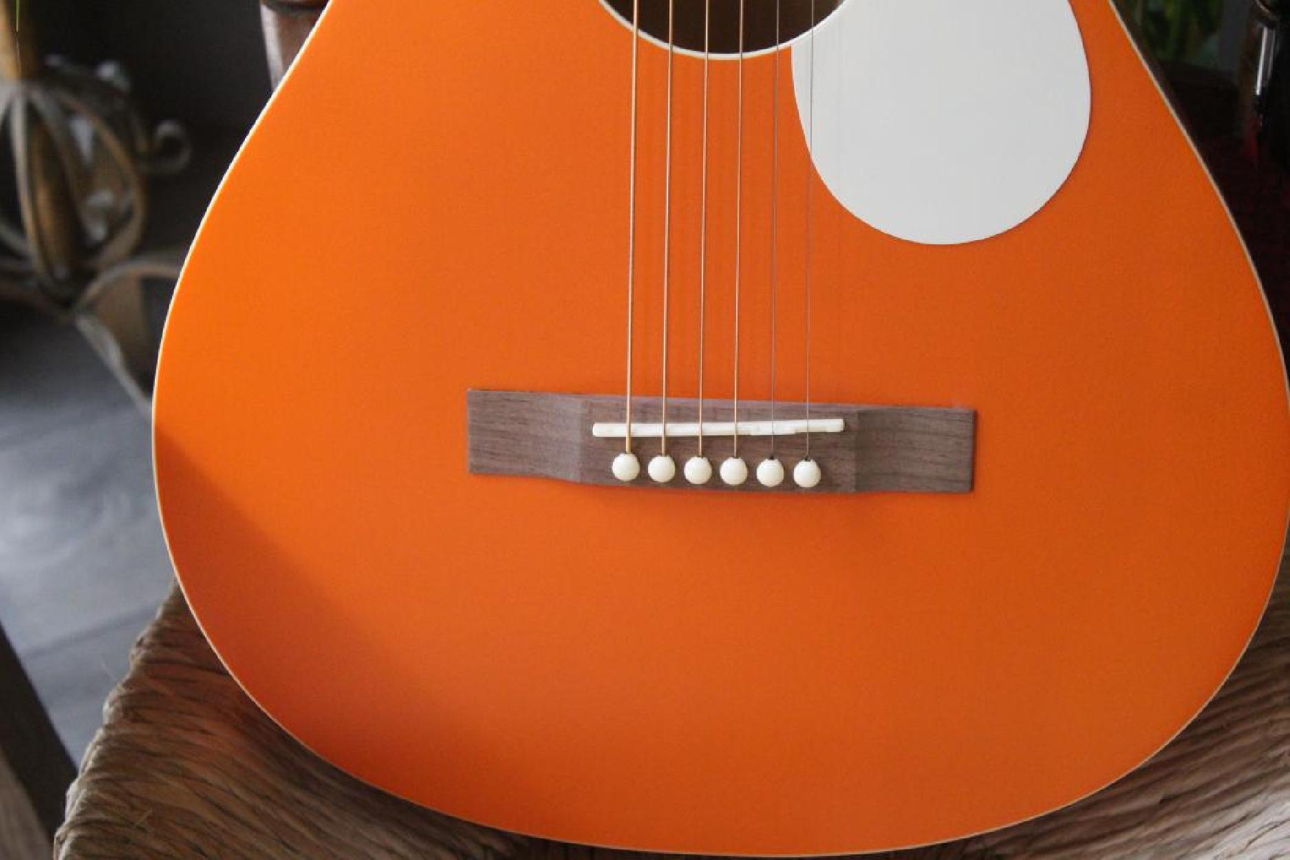 Dirty 30s Series 7 Single 0 Spruce Top 25.4" Scale Length Cross Lap Bracing Bone Nut and Saddle Checkerboard Purfling(Revolution Green Only) Orange(RPS-7-MOR) and Green(RPS-7-GN) The exclusive Series 7 Single 0 small body sounds as cool as it looks. For small-body lovers, these exclusive Series 7 guitars deliver traditional boxy old-time sound in vibrant finishes guaranteed to draw attention. Recording King guitars never cut corners on the building blocks of great tone. The Single 0 starts with a spruce top supported by RK cross lap x-style bracing. Cross-lap bracing requires the vertex of the x-brace to be constructed to tight tolerances, strengthening the center of the top so the brace edges can be thinner, which increases top vibration and projection. The bone nut and saddle provide the resonant string contact points that bring out the best in the spruce top. The thin C maple neck with a 1-11/16” width is the perfect fit for players who love the comfort of a traditional small-bodied guitar. The all-new colorways of Monarch Orange and Revolution Green are as attention-grabbing as they are refined. An extra-thin finish allows the guitar to resonate freely, and the teardrop pickguard and Harmonella fretboard stencils deliver a stylish counterpoint to the vibrant finish colors.