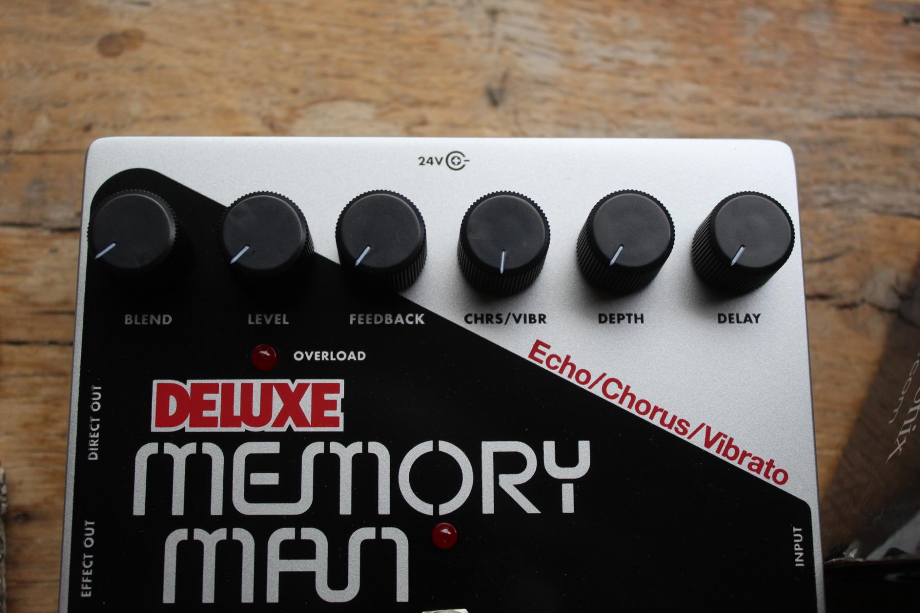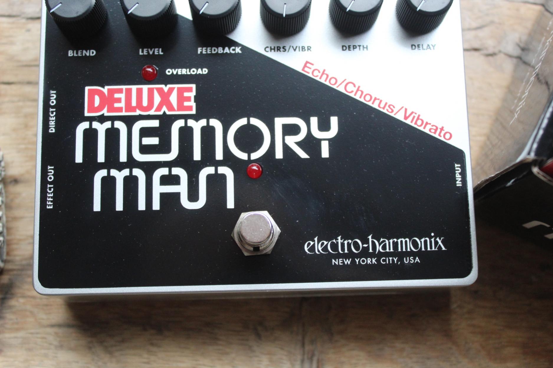Experience the warmth of analog delay. Up to 550ms of vibrant echo that rivals tape delay; lush, spatial chorus and haunting vibrato are just a few of the treats in the Memory Man’s sonic schmorgasbord! Analog warmth that renders digital delay obsolete – the EHX Deluxe Memory Man echo with chorus/vibrato! True bypass Super organic analog delay with blend, feedback and delay time controls Selectable sweet analog chorus and vibrato with depth control Analog input gain control Power adapter included