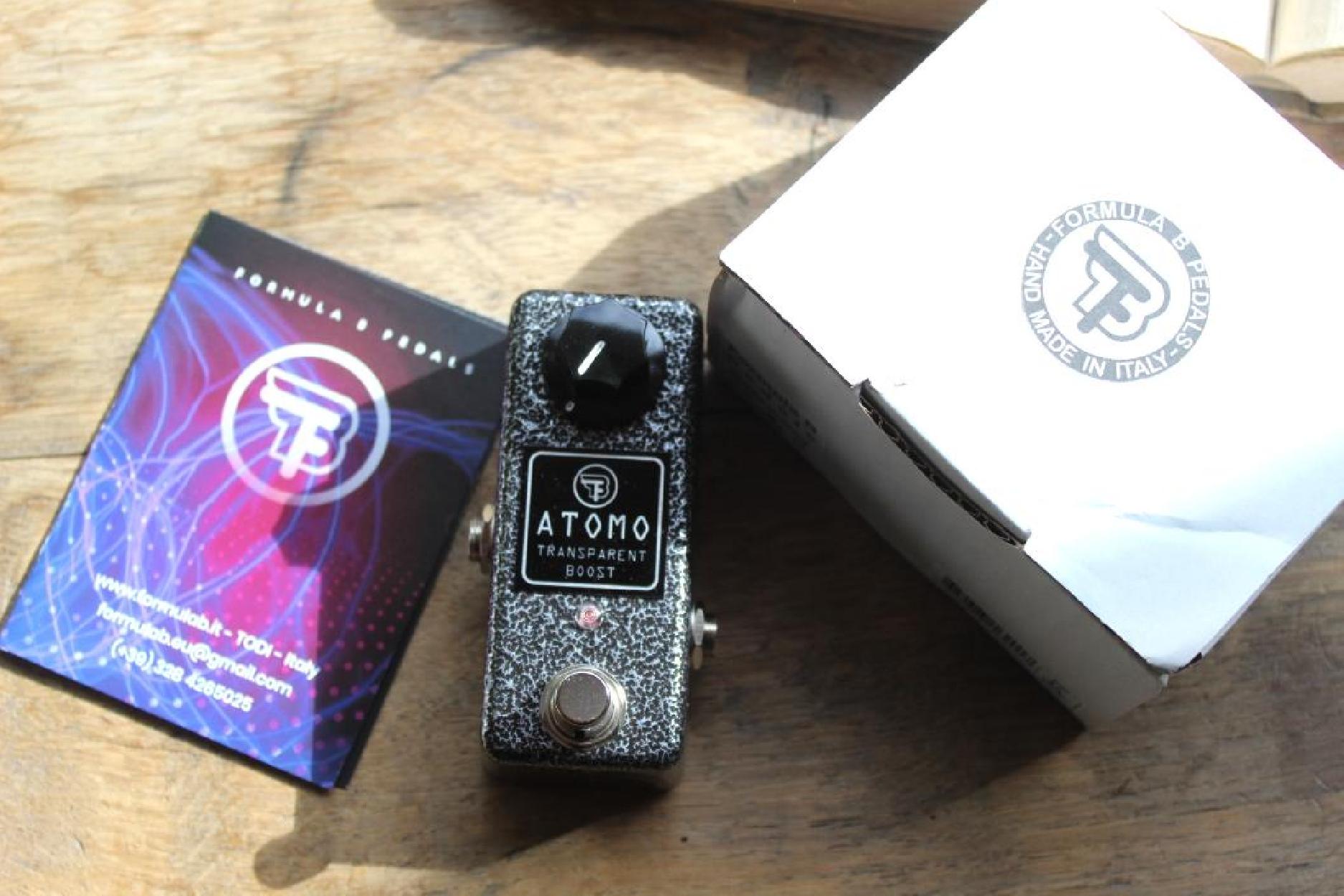 ATOMO Boost è un clean boost compatto, costruito a mano in Italia, progettato per offrire un gain trasparentecon piu' headroom e un’estetica vintage. Il controllo a singola manopola lo rende immediato e intuitivo, valorizzando il suono dello strumento senza modificarne il carattere. Caratteristiche Principali Boost pulito e trasparente, con risposta naturale Fino a +25 dB di incremento di volume Controllo a singola manopola per un utilizzo rapido e intuitivo Quando la Manopola è completamente chiusa (a zero): diventa un Buffer Finitura martellata nero & argento dal look vintage Formato compatto, ideale per qualsiasi pedalboard Costruito a mano in Italia con componenti di alta qualità Prestazioni e Applicazioni ATOMO Mini Boost è pensato per musicisti che cercano un boost musicale, affidabile e non colorante. Applicazioni tipiche: Spingere l’amplificatore in overdrive naturale Dare presenza e definizione ai soli Recuperare chiarezza in catene effetti lunghe o complesse Preservare il tono grazie al buffer a unity‑gain con manopola a zero Specifiche Tecniche Range di Boost: 0 – +25 dB Posizione Zero: unity‑gain buffer Alimentazione: 9–18 V DC, polo negativo Assorbimento: 10 mA Impedenze: Ingresso 1Mohm / Uscita 200Ohm Connettore Alimentazione: top‑mounted Jack Audio: laterali (input a destra, output a sinistra) Costruzione: chassis compatto e robusto con finitura martellata vintage Dimensioni: LxPxH 100x45x50mm VIDEO DEMO Posizionamento ATOMO Mini Boost è ideale per chitarristi che desiderano un clean boost semplice, efficace e musicale, con estetica vintage e affidabilità moderna. Si integra perfettamente in qualsiasi rig, dai setup minimal alle pedalboard professionali da tour.