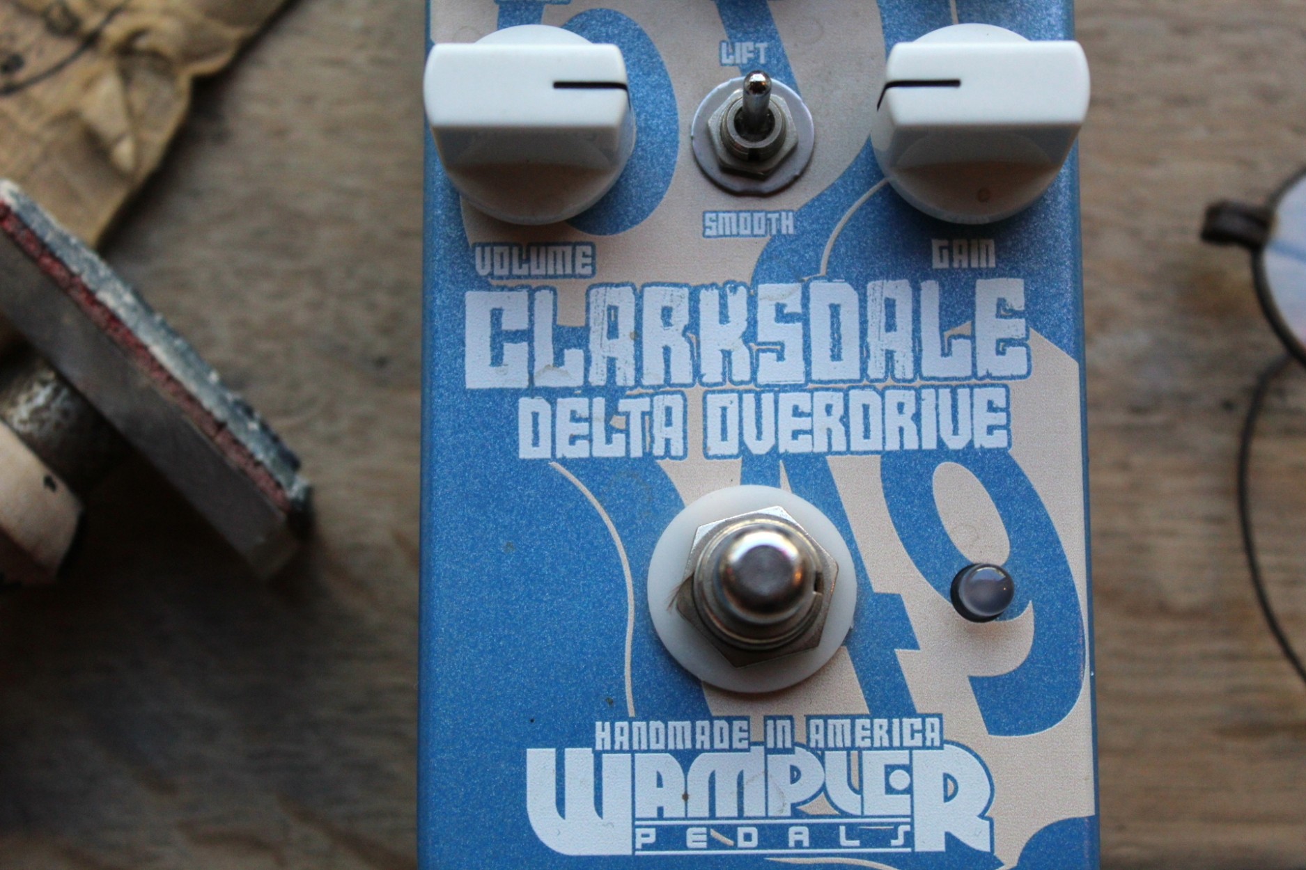 CLARKSDALE OVERDRIVE At the crossroads of Highway 61 and Junction 49 lies the official crossroads of Clarksdale, Mississippi – the birthplace of the Delta Blues. This historic town, and the famous music that was created there, is responsible for the inspiration behind this pedal – The Clarksdale Overdrive. Blues and non-blues guitar players have used TS type circuits for years to help them create their personal signature sound. Over the years, countless players have been asking Brian to create that world famous vintage mid-range overdrive – well he finally did it! The Clarksdale is our take on that world famous lime green overdrive many of us have come to love – with a few great Wampler styled improvements of course. The world of boutique pedals is filled with lots of great clones of that already famous circuit– so what else could be done? We wanted to create a pedal that would be true to the sound and feel of the original but would have a wider range of tonal options – to satisfy even the biggest tone chasers out there. The addition of a 3 band EQ (Bass, Mids are active, and the Treble is similar to the classic TS tone pot) it allows a player to have a more tailored tonal pallet than the original. The Lift/Smooth switch will also allow a player to either sit in the mix with the Smooth setting or allow your leads to standout with the Lift option. Also unlike the original “green giant” the Clarksdale will not “fizz out” as much at low or high gain settings. The Clarksdale has one foot in the past and one foot firmly planted in the future. Your search for the perfect vintage midrange infused overdrive is finally over.