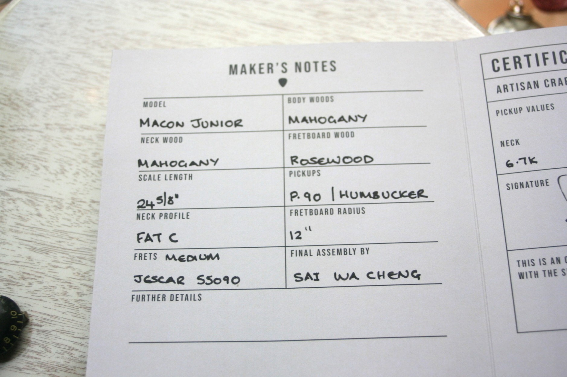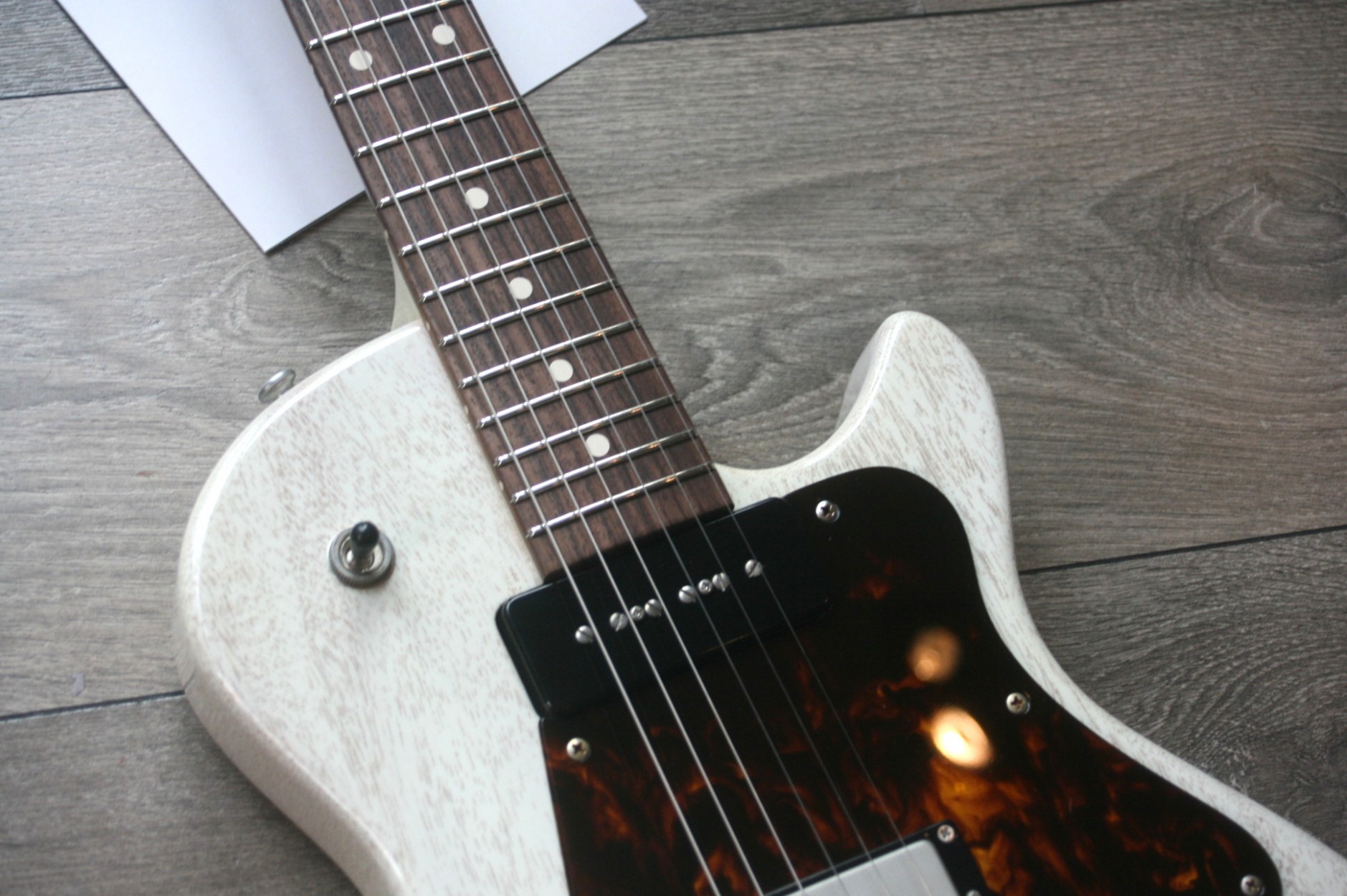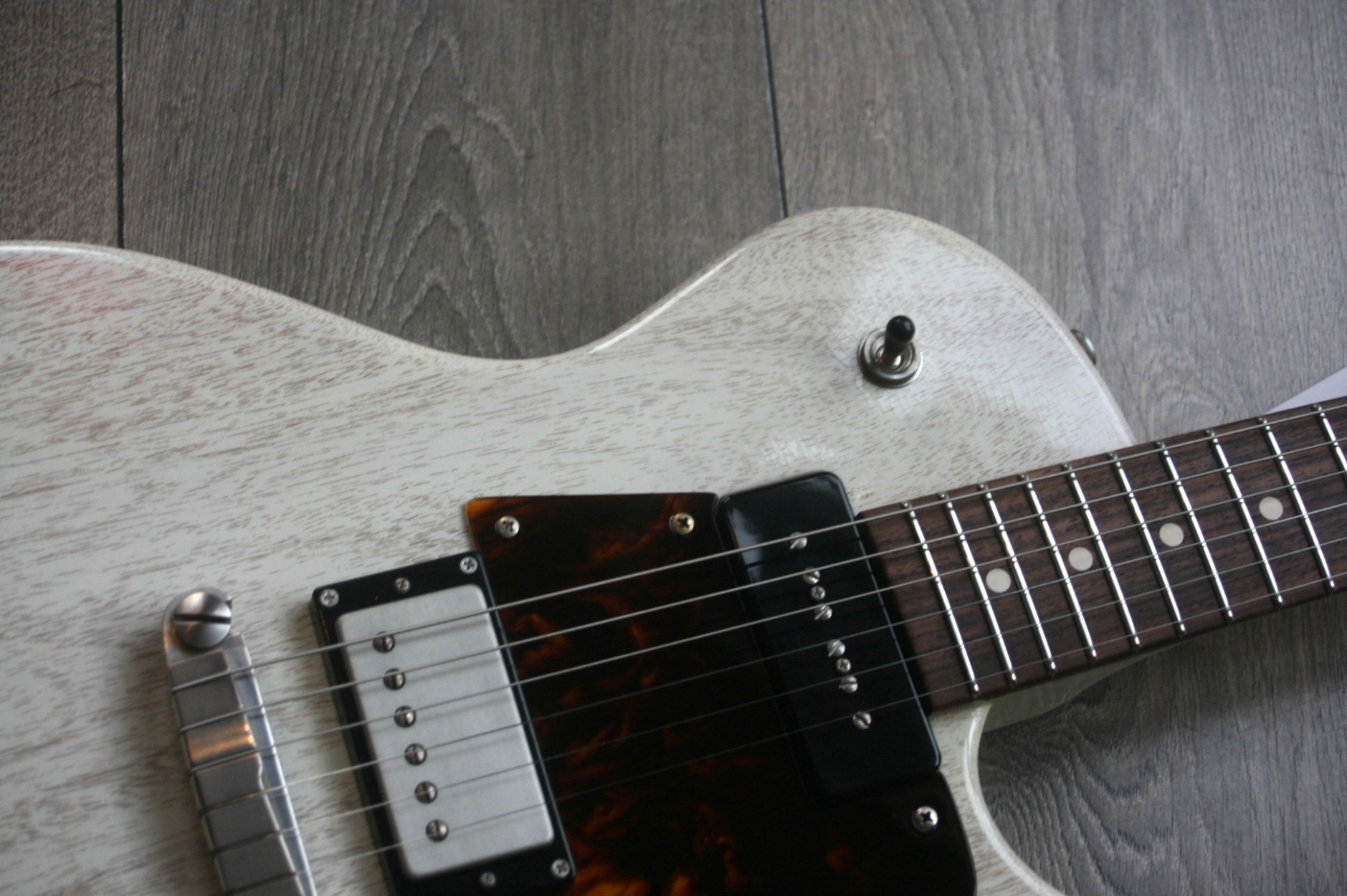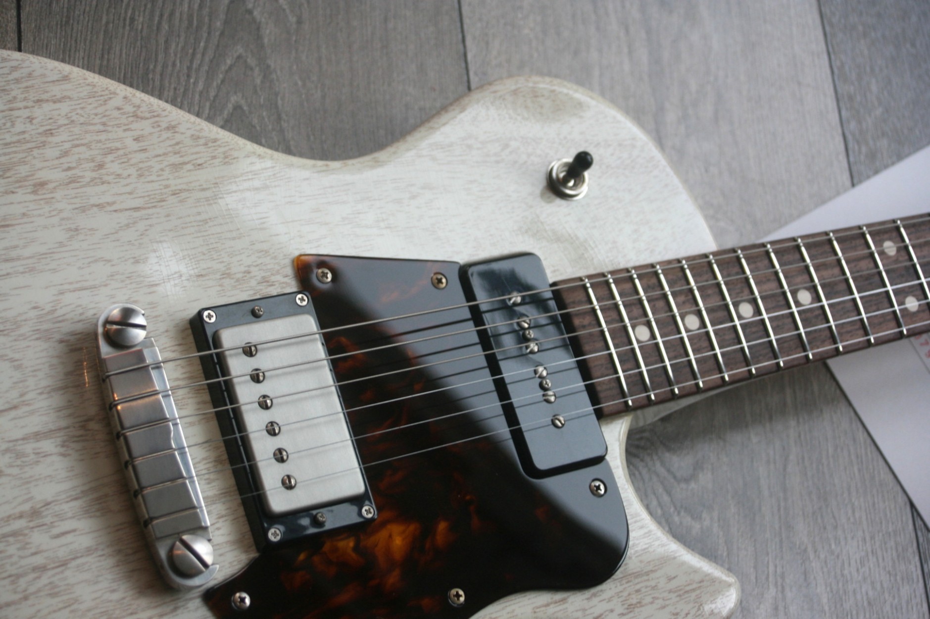 Patrick James Eggle Formidable Luthiery Skilled Instruments Now husband and father, these days, Patrick works with a small team of craftsmen, producing a limited number of high end electric guitars from his bespoke workshop in Oswestry. His aim is to produce guitars that are not only visually striking, but also demonstrate superior play-ability and tone. Every single guitar produced, is blended together with expert precision and execution, ultimately culminating in the very finest of instrument. Orientation RIGHT Scale length 24.625" Nut width 42.8mm String spacing 52mm Neck Profile FAT C Body wood MAHOGANY Top wood N/A Neck wood ROASTED MAPLE Fretboard wood ROSEWOOD Fretboard radius 12" Frets JESCAR 55090 Fretboard inlay DOTS Pickup - neck P.90 STAPLES - METAL COVER Pickup - bridge HUMBUCKER - MOJO-TRON - PAF SPEC Bridge style WRAPOVER Tuning machines VINTAGE Hardware plating AGED NICKEL Finish - body "58" NITRO - AGED Finish - neck "58" NITRO - AGED - WORN Body colour GRAINED BLONDE Neck colour NATURAL Pickguard DARK TORTOISE