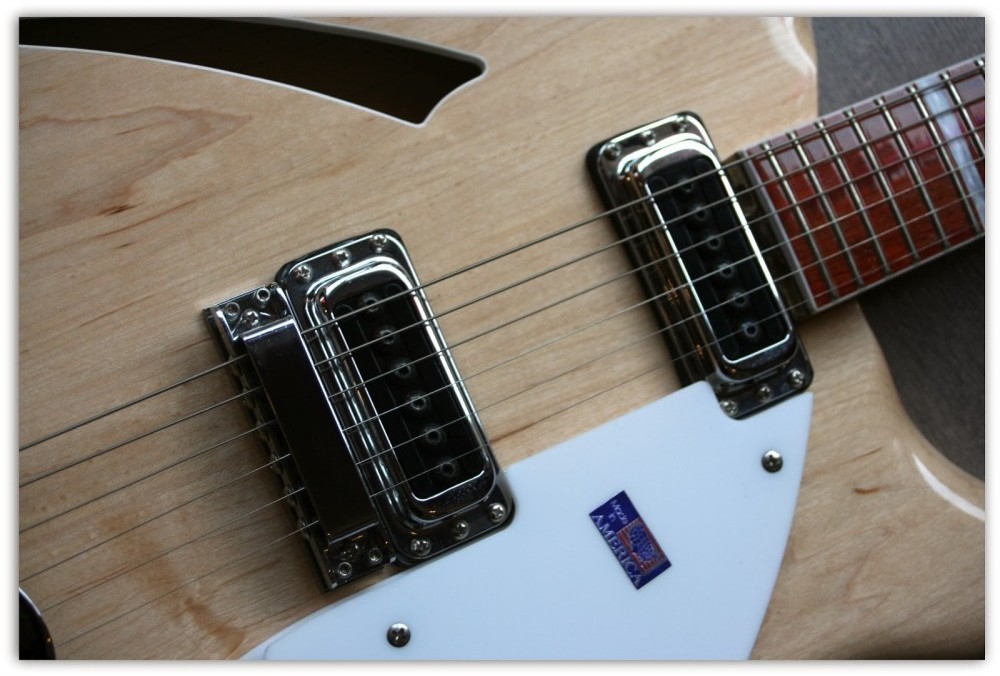 This guitar broke all the rules of traditional styling when it appeared amid the 'British' sound of the 1960's. Subtly updated through the years, this Deluxe hollow body with its special contour around the entire body perimeter, is still perhaps the most comfortable guitar of all. The bound body and Rosewood fingerboard, inlayed with triangular pearloid markers, provide an exceptionally attractive appearance. Stereo output is standard.