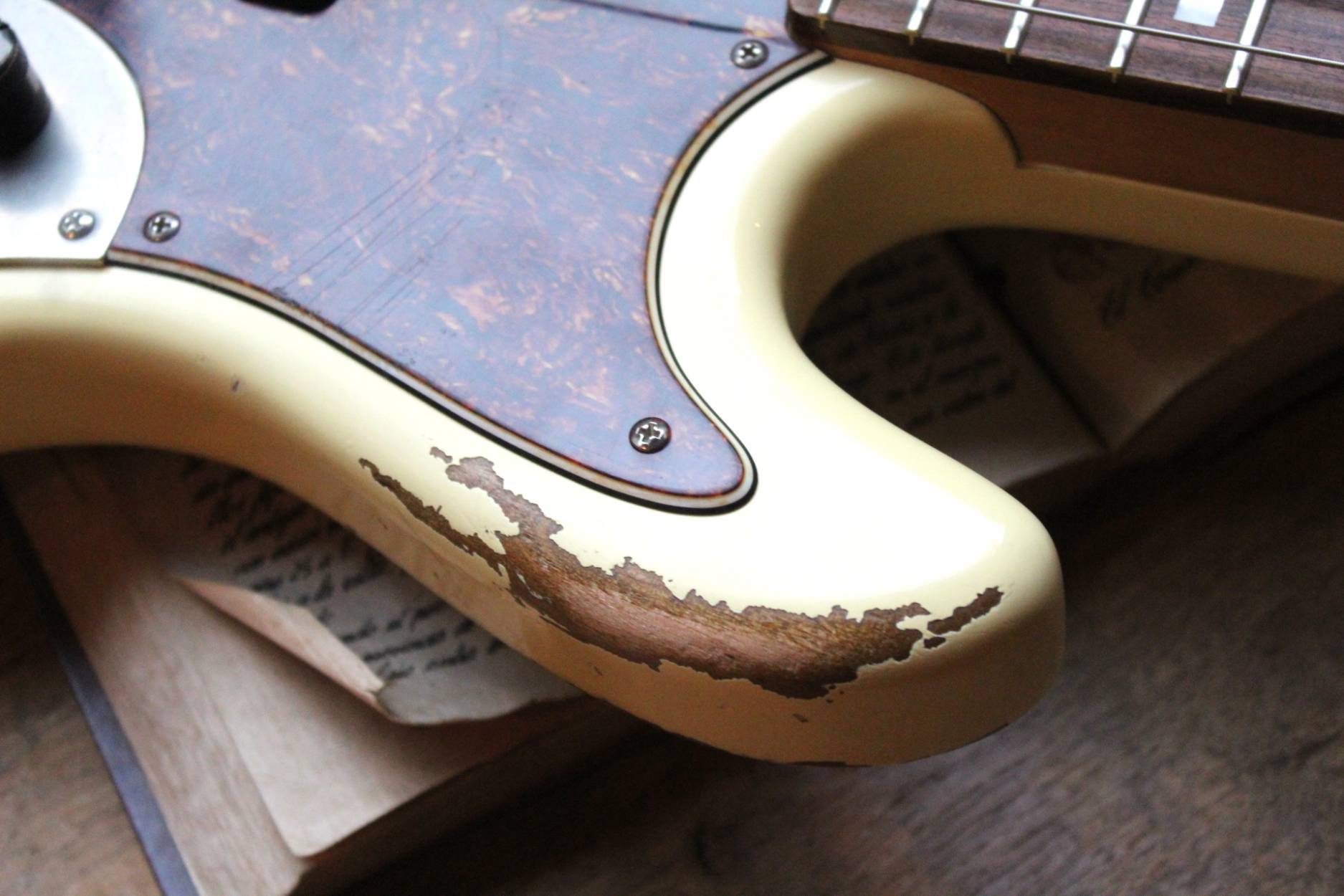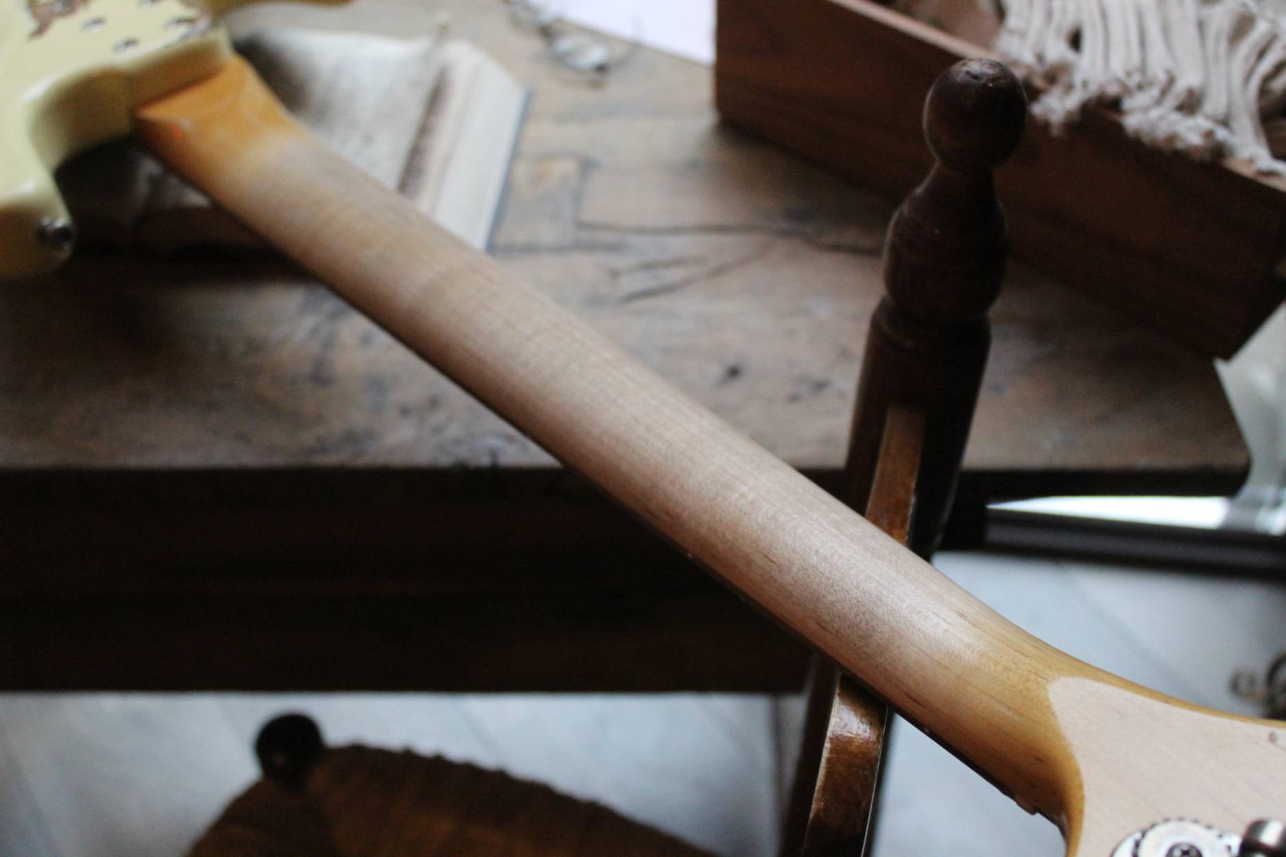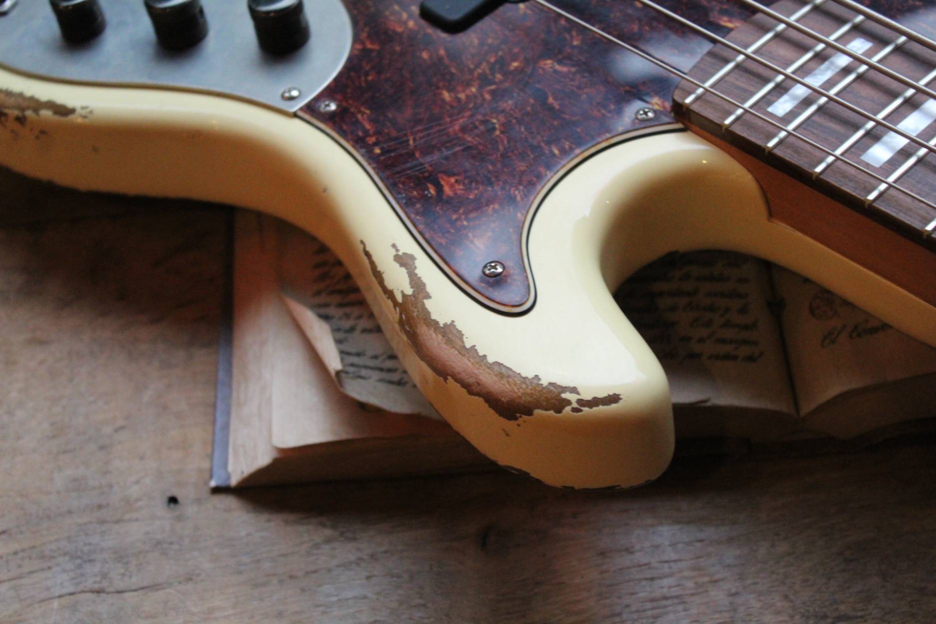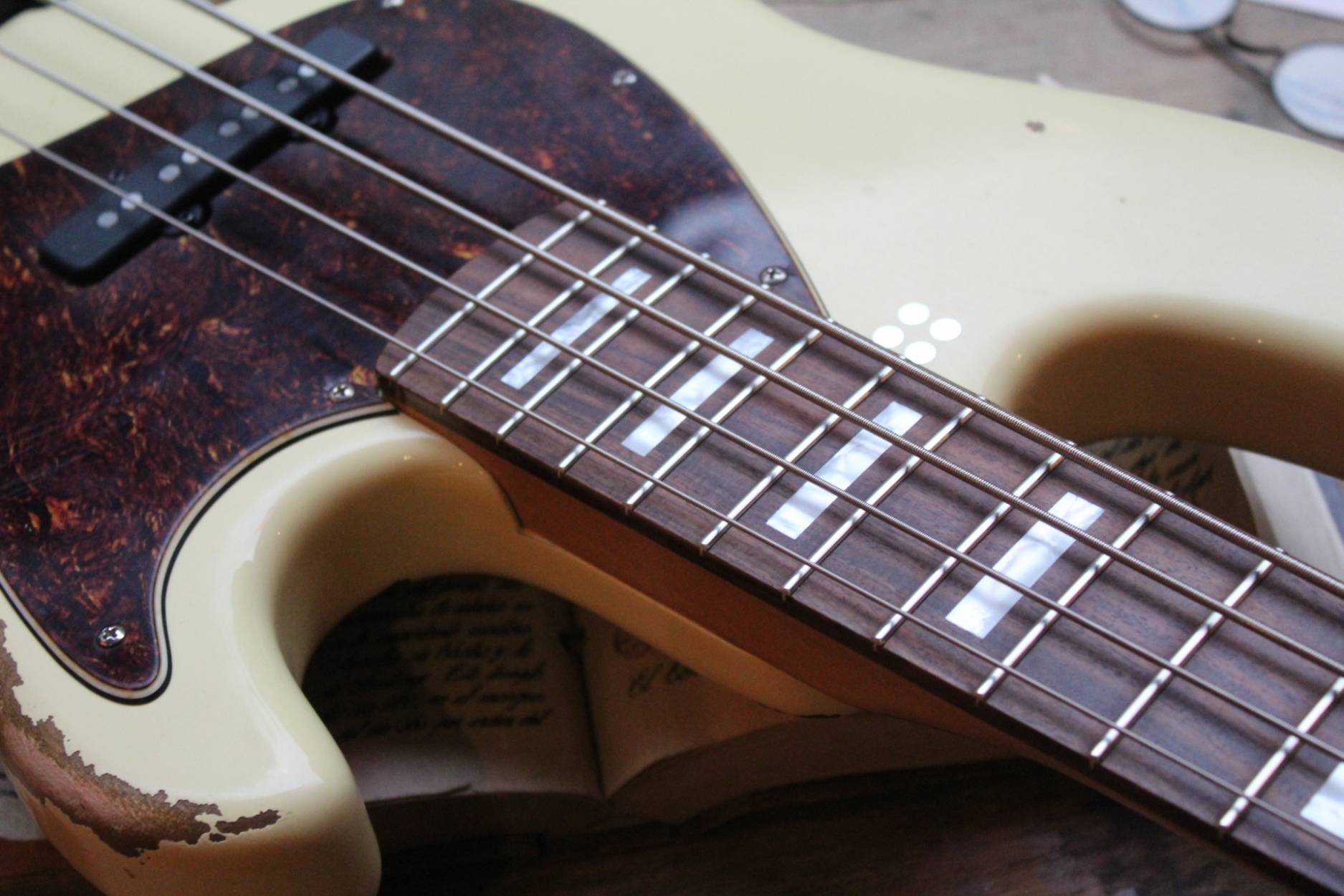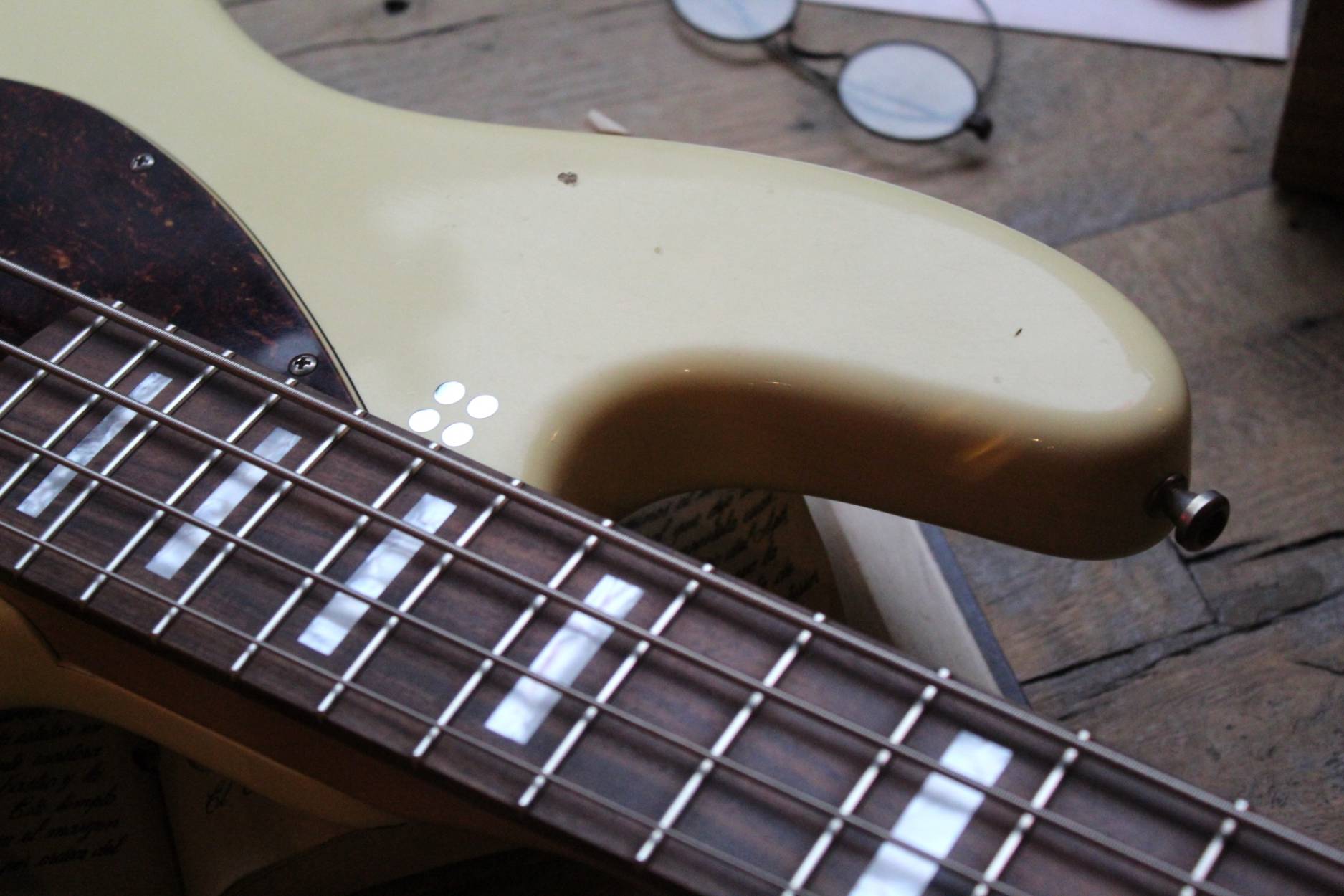 Thomas Risell / MarloweDK NECK 6 bolted / canadian hardrock maple with special Marlowe measurements FRETBOARD 22 frets, pau ferro with perloid blockinlays or fretless SCALE 34” BODY european alder FINISH special hardcore aged HARDWARE sandberg PICKUP 2 sandberg ALNICO 5 single coils in custom Marlowe position PREAMP passive, vol/vol/treble cut EXTRA vibration treatment FINGERBOARD RADIUS 14 inch WIDTH ZERO FRET 38 mm THICKNESS 1ST FRET 20 mm WIDTH 22ND FRET 63 mm BRIDGE STRING SPACING 18.5 to 20 mm SIZE FRETS 2.5 mm NECK PROFILE c-shape