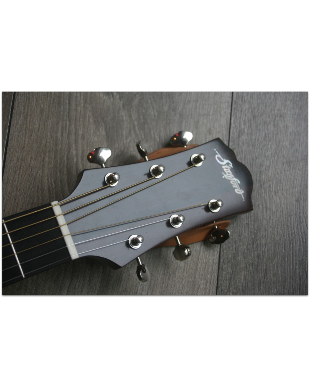 A dreadnought is the “classic” bluegrass guitar par excellence. Our D 10, from Stanford’s Golden Era series, meets all the sound, handling and visual expectations you would expect from a Pre War Dreadnought. The “scalloped bracing” in combination with a fine Sitka spruce top gives the Stanford D 10 a powerful and gripping sound, supported by the solid mahogany body. A satin finished neck and the lightly polished ebony fingerboard provide an extremely pleasant playing feel. The high-quality, semi satin nitrocellulose lacquer is applied very thinly so that the instrument can vibrate optimally. If you’re looking for a professional Dreadnought, you’re sure to find it at the Stanford Golden Era D 10. RRP: 899,- SPECIFICATIONS Bodydreadnought Topspruce Ribs/Bottommahogany Neckmahogany Fretboardrosewood Finishhighgloss Scale Width45 mm Nut/Saddlebone