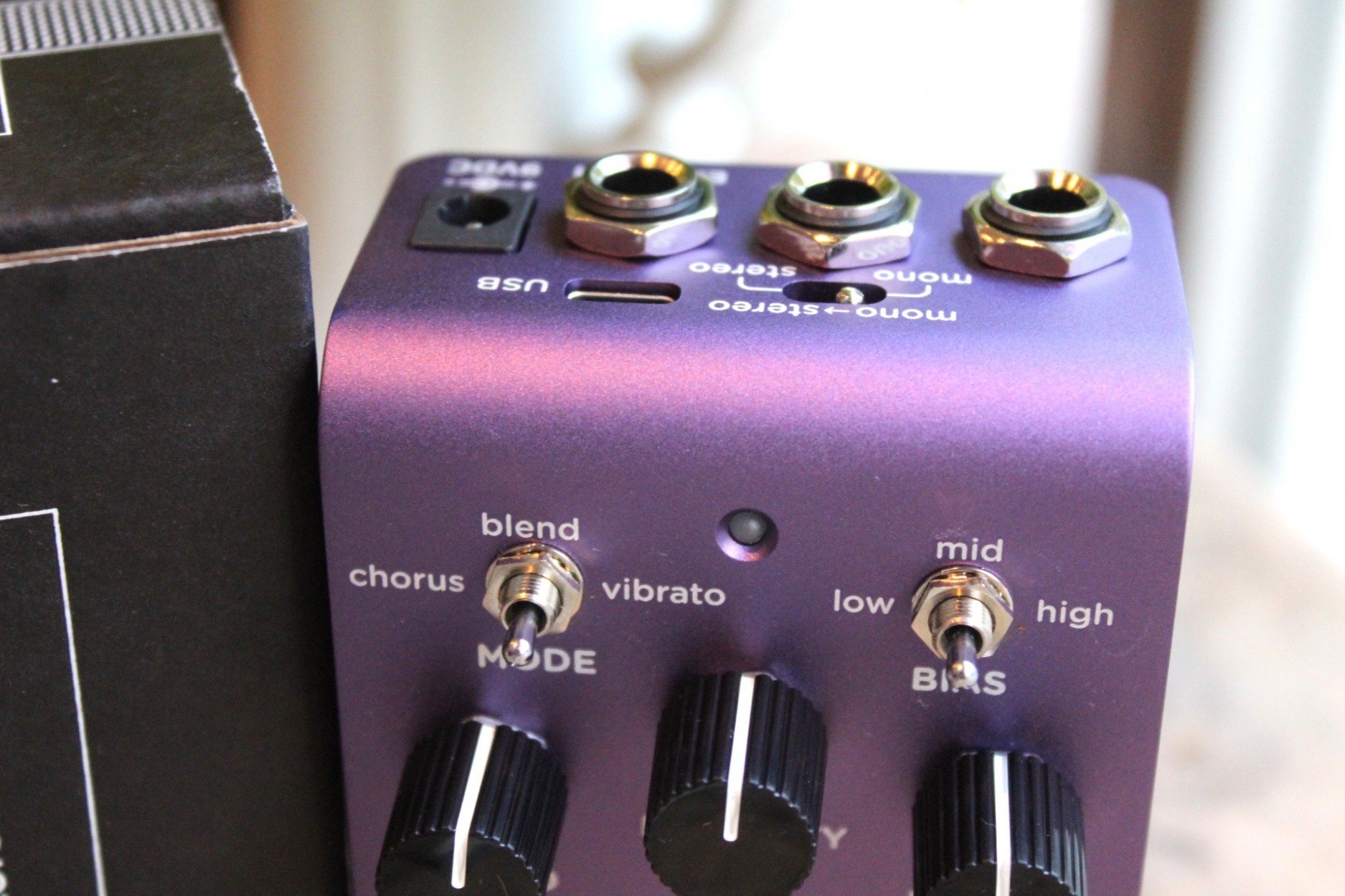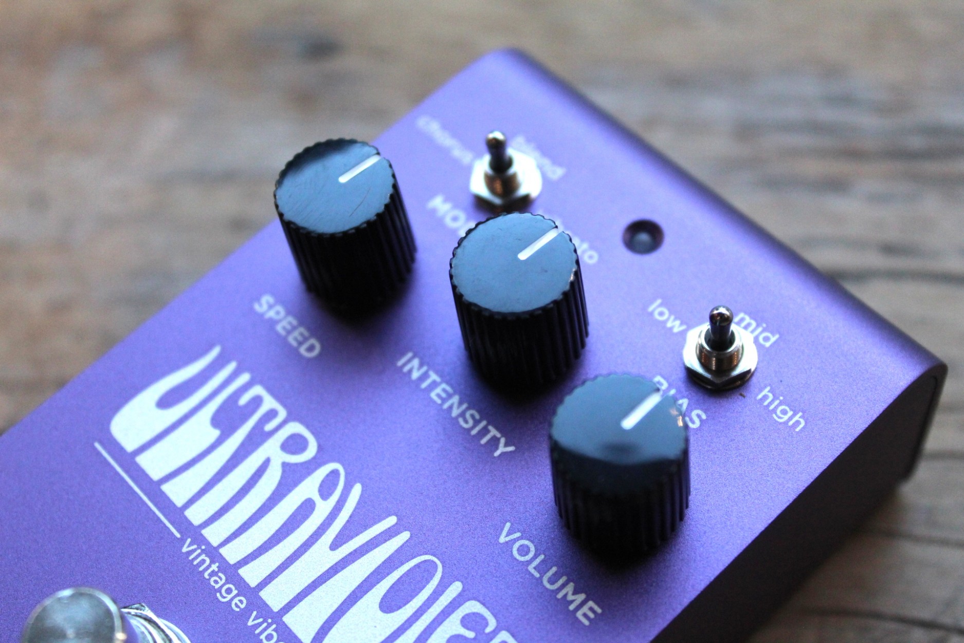 Quintessential Vibe A warm grittiness to the warble, a rippling, wooshing, bubbling irregularity to the modulation and a dynamic response to your picking are all hallmarks of the true vibe experience. Thicker and chewier than any chorus, earthier than any phaser and uniquely magical in front of a driven amp, the perfect vibe pedal moves you to dig in and play without inhibition. This feeling has been difficult to find outside of large and expensive fully-analog boutique units, but the search for that elusive experience is now over. Delivering vintage vibe tone that’s second to none with simple and powerful controls for instantly obtaining a rich variety of captivating sounds, UltraViolet is the vibe pedal you’ve been looking for.