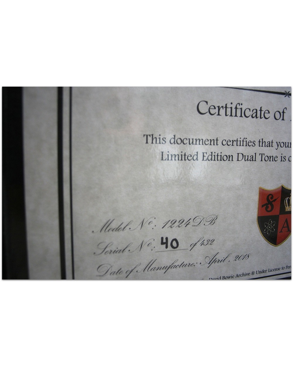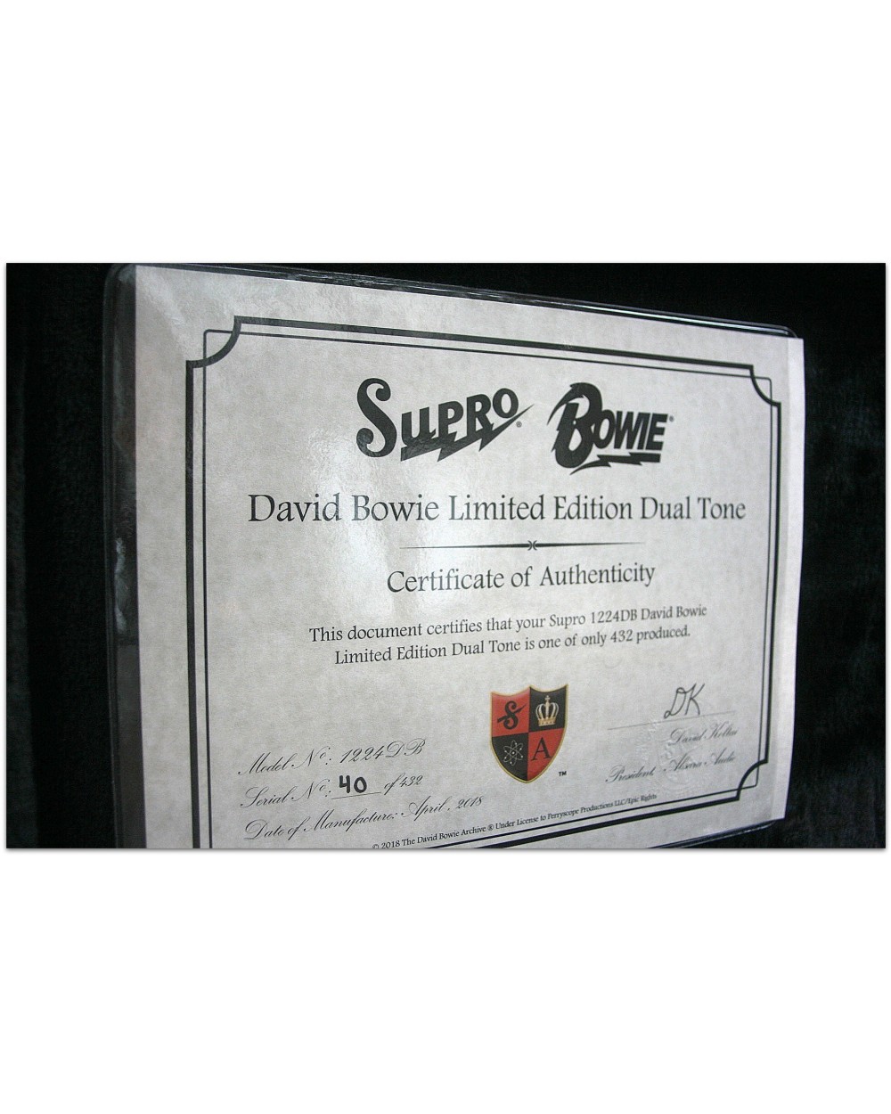 SUPRO "Number 40 of 432, Bowie Dual Tone LIMITED, Made Worldwide"