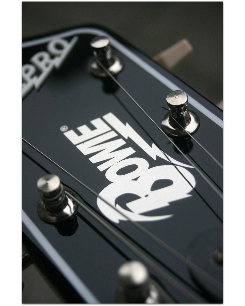 Mirror-finish Bowie headstock logo