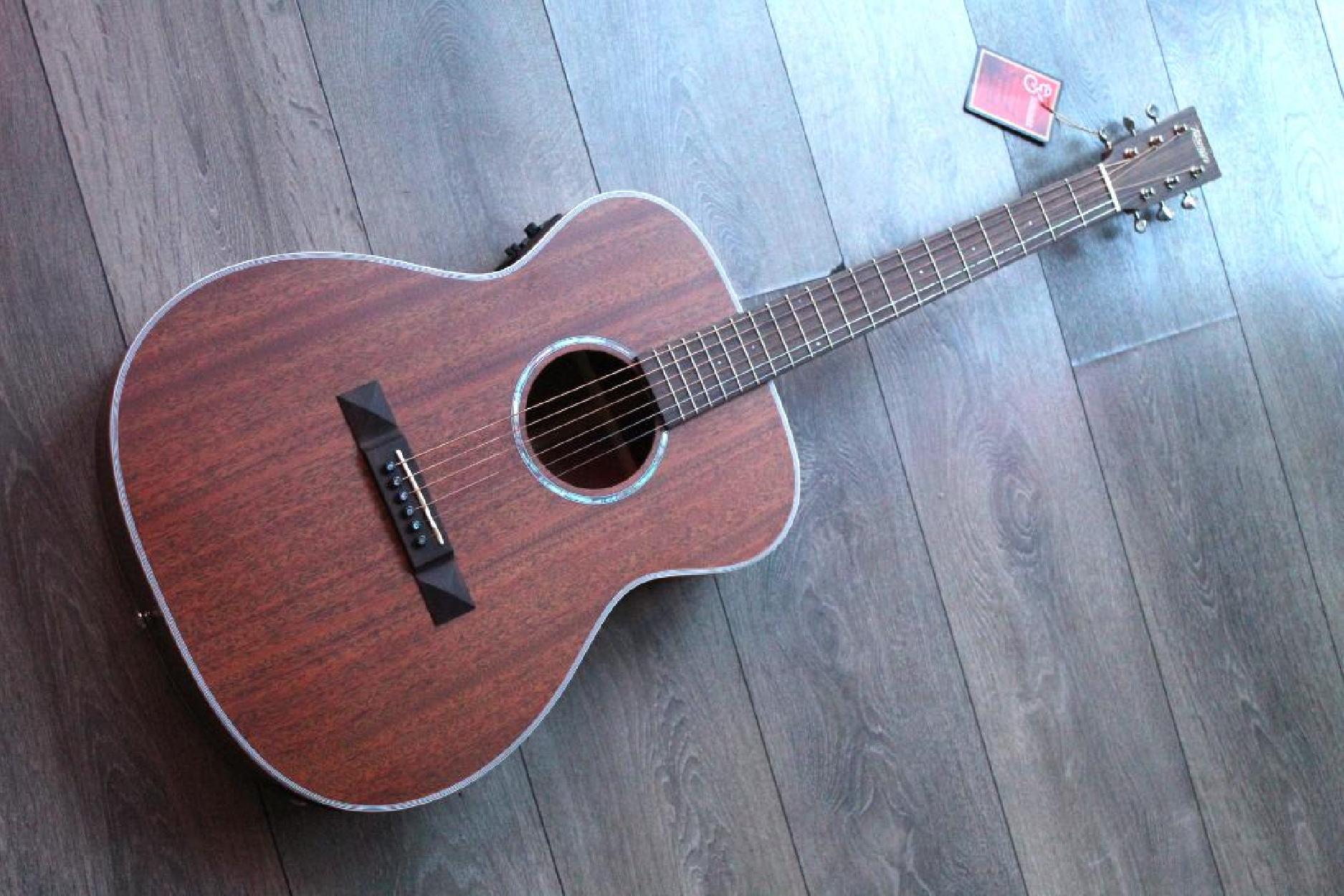Tasman Guitars are working to bring a positive change to the guitar market. Setting out to challenge and redefine the manufacturing process of top-quality and professional grade acoustic guitars. Features Solid Mahogany top back and sides delivers a dynamic and complex tonal range with projection. Satin Finish Neck, for maximum durability and ultimate playability. Vintage Styled Open-Gear machine heads with Bone Nut and Saddle for that classic, authentic touch. Specifications Shape: OM CUTAWAY: No TOP: Solid Mahogany SIDE: Mahogany BACK: Mahogany FINGERBOARD: Rosewood BRIDGE: Rosewood PAINT: Satin, Satin neck FINISH: Natural CASE: Premium Hard Case with plush interior included EQ SYSTEM: Fishman Presys II MACHINE HEADS: Grover V97-18NA HEADSTOCK: Standard SCALE LENGTH: 650mm NUT WIDTH: 43mm STRING PINS: Graphtec TUSQ PP 2000-00 STRINGS: Daddario EXP16 SADDLE/NUT: Bone BODY WIDTH Upper Bout : 29.5cm BODY WIDTH Lower Bout : 38.6cm BODY WIDTH Waist : 24.7cm BODY DEPTH NECK JOINT: 9.7cm BODY LENGTH: 47.6cm