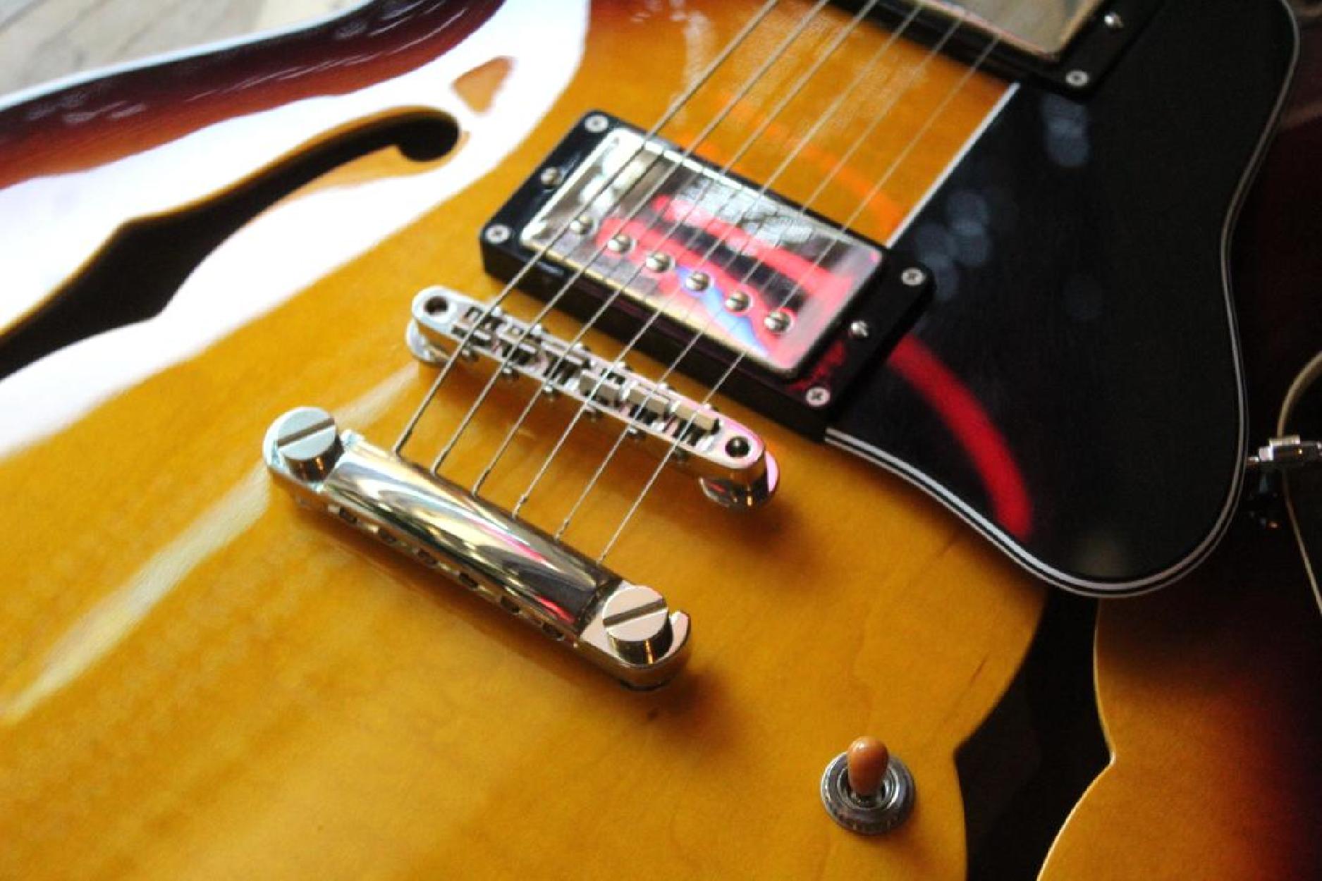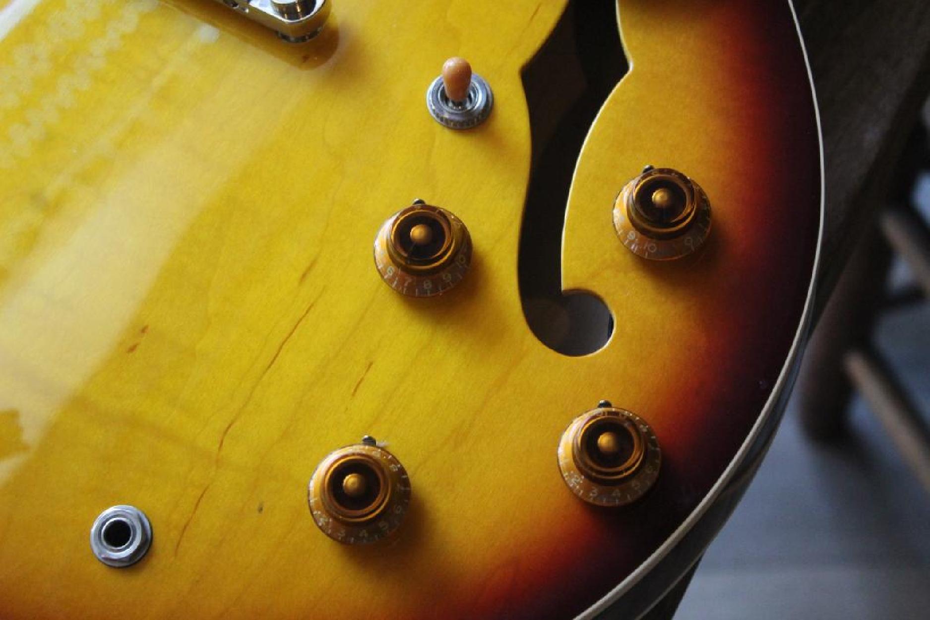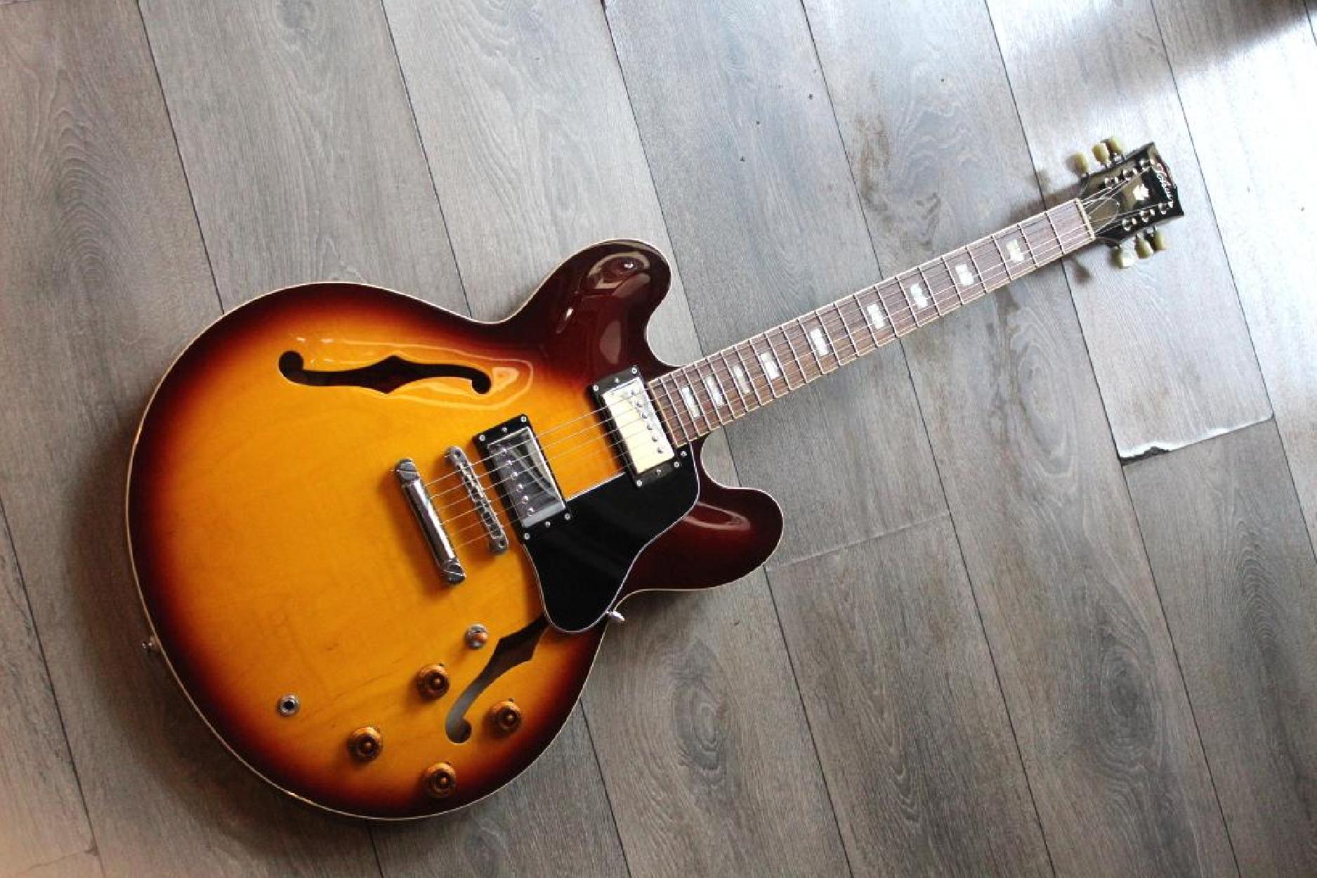USED/MINT 2, 81 kg BODY : Flamed Maple Arched Top, Flamed Maple Side & Back NECK : Mahogany One Piece, Set-Neck, Head Angle 18° FINGERBOARD : Rosewood RADIUS : 300R FRETS : 22F ♯213 SCALE : 625/312.5mm BRIDGE : HLS-VB Bridge, HLS-VT Tailpiece TUNERS : Gotoh SD90-SL NUT(width) : Bone(41.0mm) INLAY : Block(Amber Cell) PICKUPS : PAF-Vintage MK2×2 CONTROLS : 2V.,2T.,3way Toggle SW COLOR : Sunburst JACKS : Switchcraft Accessories : Hard Case , wrench