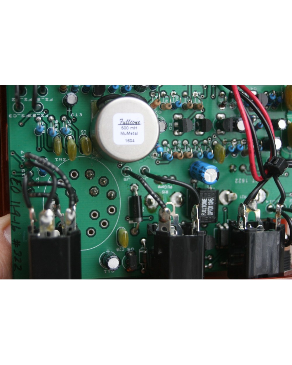 Recently Joe Satriani asked me for one, so I revisited the circuit adding a Volume Control, 3 selectable Range Modes (Wacked, Jimi, and Shaft) , a Pickup Compensator mini knob (humbucker guys rejoice!), and JFET input and output buffers. These buffers completely isolate the circuit from outside influence and are only in-play when the pedal is ON, giving it a much broader range of wah effect, interfacing with all types of PU's better, and working with any amp whether it be hi-gain or clean. Turns a Fender into a Vox, and allows infinite sustain with little or no Distortion.