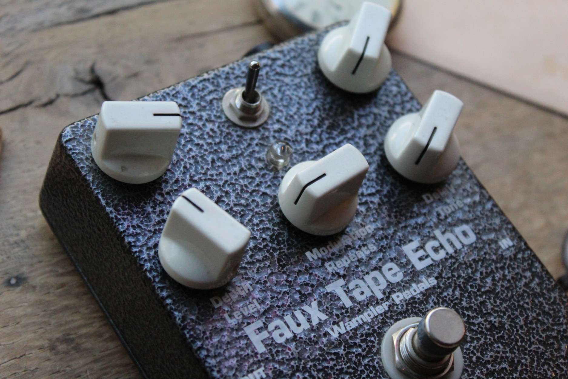 A tape echo/delay that gives you the best of analog and digital in one. The Faux Tape Echo delay has become a staple in Nashville and beyond, from masterful session guitarists to studio "house sound" collections and of course seen on stages worldwide! Based around very carefully selected and very rigorously tested PT2399 delay chips, the Faux Analog Echo and Faux Tape Echo circuits combine the note clarity of a sophisticated digital delay with an all-analog dry path (unaffected signal) and magnificent all-analog tone-shaping and modulation circuitry. What does that actually mean for musicians? The answer: everything. With Wampler's hybrid design approach, you get the best of both worlds. You get note clarity, lower noise, and longer delay times from digital delays. You get the lovely warmth and little, exquisite touches that are usually reserved for analog delays. Nearly every part of the pedal and all of its major functions are analog. The "delay line" is the only digital part of the signal path. It alone being digital brings clarity and focus to the task in a way that analog delay line chips can't really match. But everything else, all the absolutely vital filtering to carefully finish the sound is pure analog.