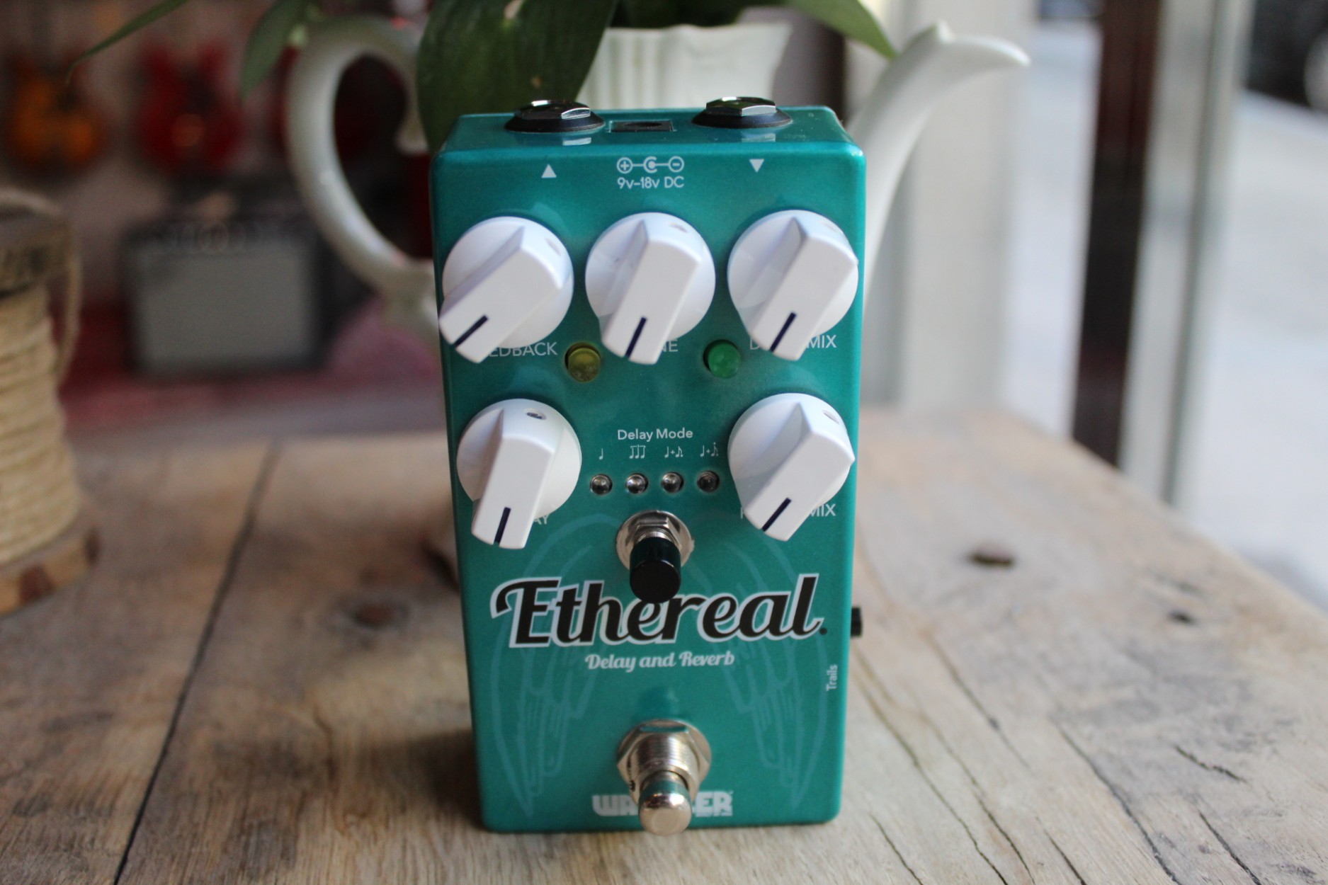 ETHEREAL - REVERB AND DELAY How many times have you sat in front of your favorite ambient pedal and felt like you need weeks of training at NASA to use it? Knobs, switches, sliders…It’s often SO hard and frustrating to find a usable tone on those things quickly... Keeping that firmly in mind, when we first considered making an ambient pedal, ease of use was a top priority, right up there with top tier quality tone on par with pedals at twice the price. How do you describe a pedal like the Wampler Ethereal? Does ambient heaven cover it? Is it the gateway between real life and the astral plane? Or is it just gorgeous? It’s hard to know which phrase to use when talking about it, because they all match it perfectly… plus, of course, so easy to use you’ll be getting those perfectly Ethereal tones instantly. When designing the Ethereal these were the EXACT thoughts running through the mind of Brian Wampler. hip, to get lost in, to even help you inspect your shoes… but most of all, it was designed to inspire.