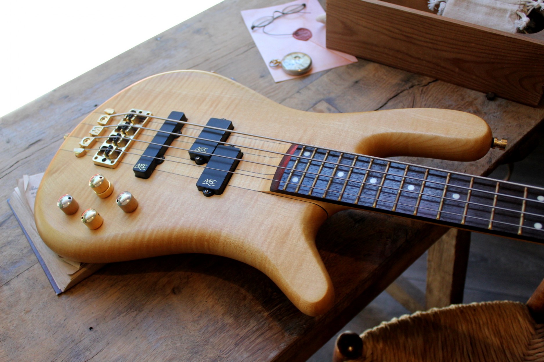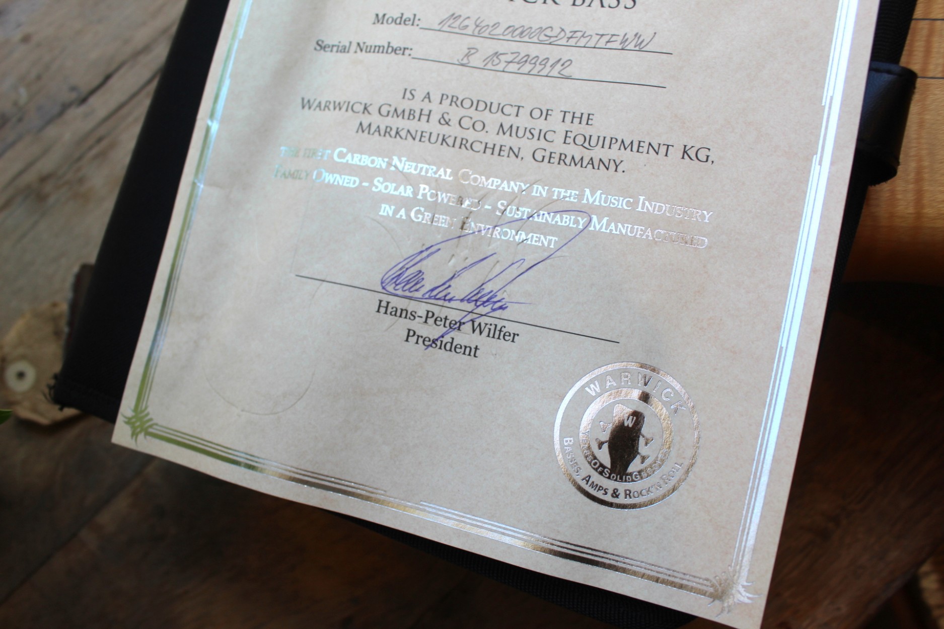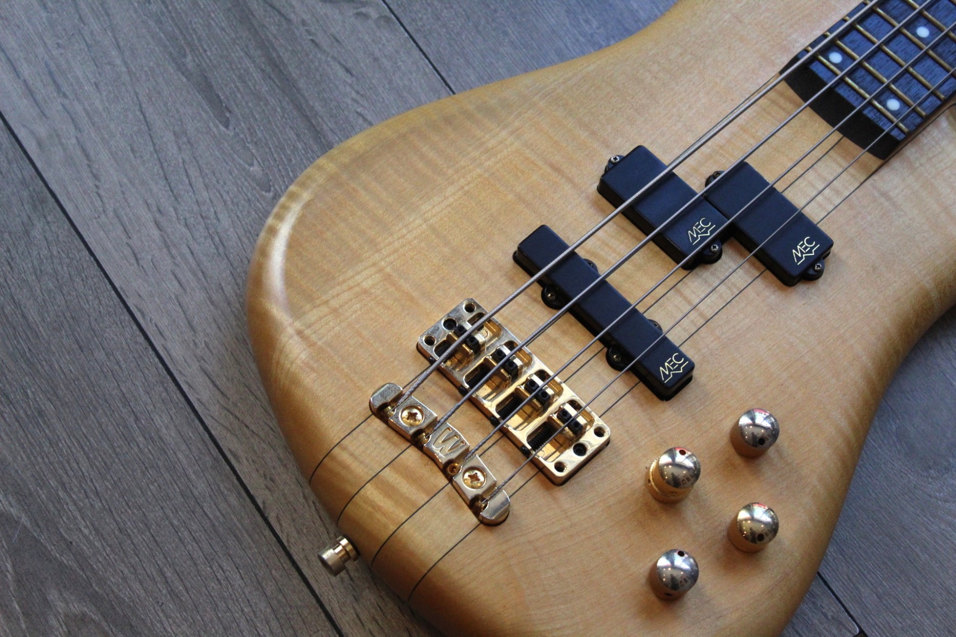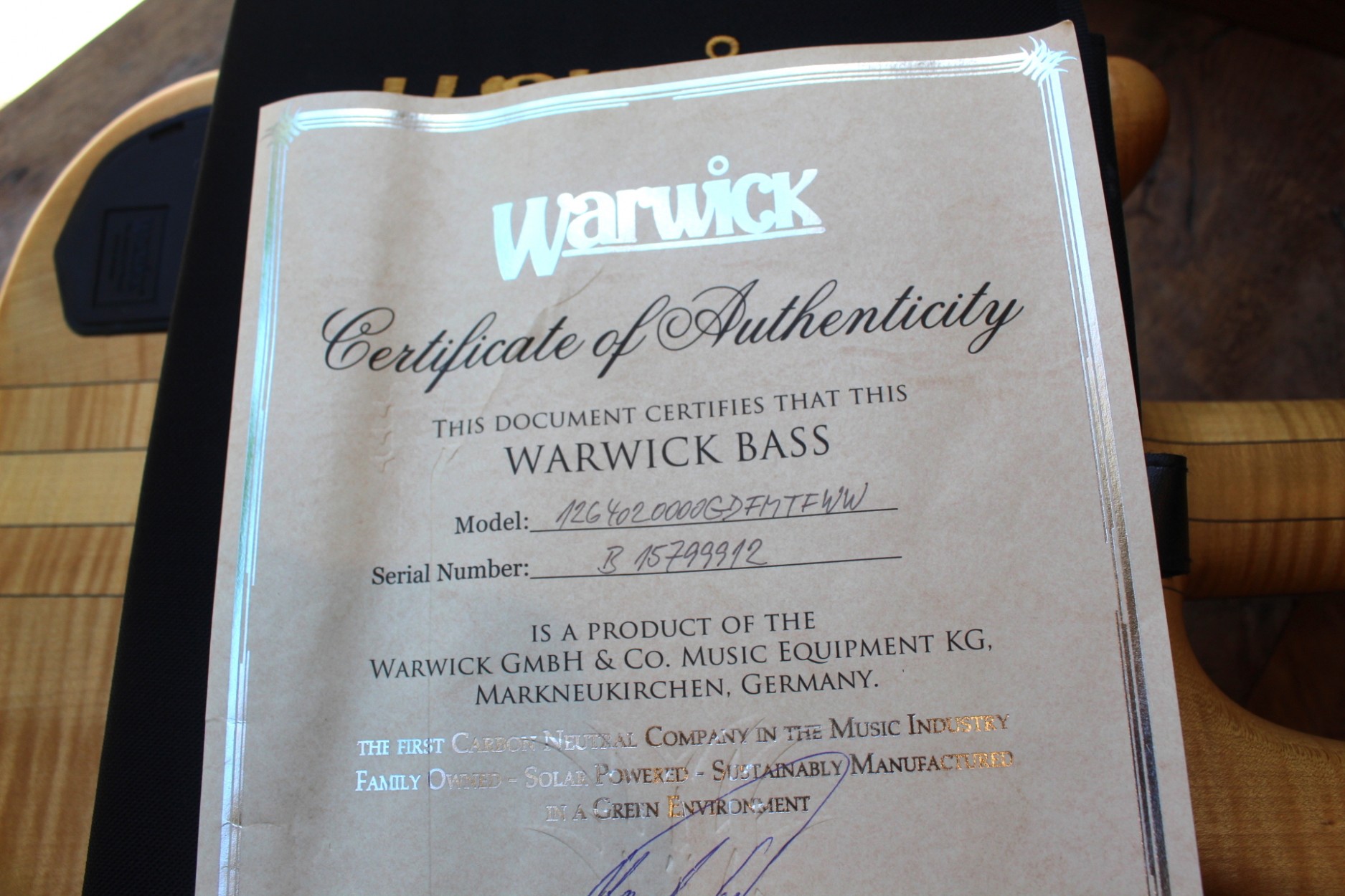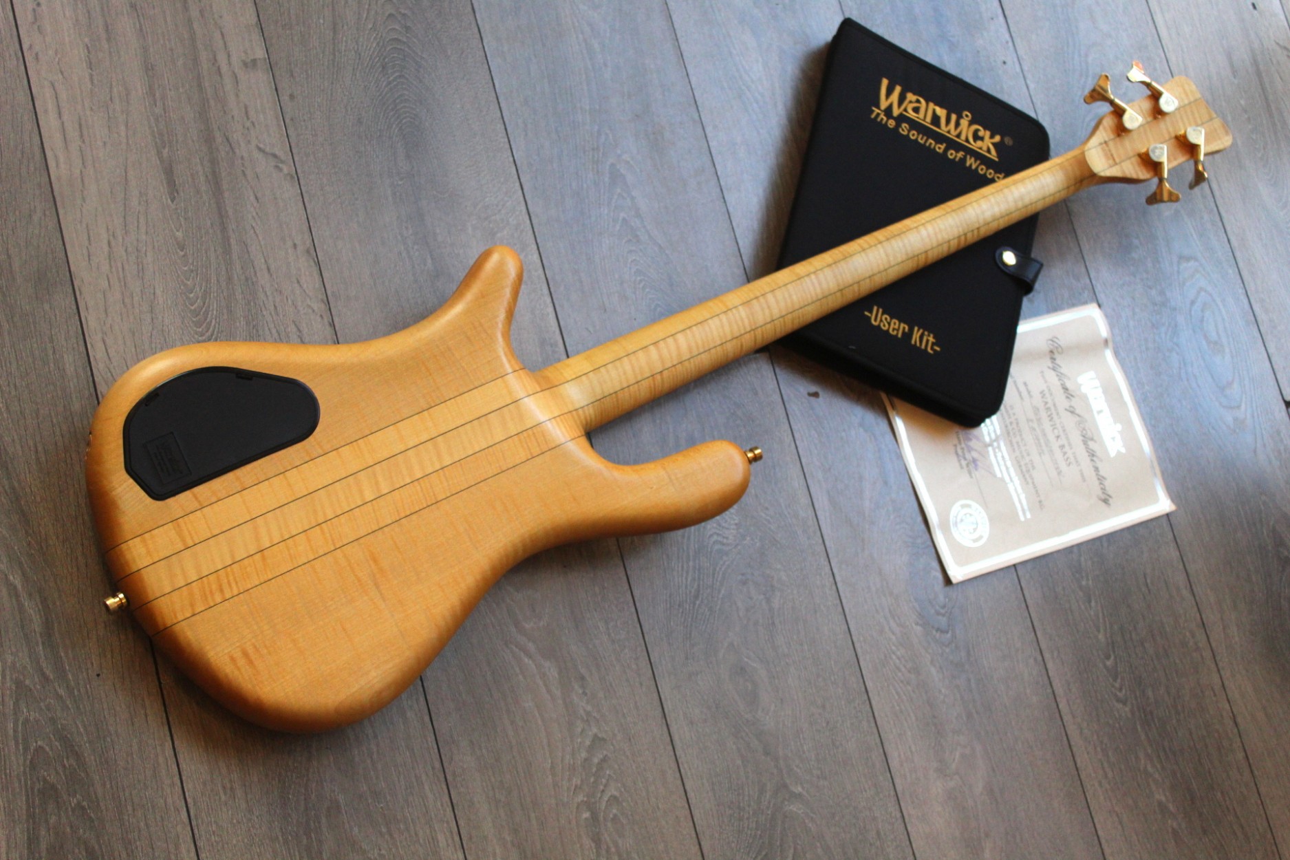 Serial number: B157999 12 Article number: 1264020000GDFMTFWW produced: 16.02.2012 Description: Streamer Stage I, 4-string Natural Oil finish Flamed Maple AAA body Flamed Maple neck Gold hardware Made in Germany A four string bass from the classic Streamer Stage series from Warwick, one of the most renowned bass builders in the world! A high quality, top class instrument. Finish: Natural Oil, with gold hardware. Body: Flamed maple. Neck: Flamed maple, with Ekanga veneer stripes. Neck-through construction. Scale: 34" - standard long scale. Fretboard: Wenge, no inlays. Frets: 24, Jumbo Bronze. Tuners: Warwick. Bridge: Warwick, 2-piece. Pickups: MEC active P/J pickups. Electronics: 1x volume, 1x balance, 1x bass,1x treble.
